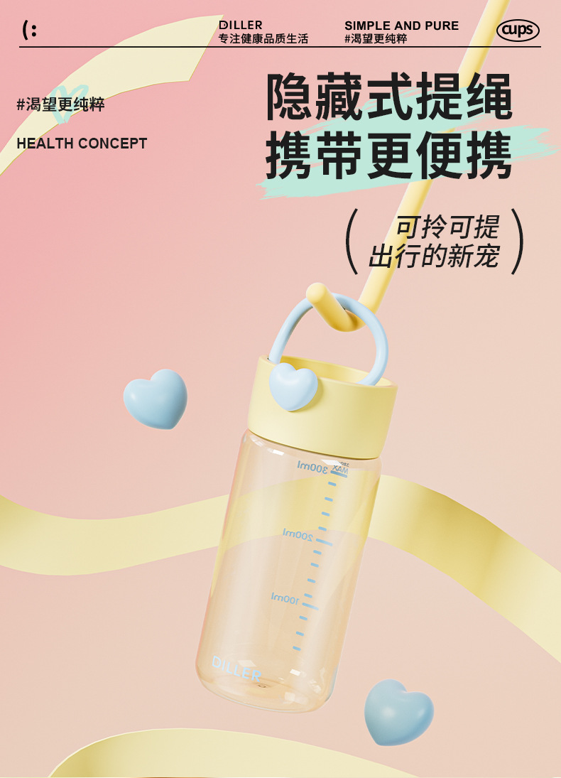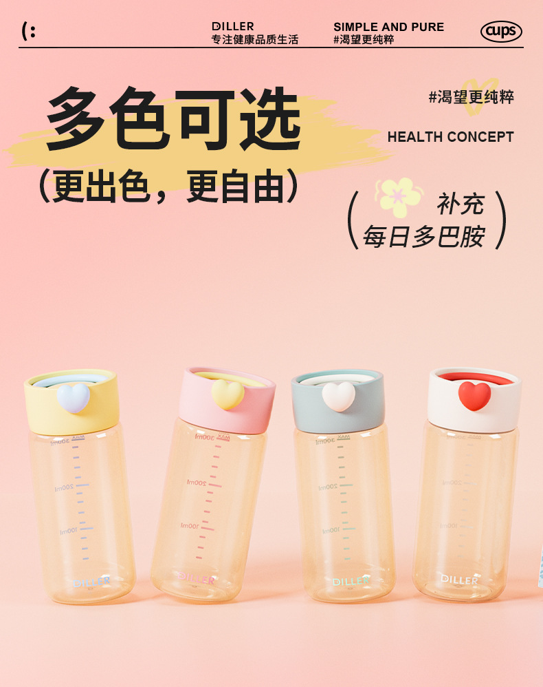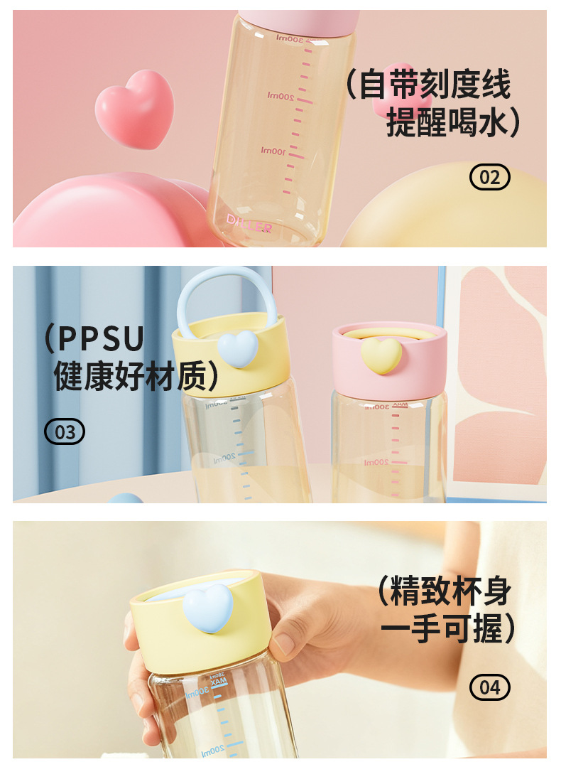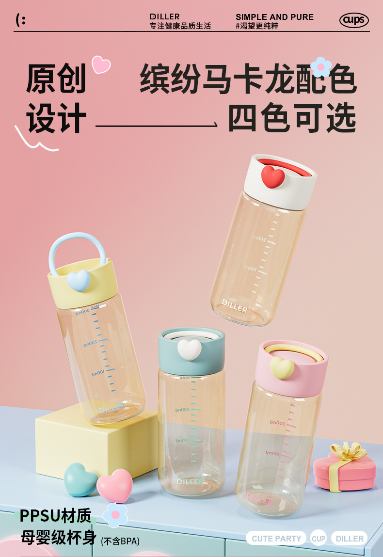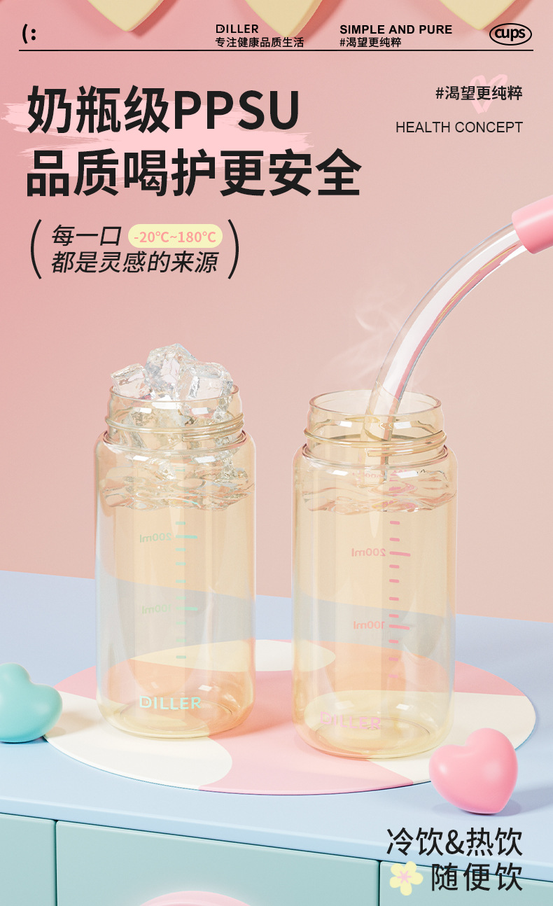DILLER随手杯ppsu耐高温耐摔直饮杯敞口杯便携外出学生女孩水杯