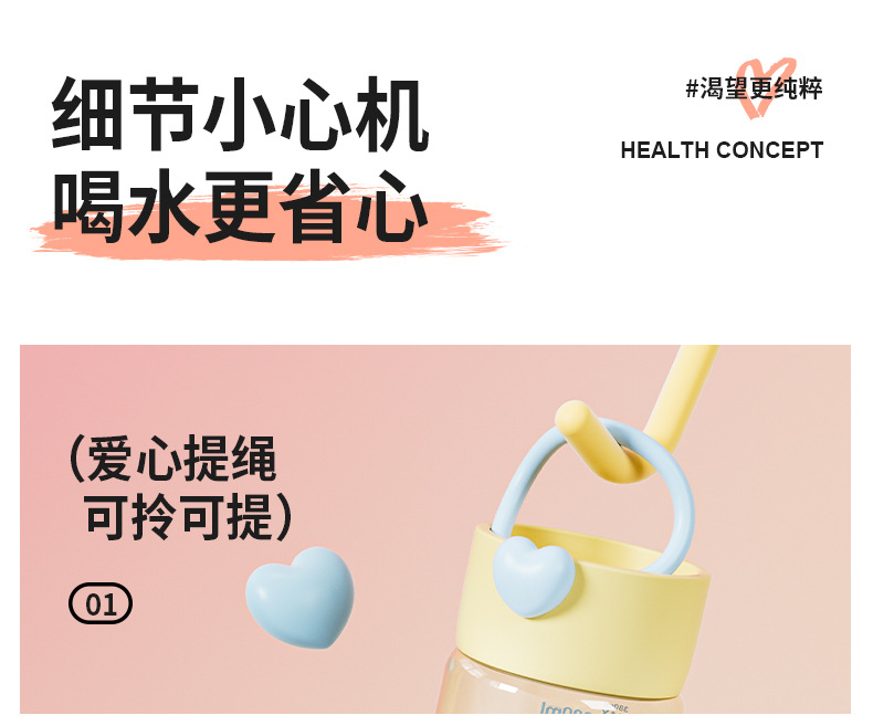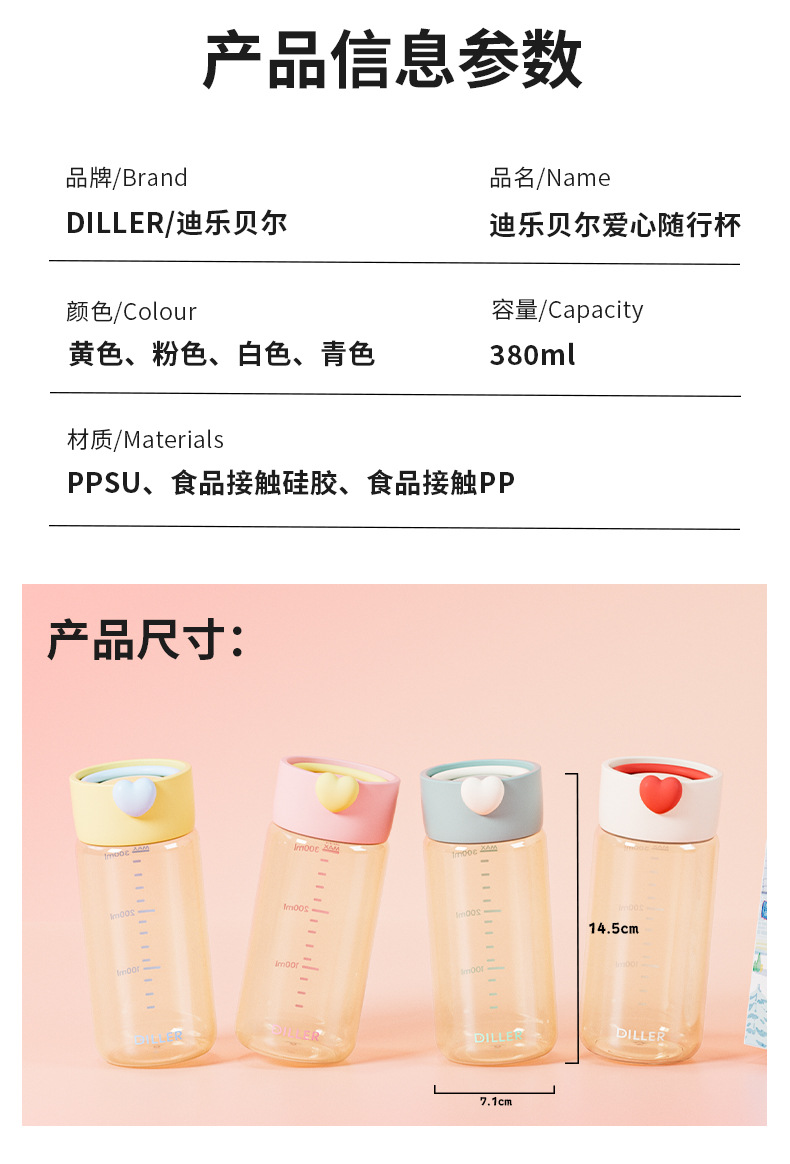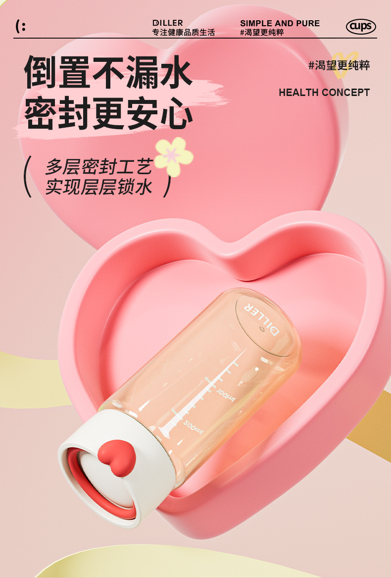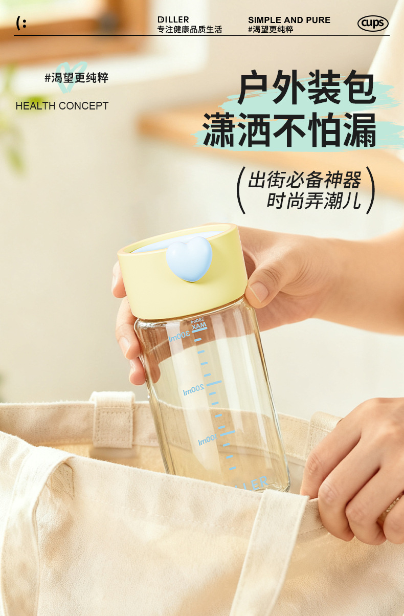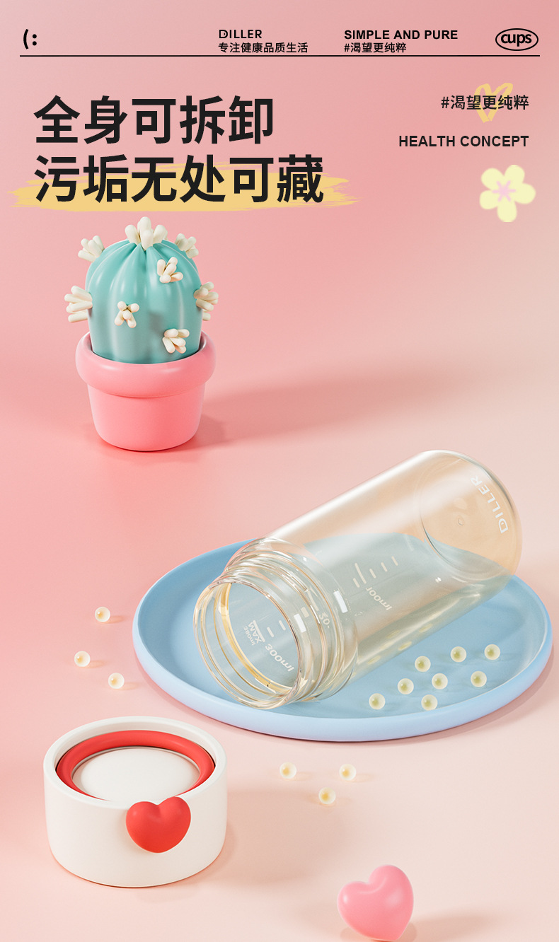 DILLER随手杯ppsu耐高温耐摔直饮杯敞口杯便携外出学生女孩水杯