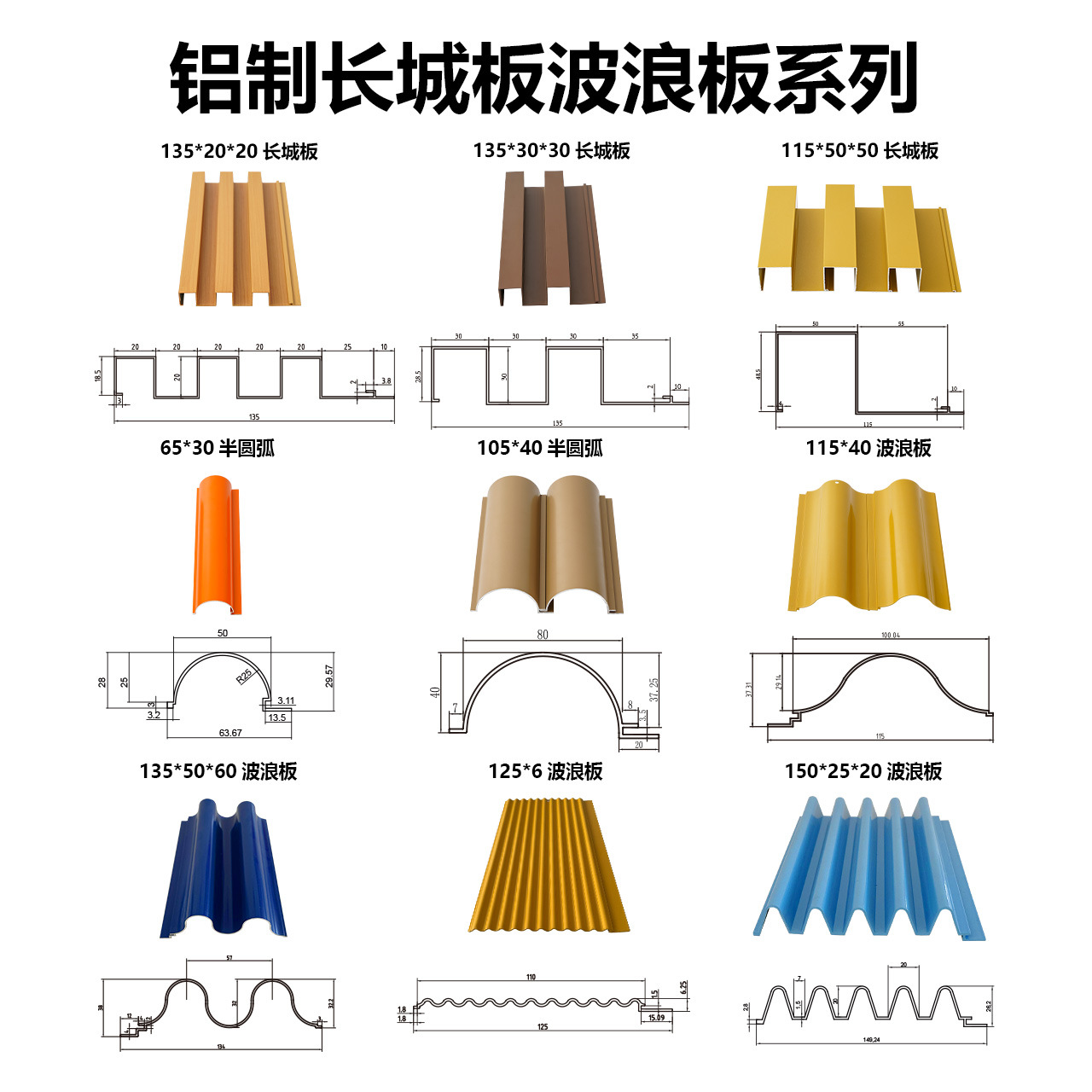 氟碳凹凸造型铝型材门头幕墙木纹波浪板广告牌装饰铝合金长城板
