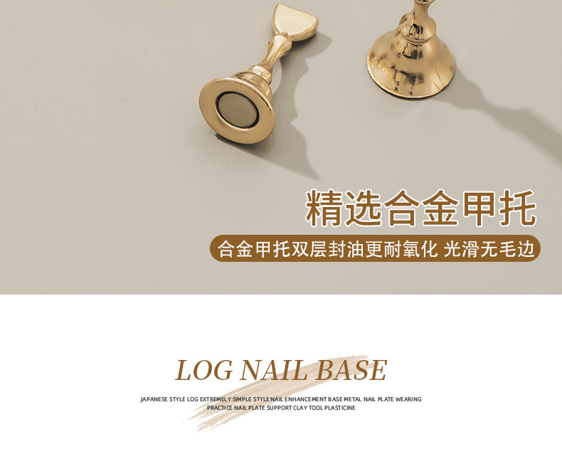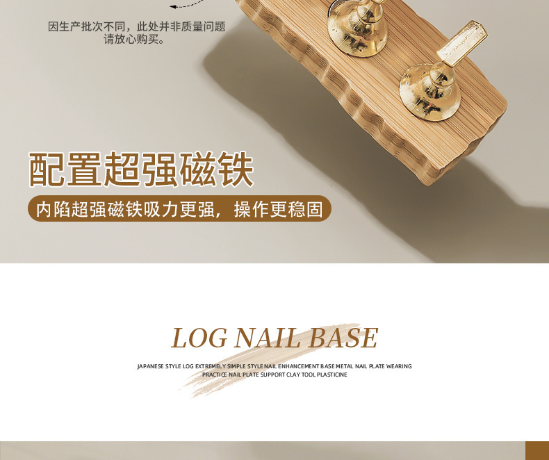 日式原木美甲甲托架练习底座强磁金属棋子穿戴甲练习工具固定支架