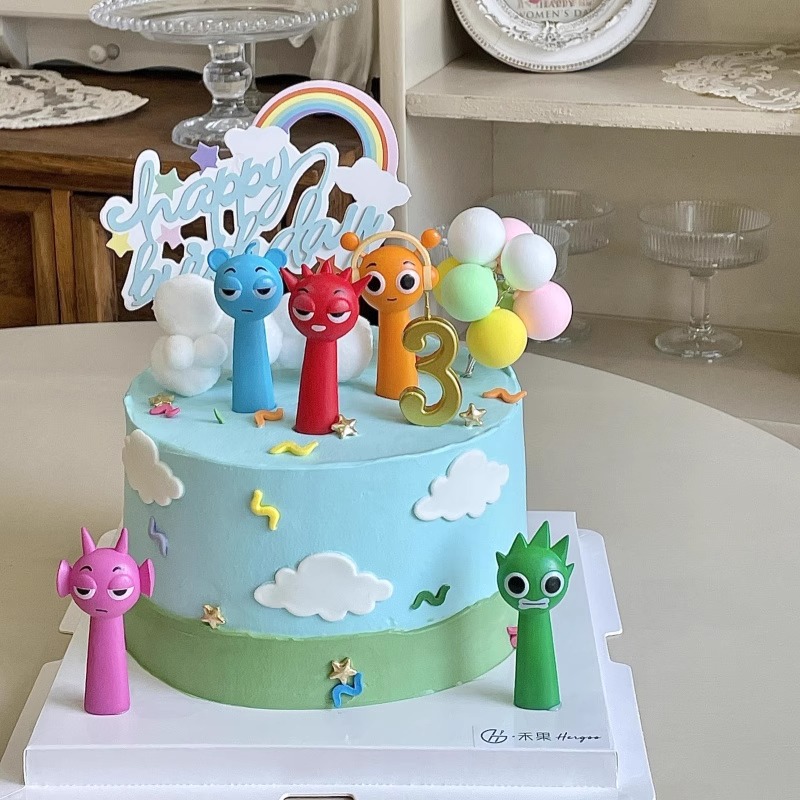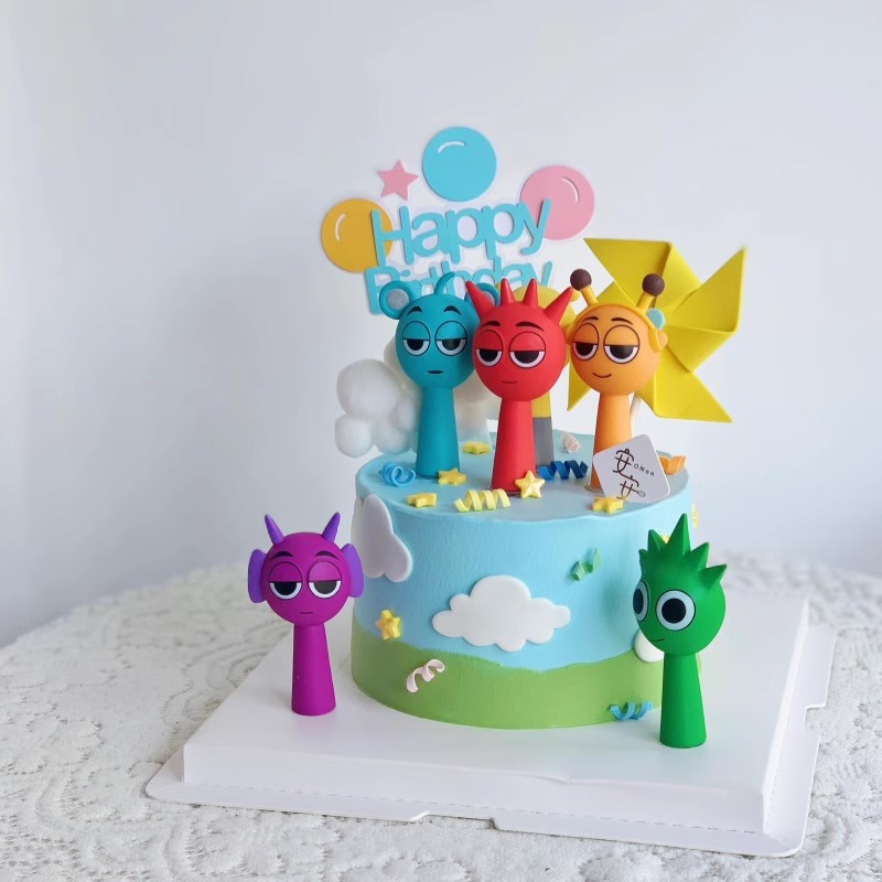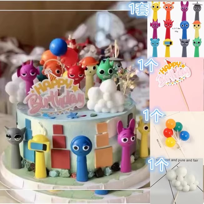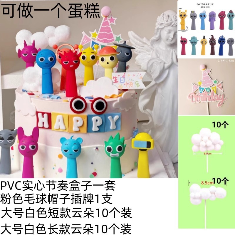 网红蛋糕装饰节奏盒子卡通玩偶摆件男孩女孩儿童生日甜品装扮插件