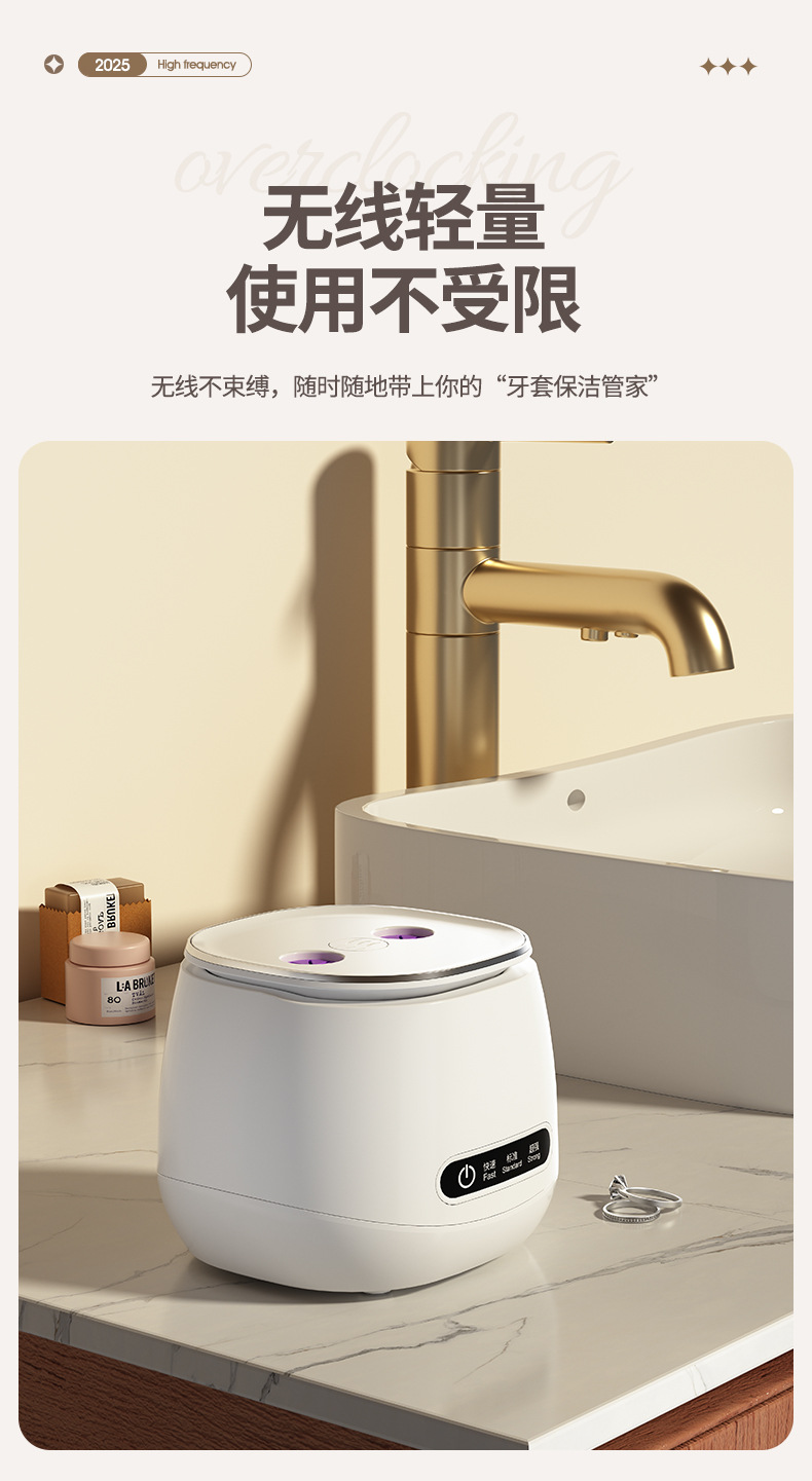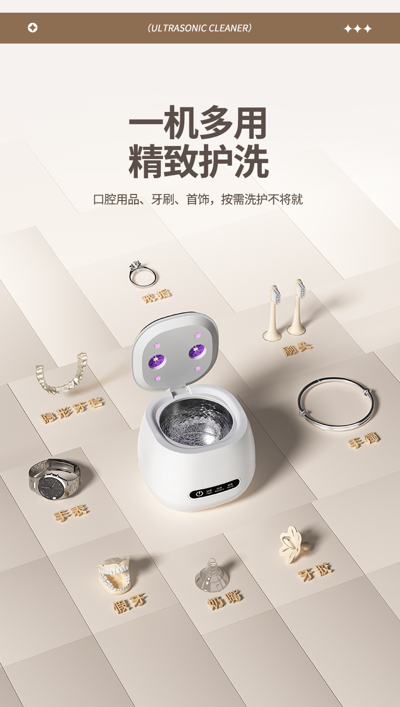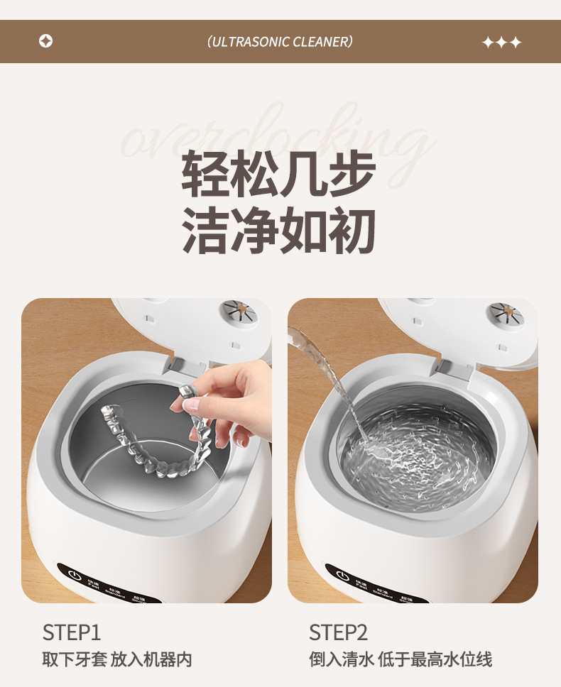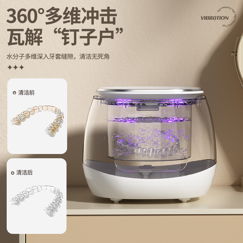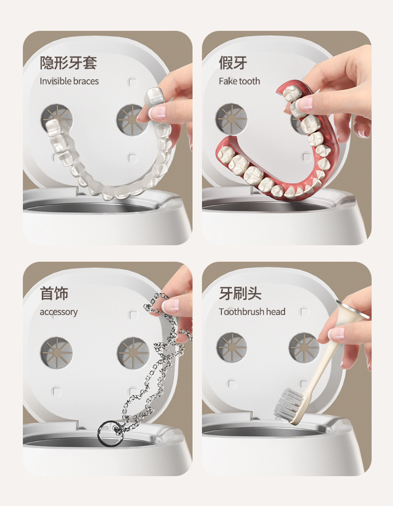 跨境超声波清洗机家用牙套隐形保持器假牙清洗盒首饰戒指眼镜清洁