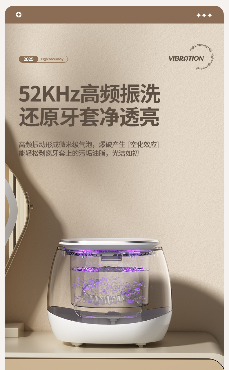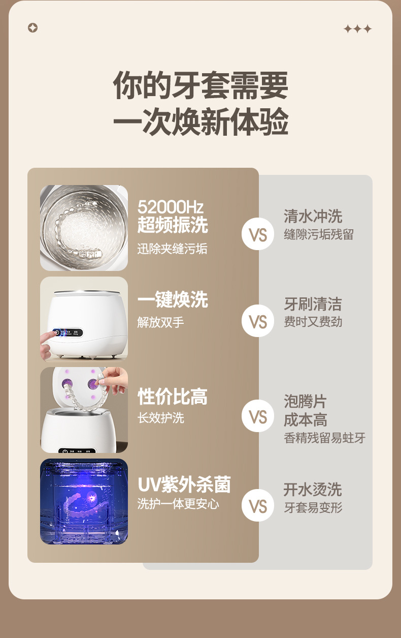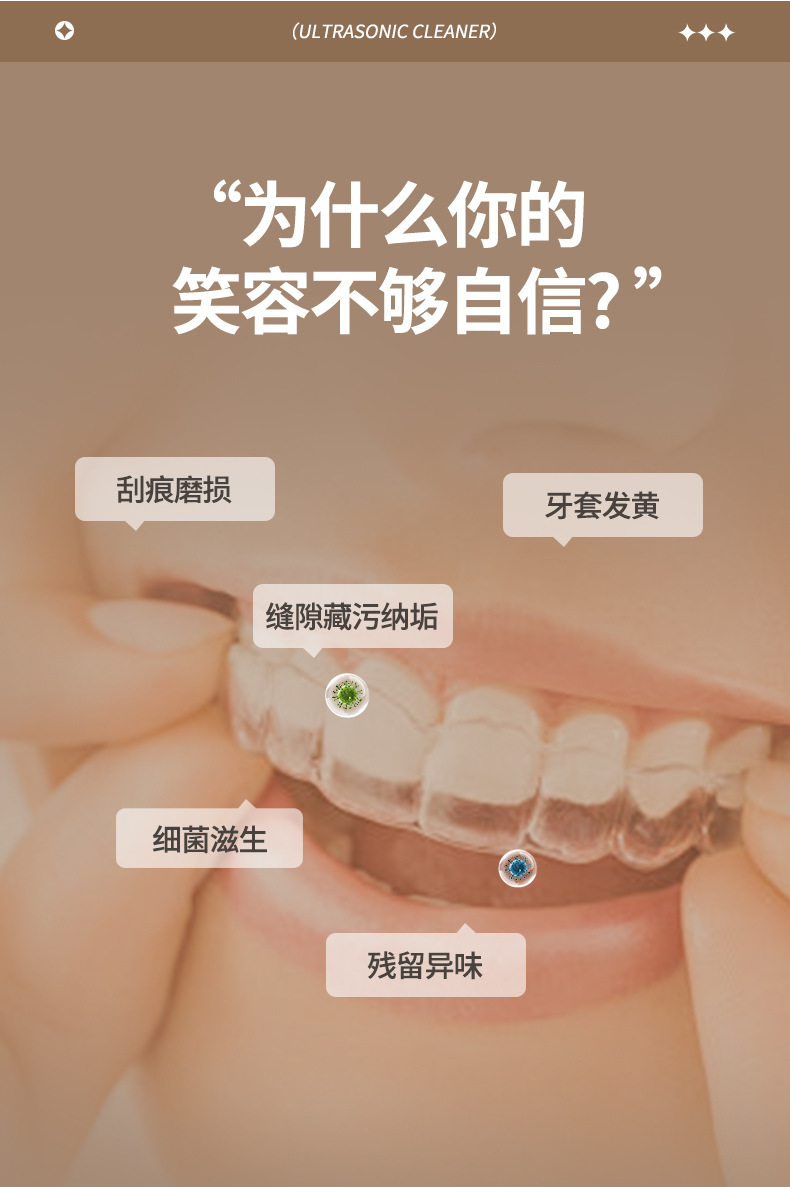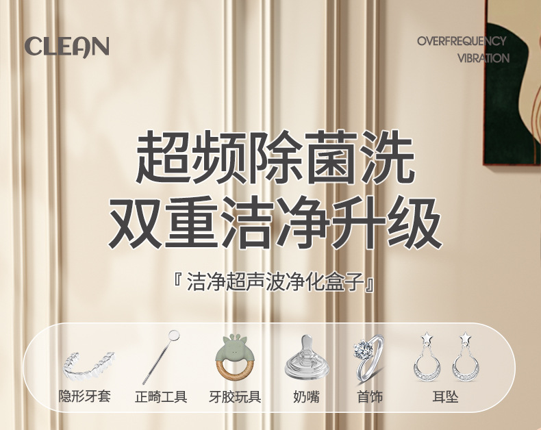 跨境超声波清洗机家用牙套隐形保持器假牙清洗盒首饰戒指眼镜清洁