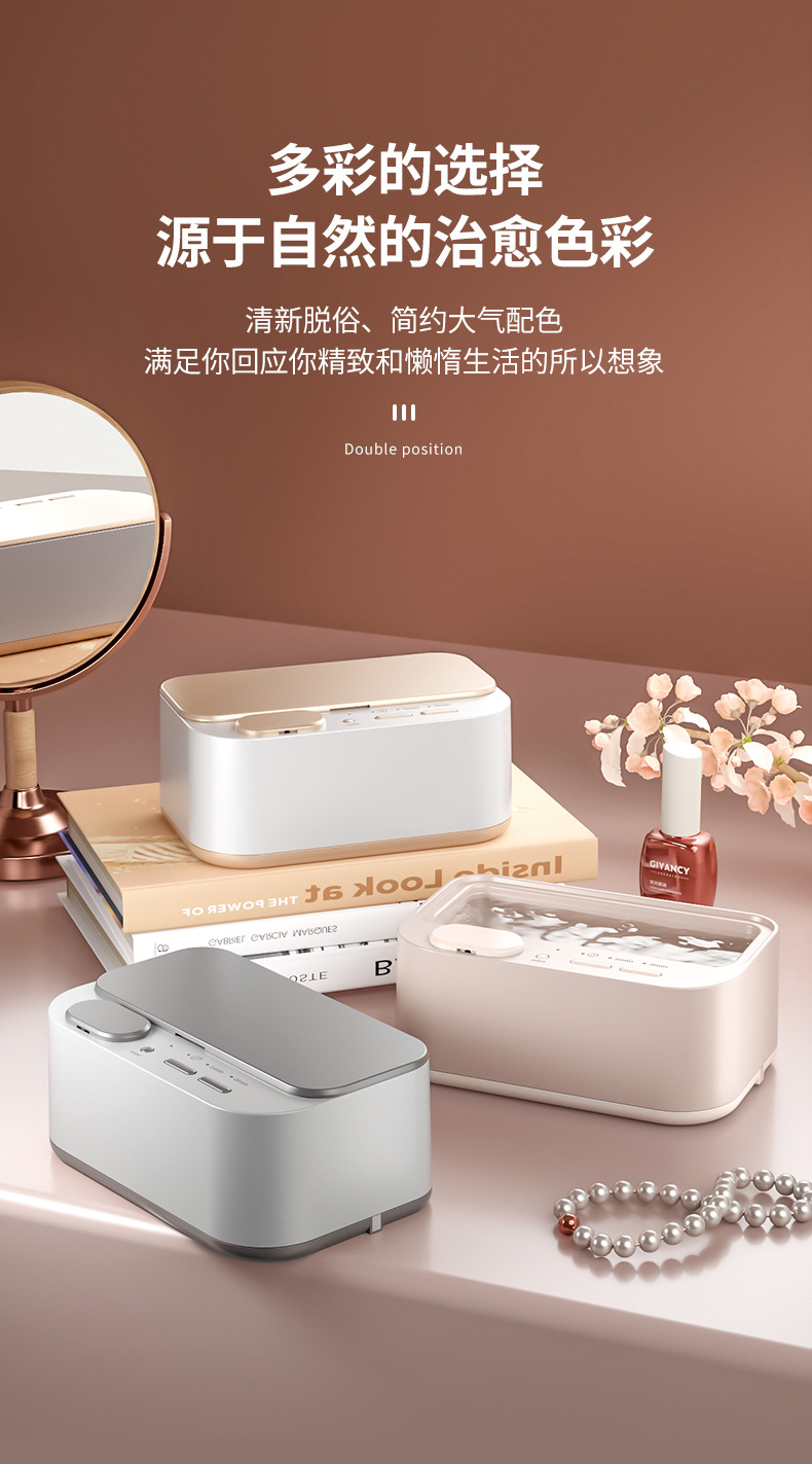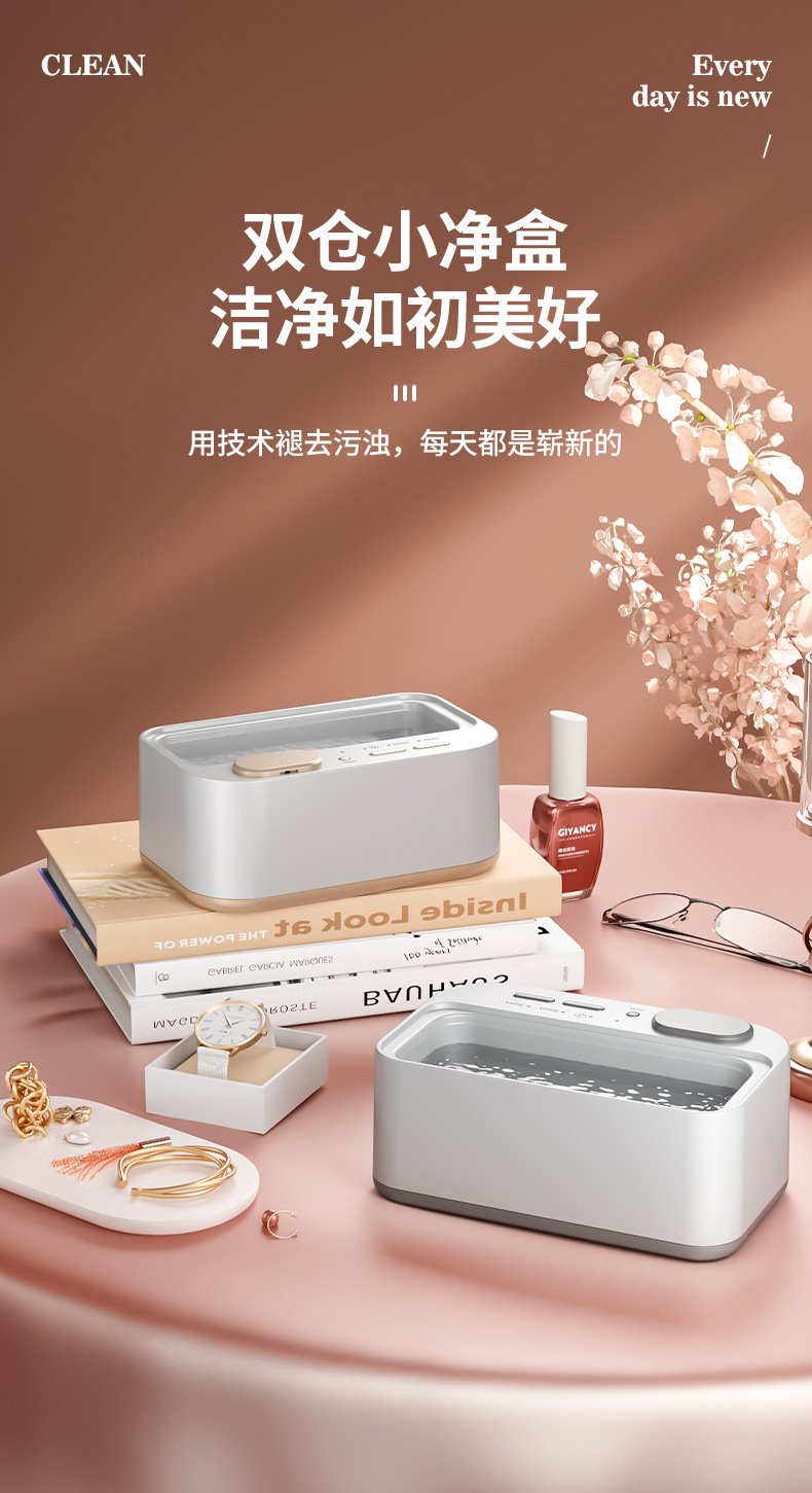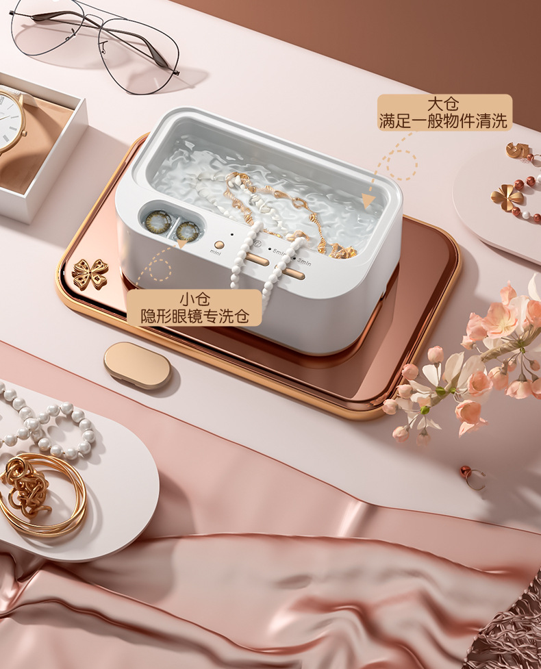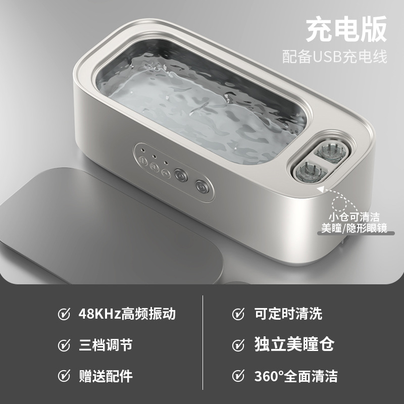 新款多功能双仓清洗机眼镜首饰牙套便携式家用小型隐形眼镜清洗仪