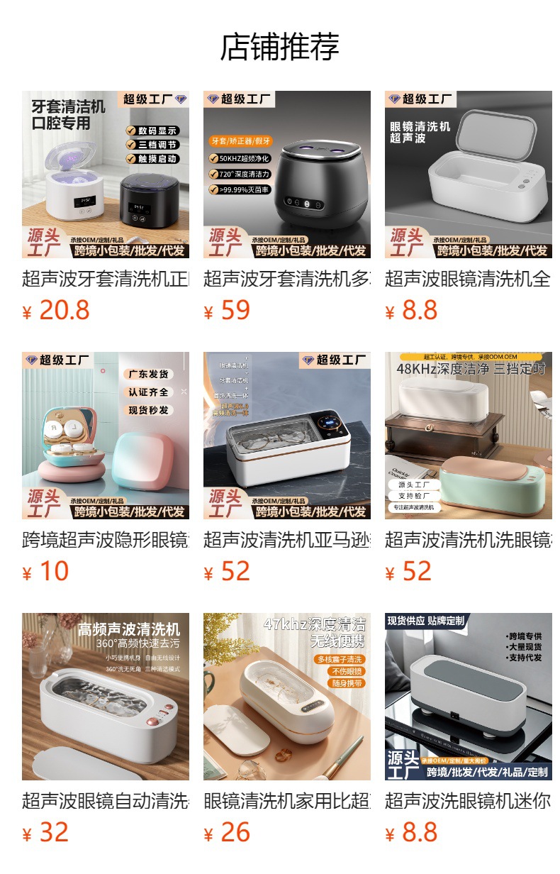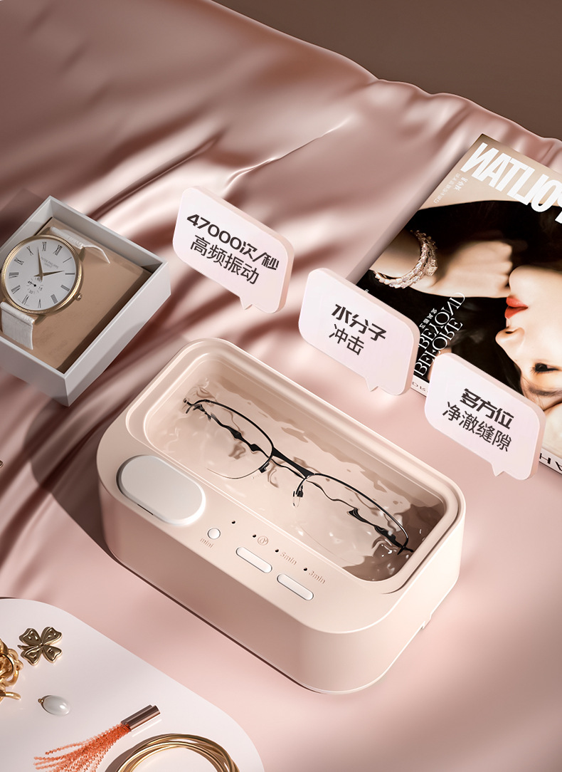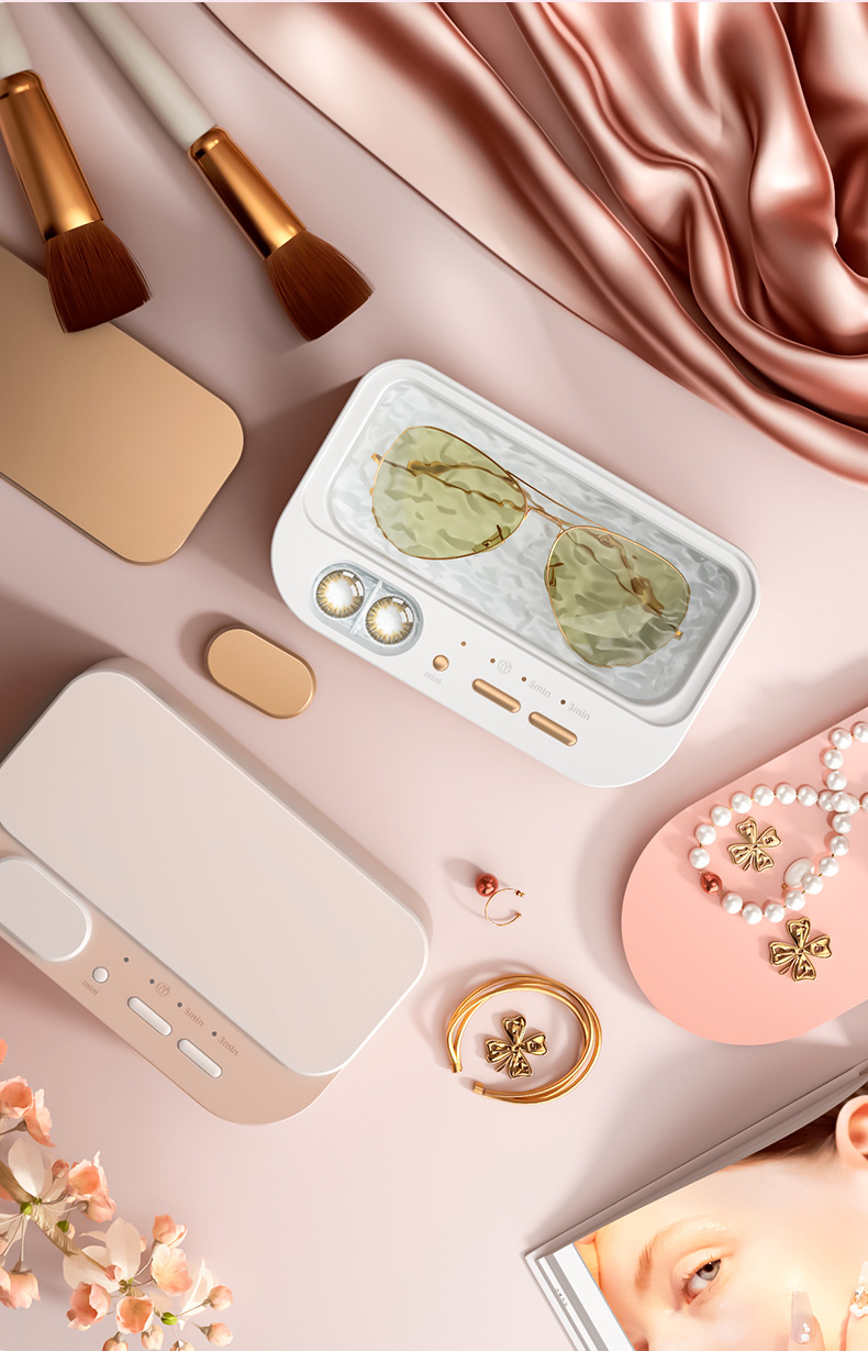 新款多功能双仓清洗机眼镜首饰牙套便携式家用小型隐形眼镜清洗仪
