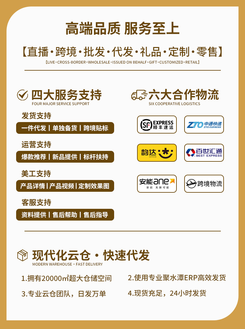 支持一件代发/国内批发/定制LOGO/跨境批发等