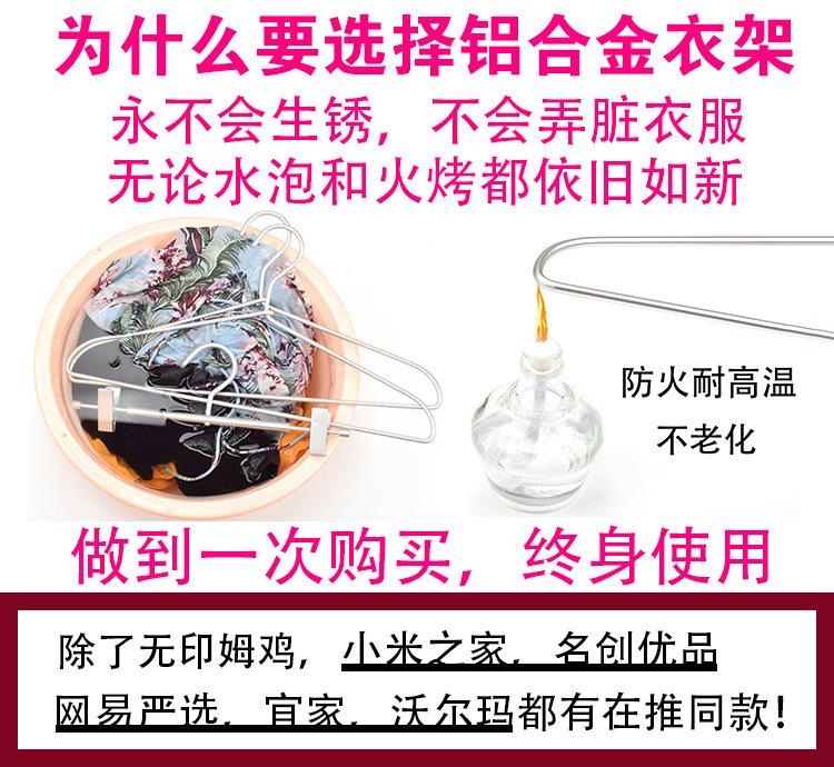 无印铝合金衣架金属不锈钢晾晒裤架裤夹衣挂衣服撑子无痕太 空铝
