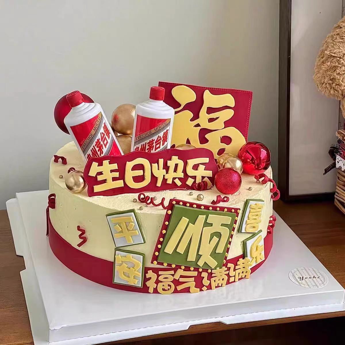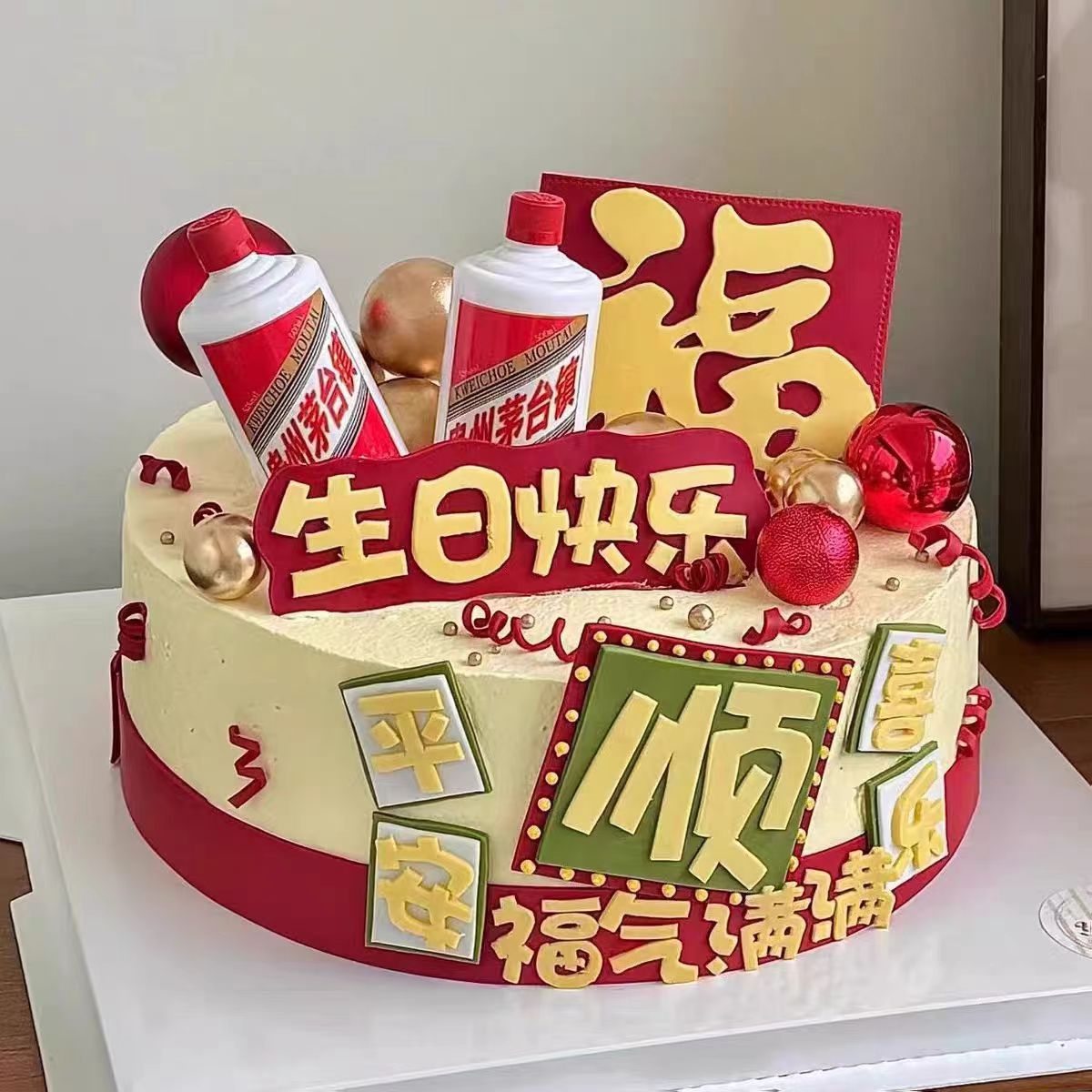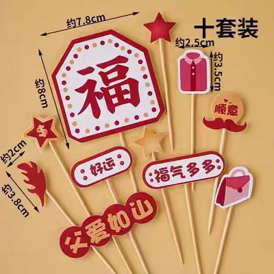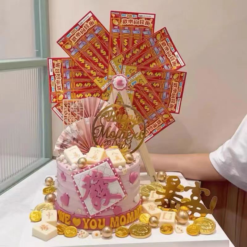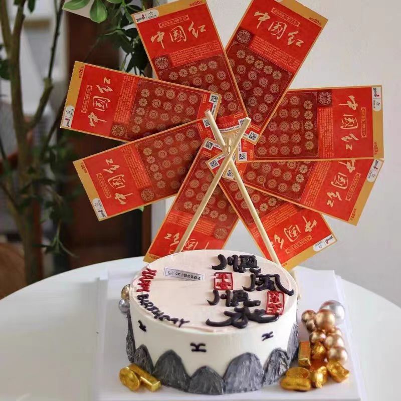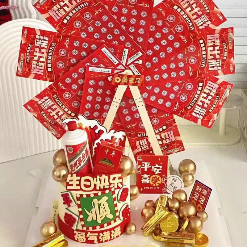 男士男款旋转摩天轮风车蛋糕装饰彩票福顺祝福语生日蛋糕装饰摆件