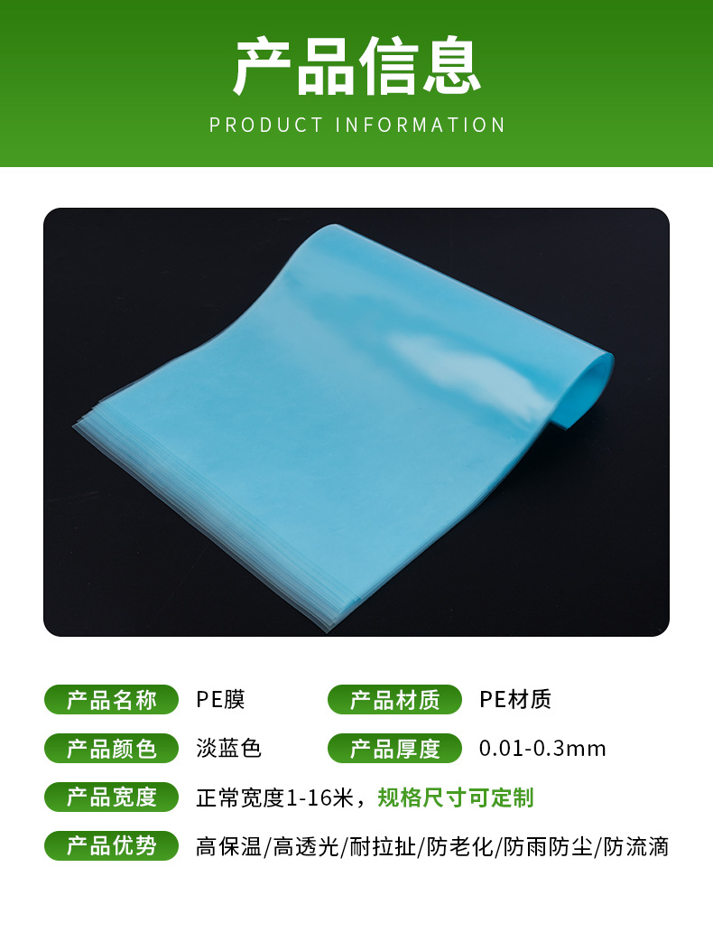PE农用塑料膜大棚塑料布防水蓝色加厚封窗防风挡风防尘膜保温膜