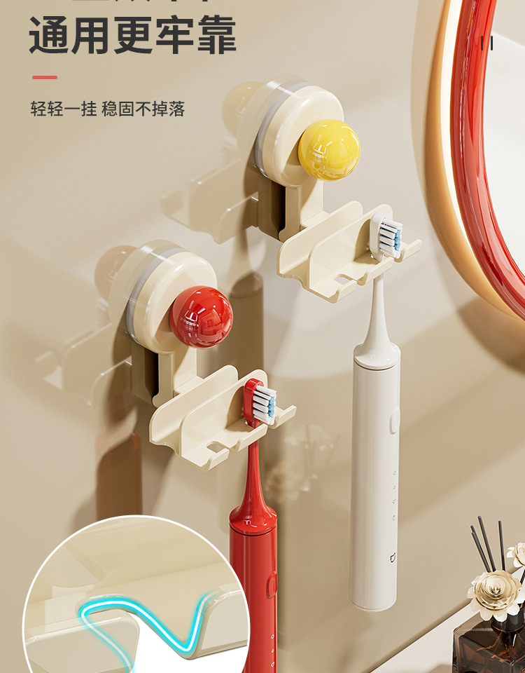 吸盘牙刷置物架壁挂式免打孔浴室卫生间镜柜电动牙刷牙膏沥水挂架