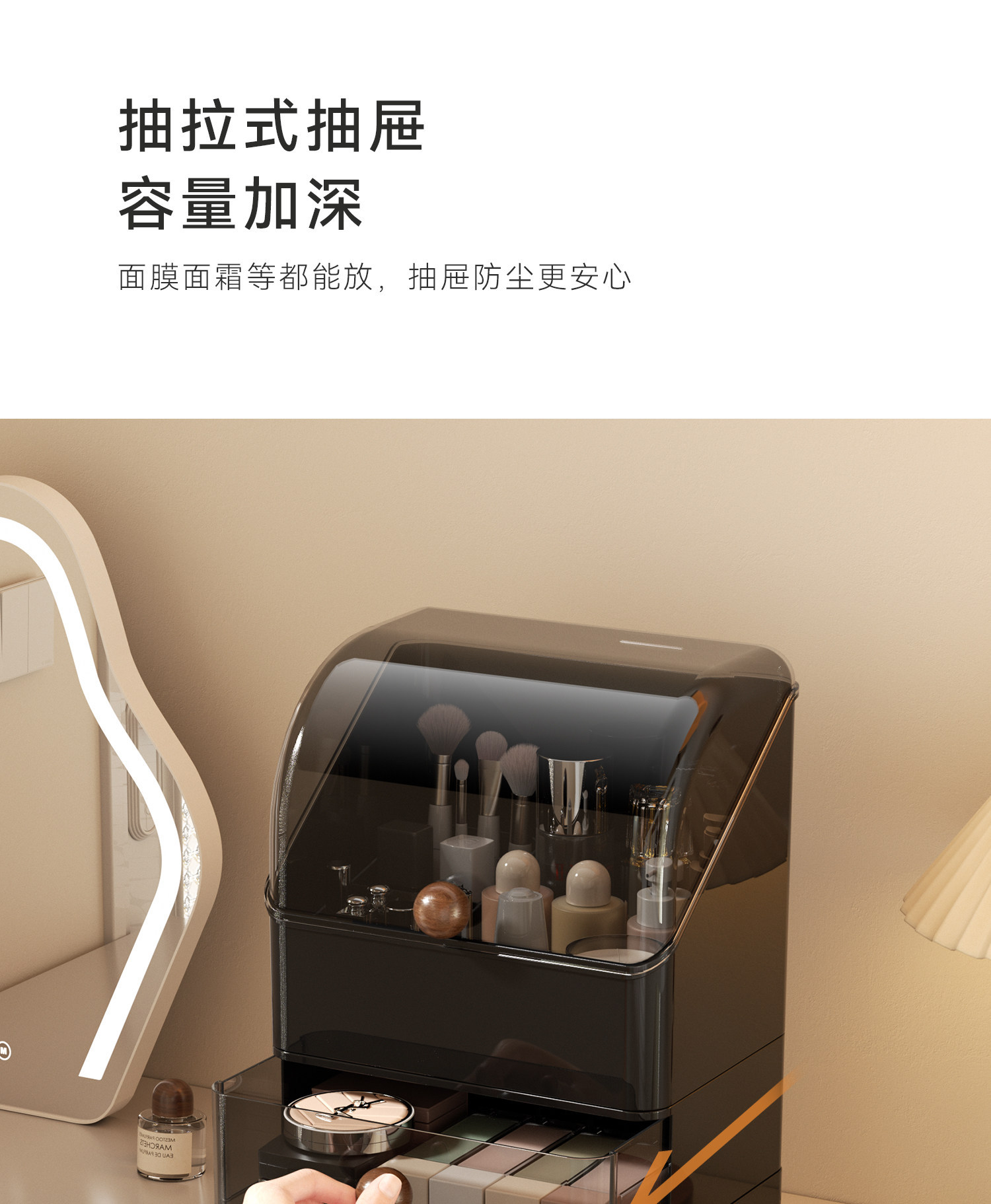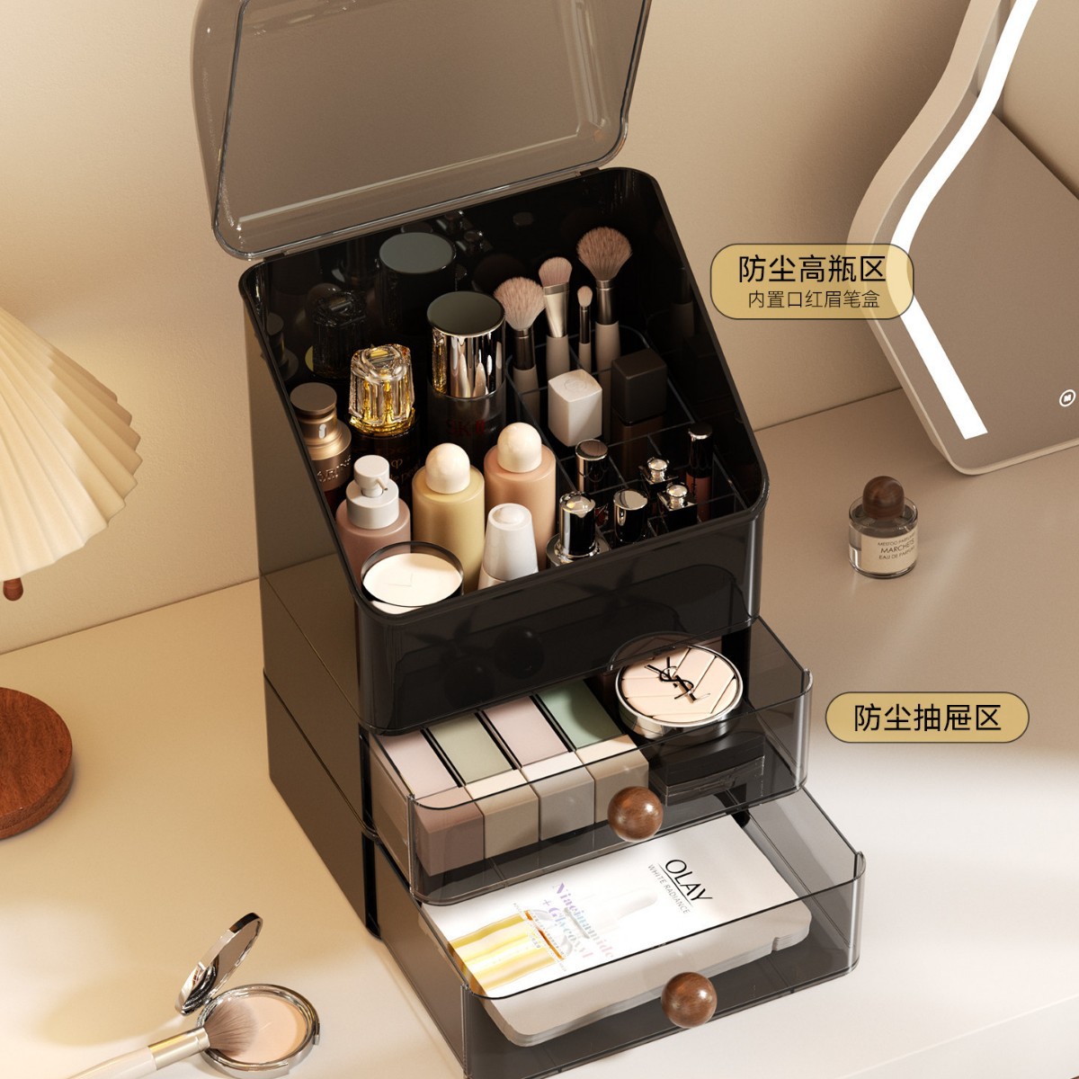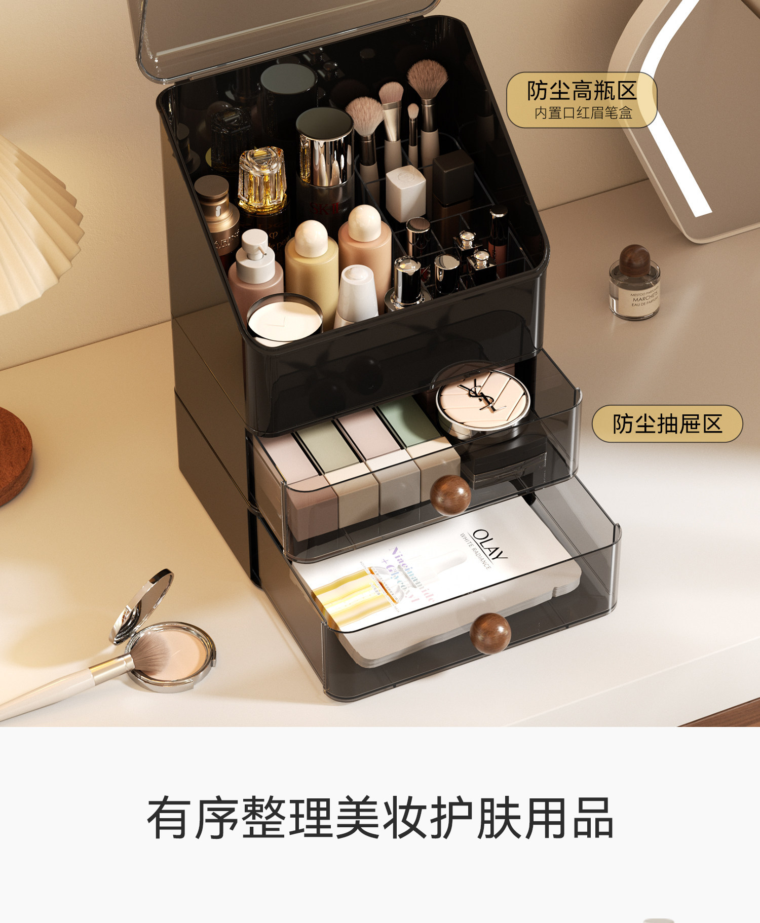 化妆品收纳盒家用桌面护肤品收纳化妆盒防尘梳妆台洗漱台置物架