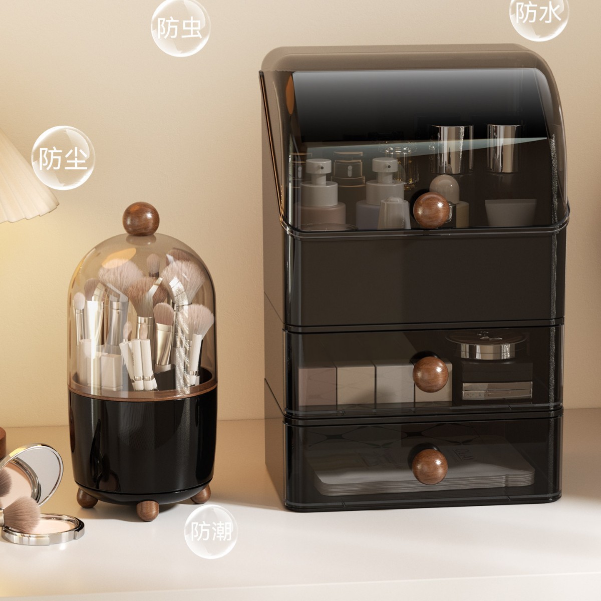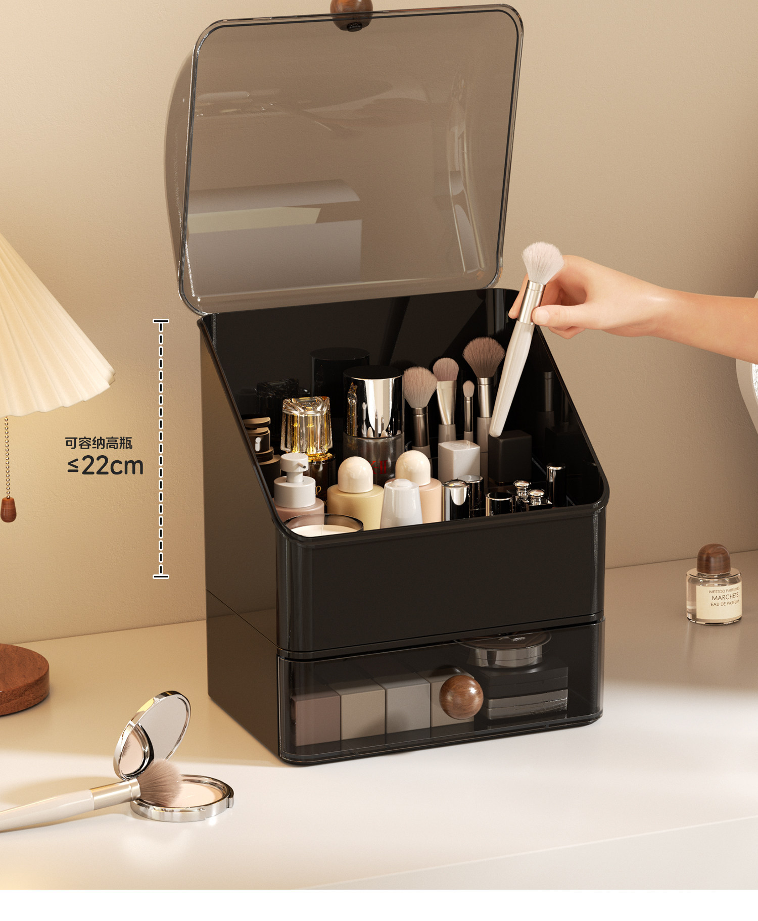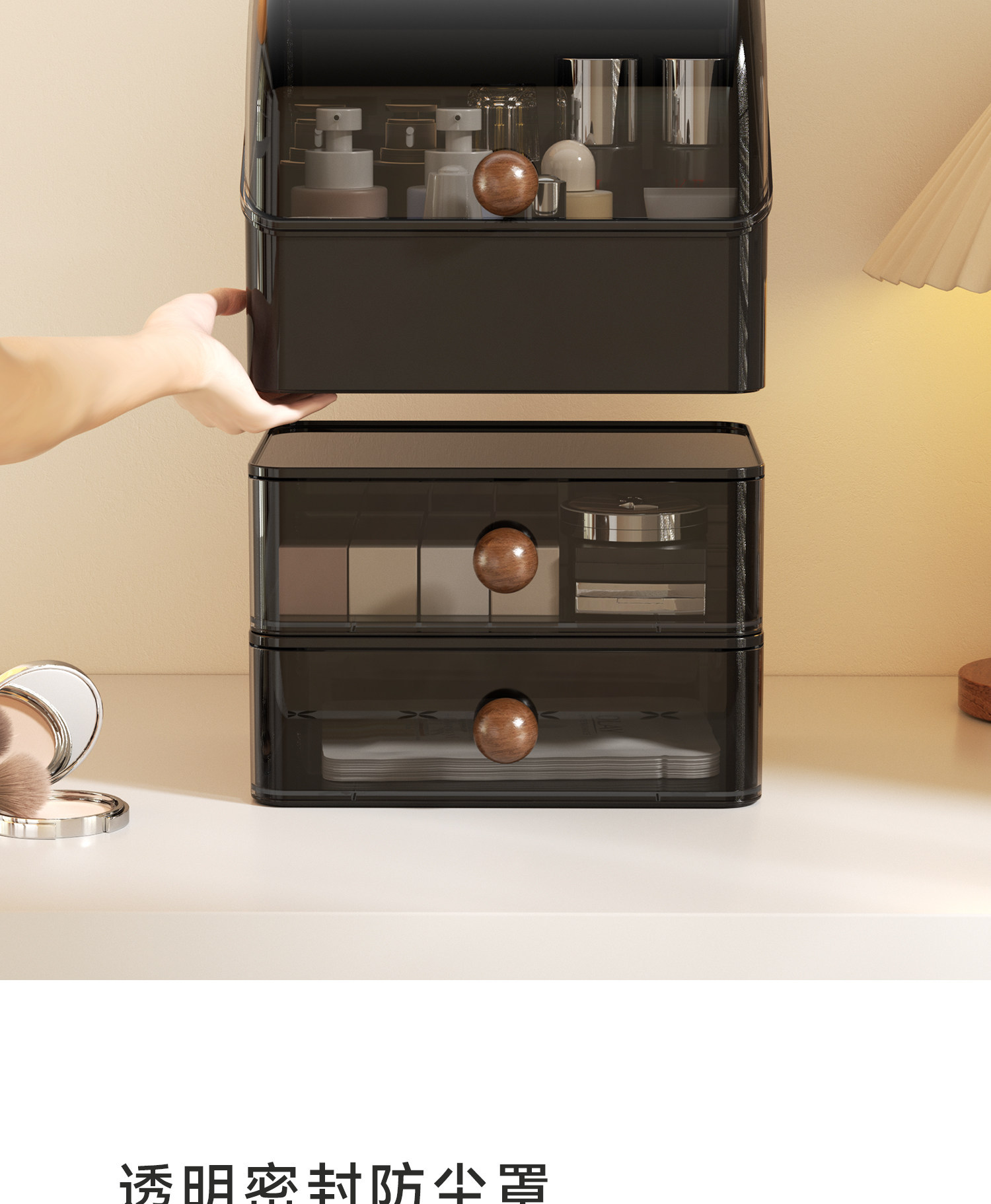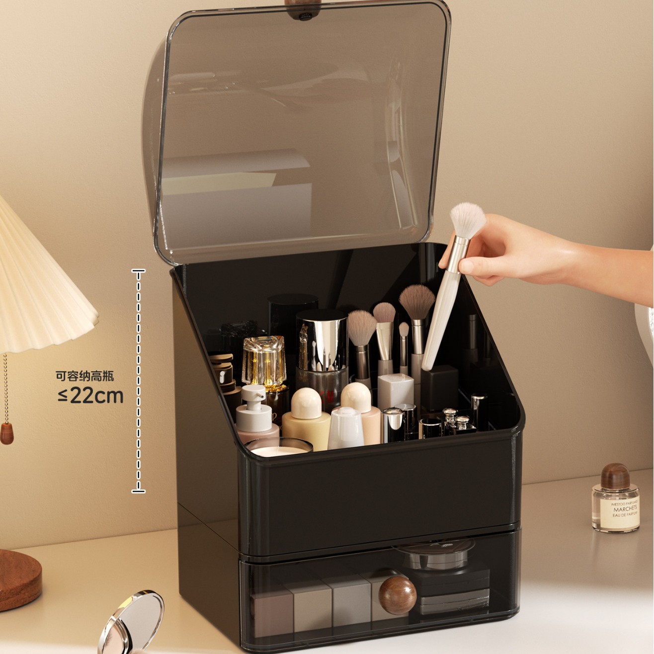 化妆品收纳盒家用桌面护肤品收纳化妆盒防尘梳妆台洗漱台置物架