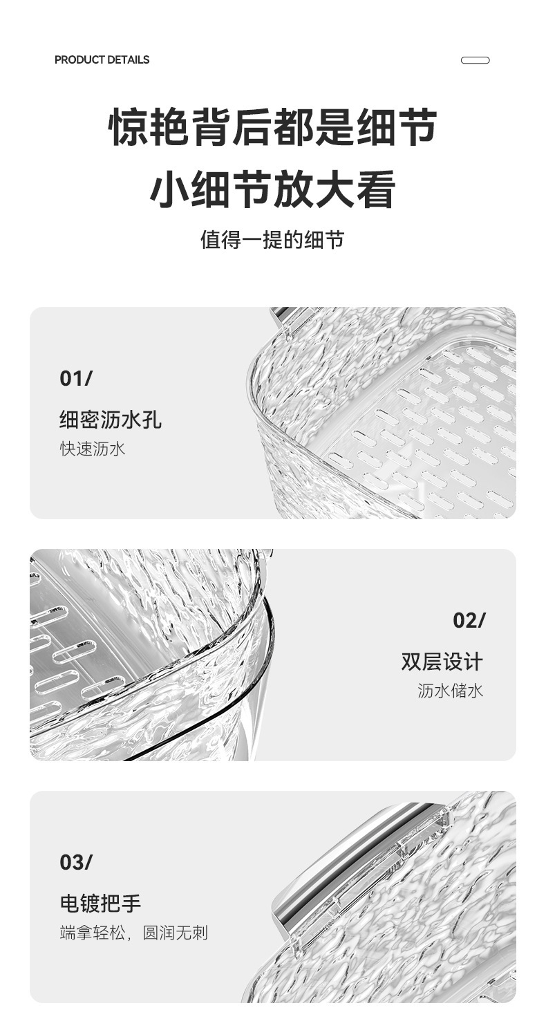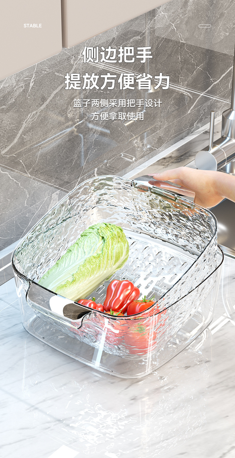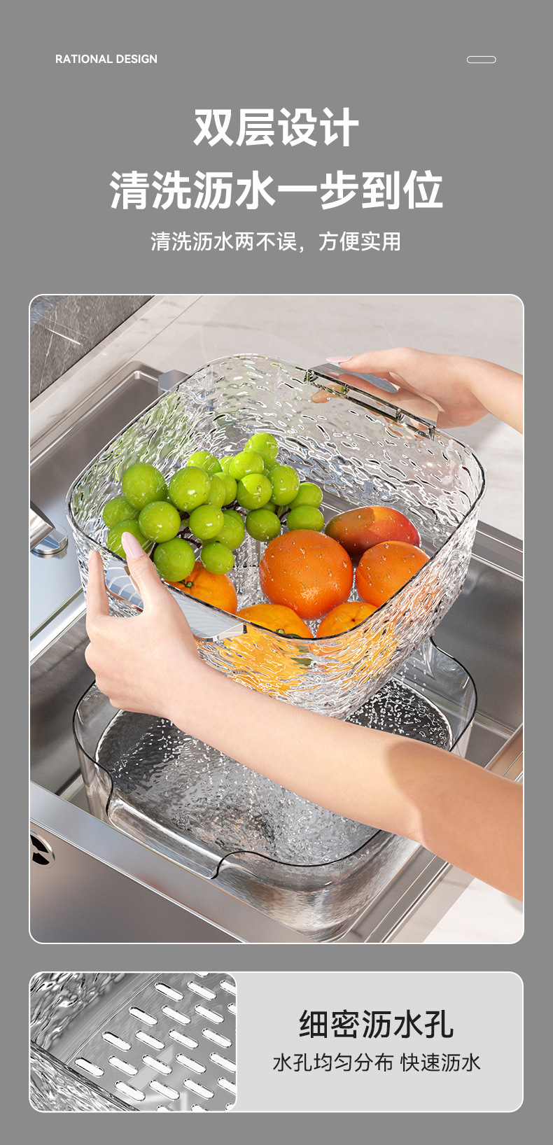 亿米佳厨房沥水篮双层洗菜盆塑料洗菜筐淘米篮水果盆收纳篮洗菜篮