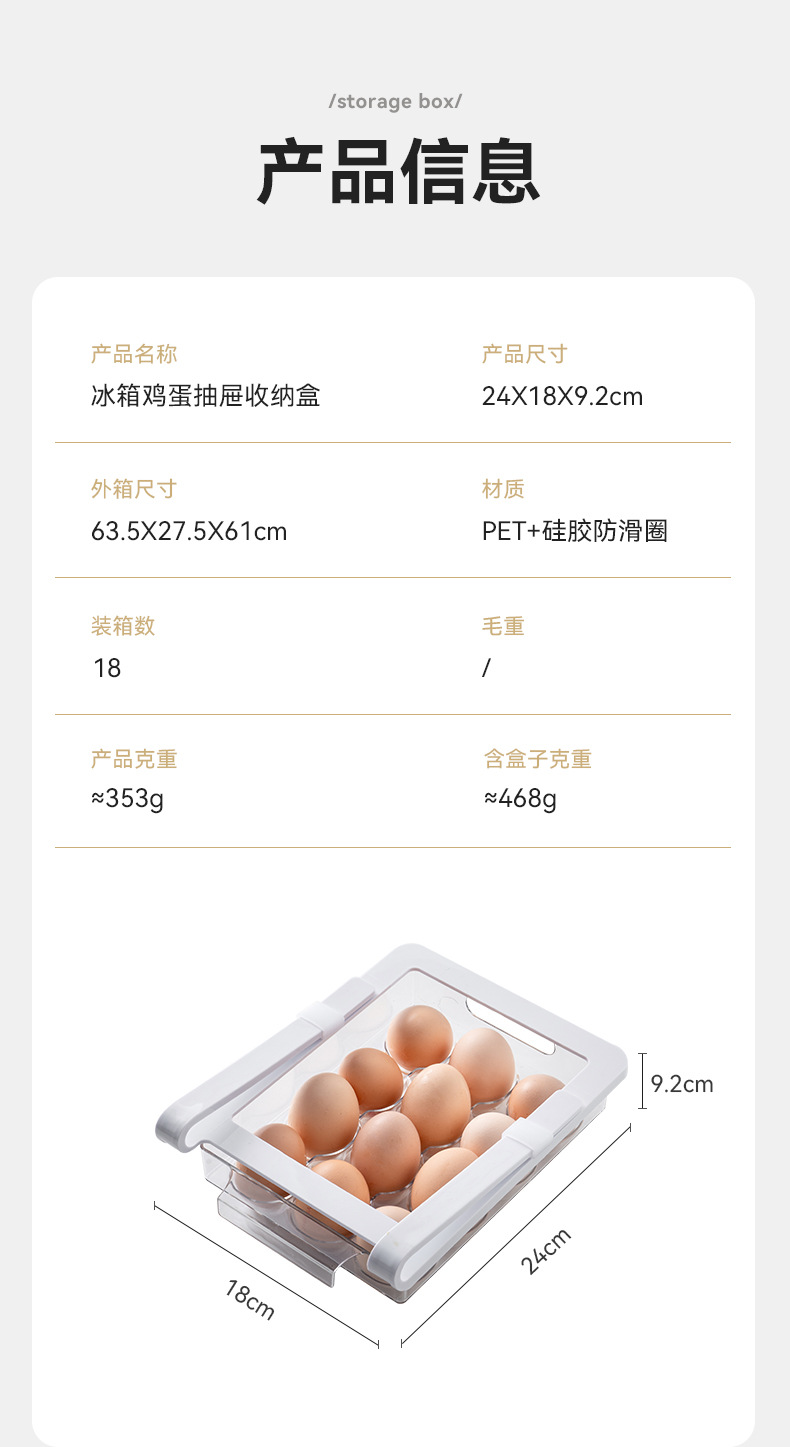 冰箱收纳盒家用厨房食品级鸡蛋蔬菜水果收纳抽屉式冷冻储物保鲜盒