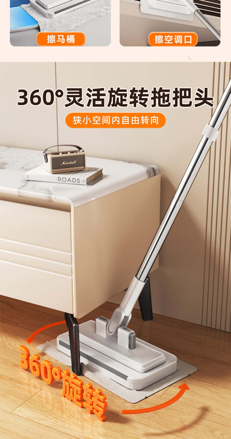 2025新款家用一拖免手洗多功能懒人夹布平板拖地神器净洗脸巾拖把