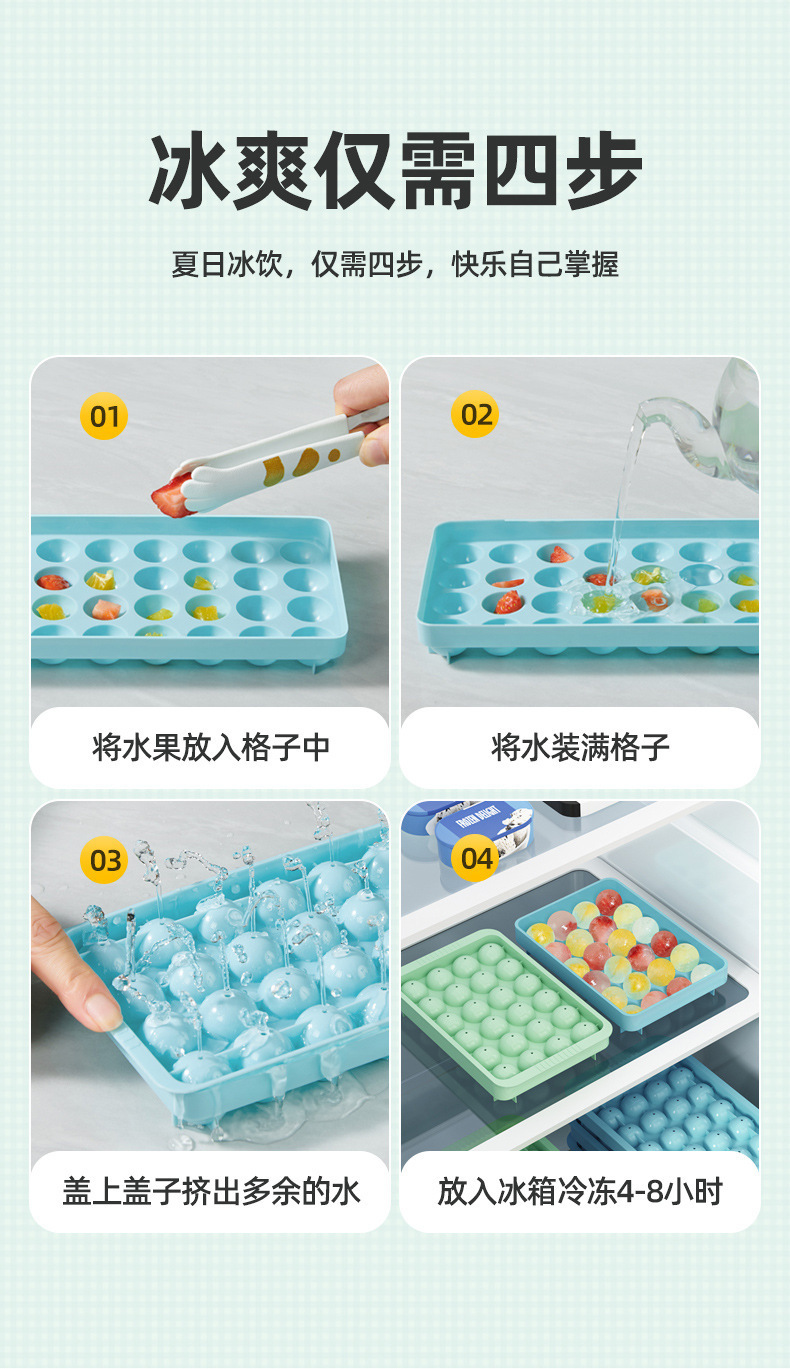 2024新款储冰盒36格冰球冰格冰块膜具制冰膜具冰球膜具大容量24格