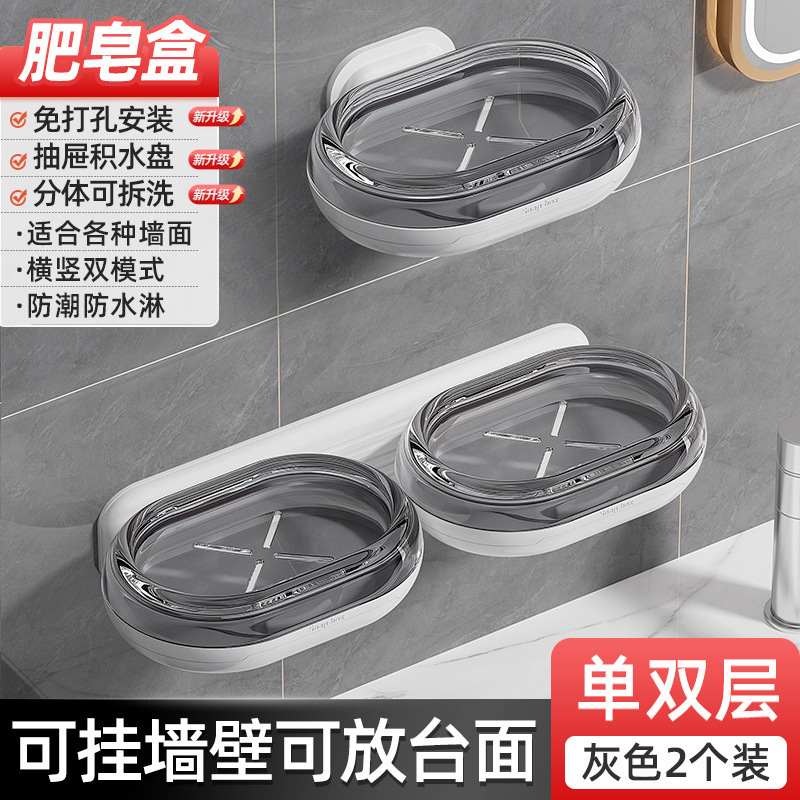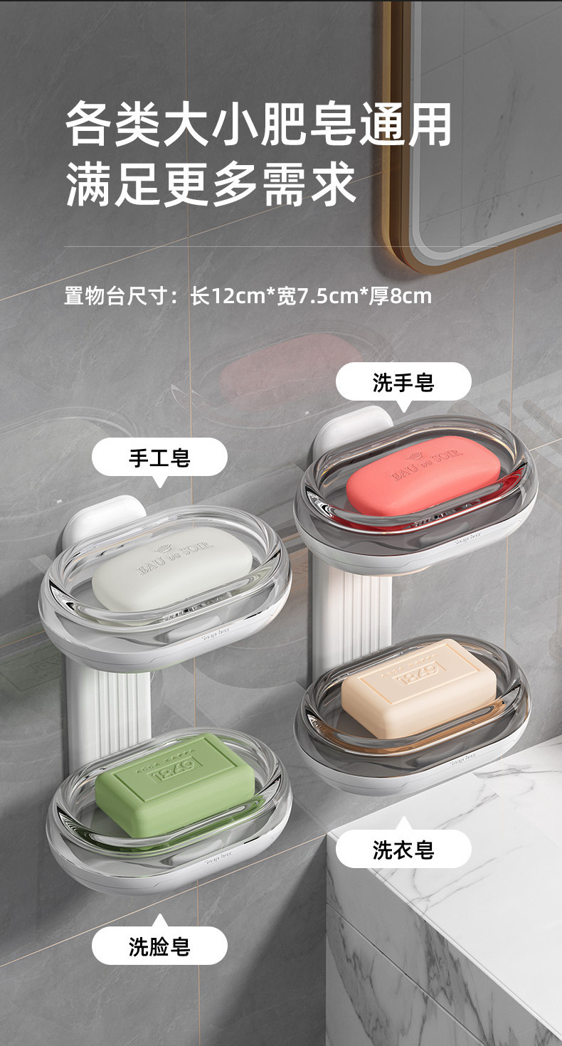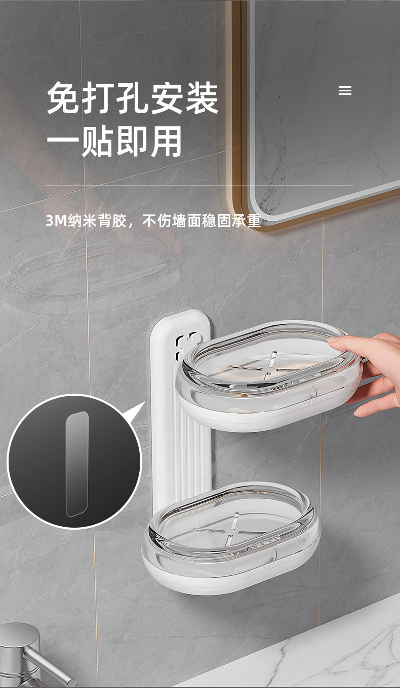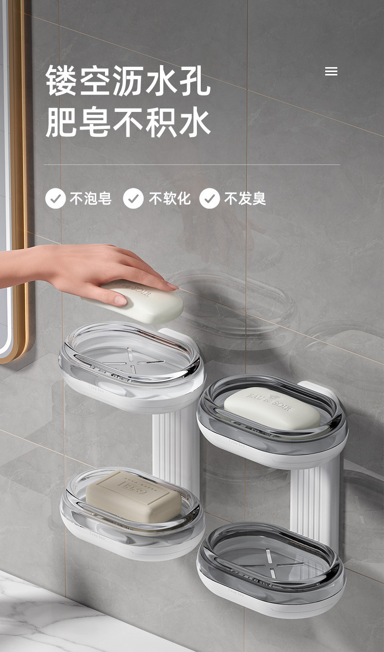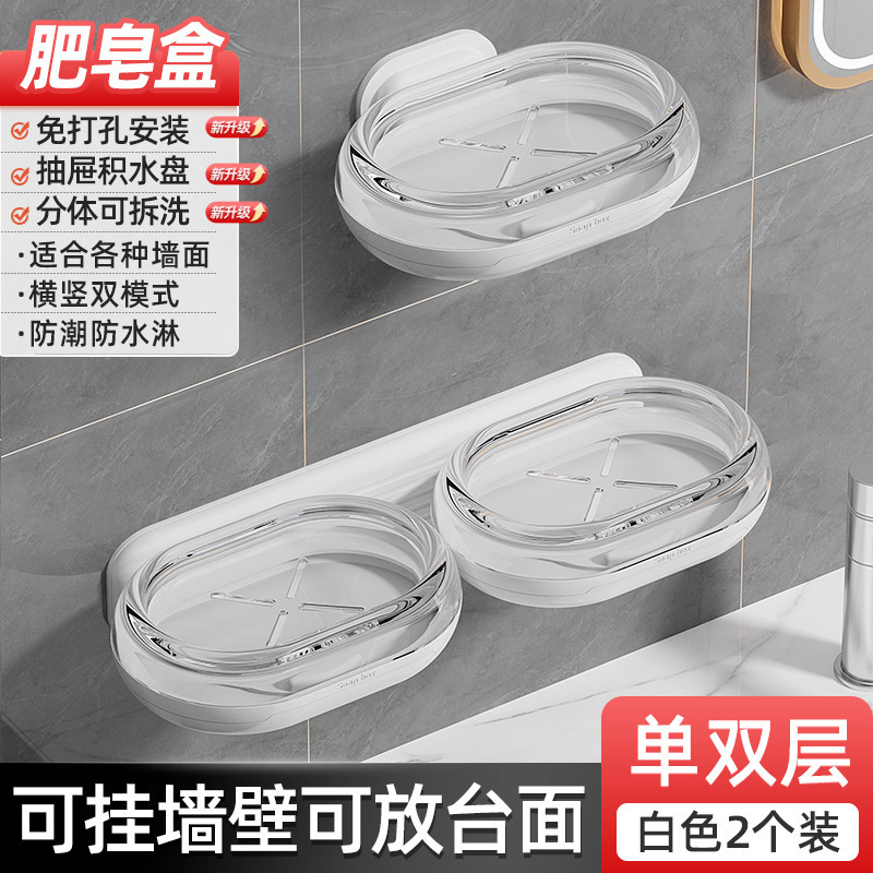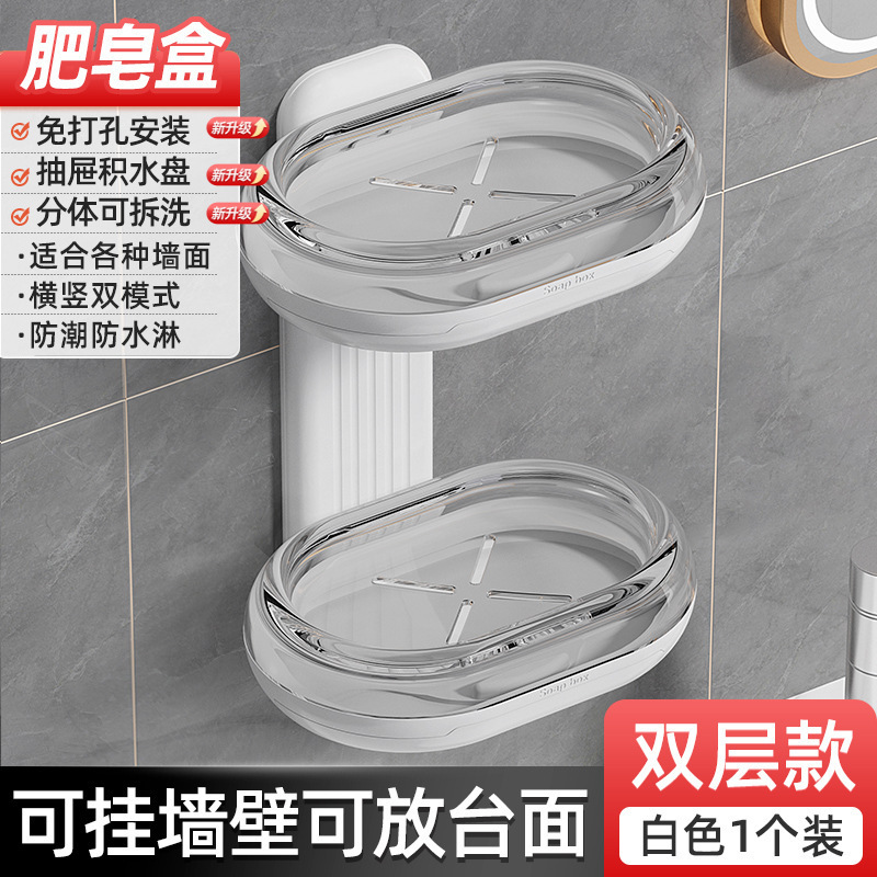 肥皂盒壁挂式沥水家用高档卫生间浴室墙上放香皂免打孔双 层置物
