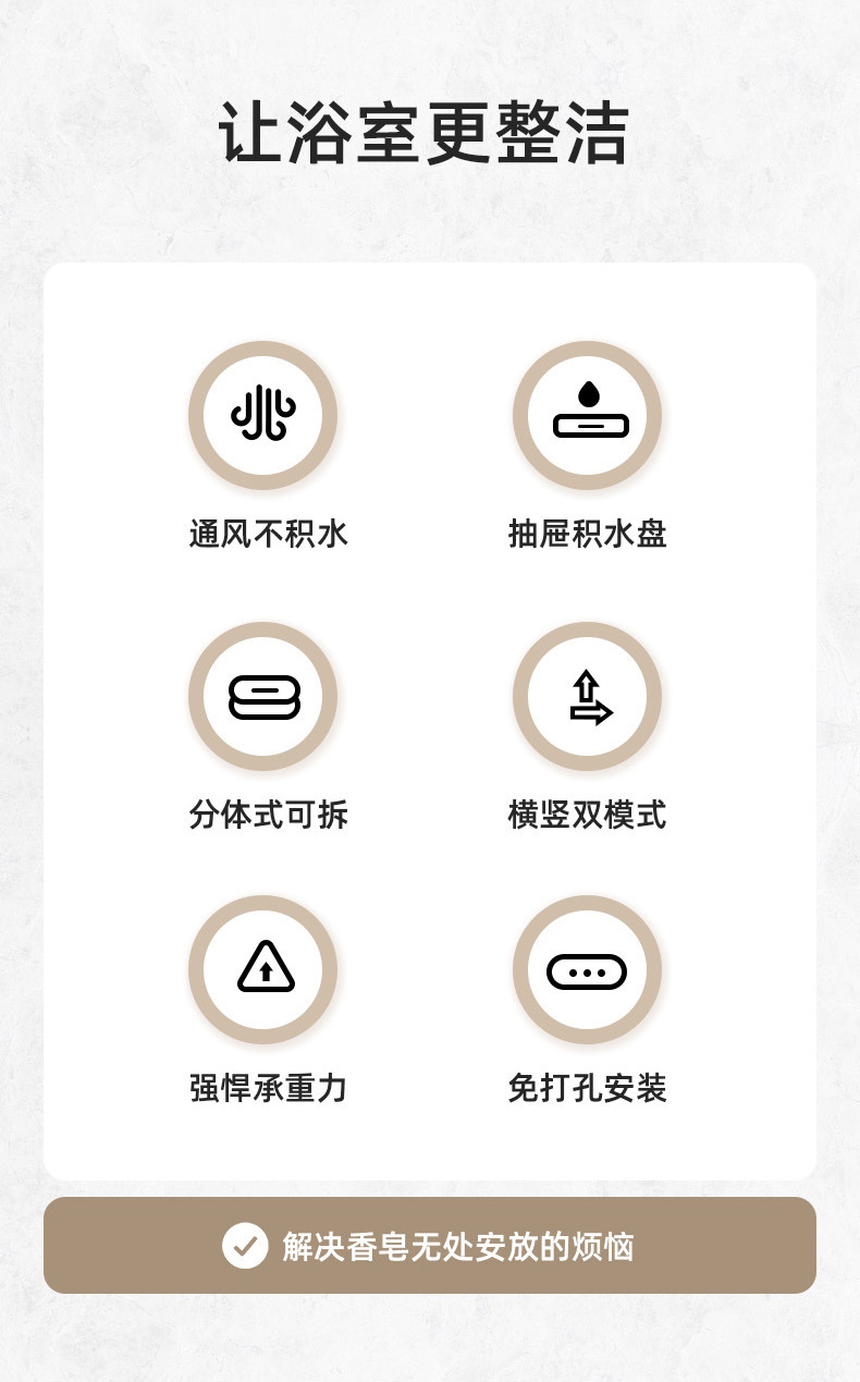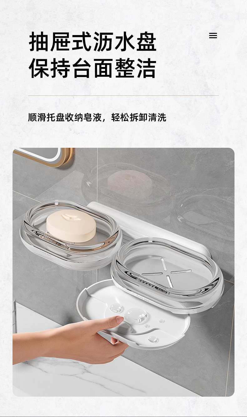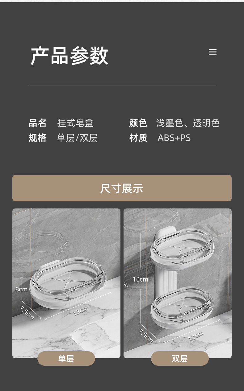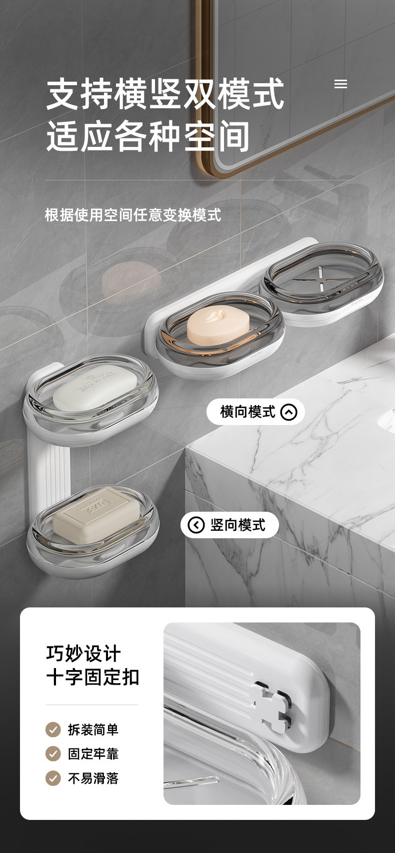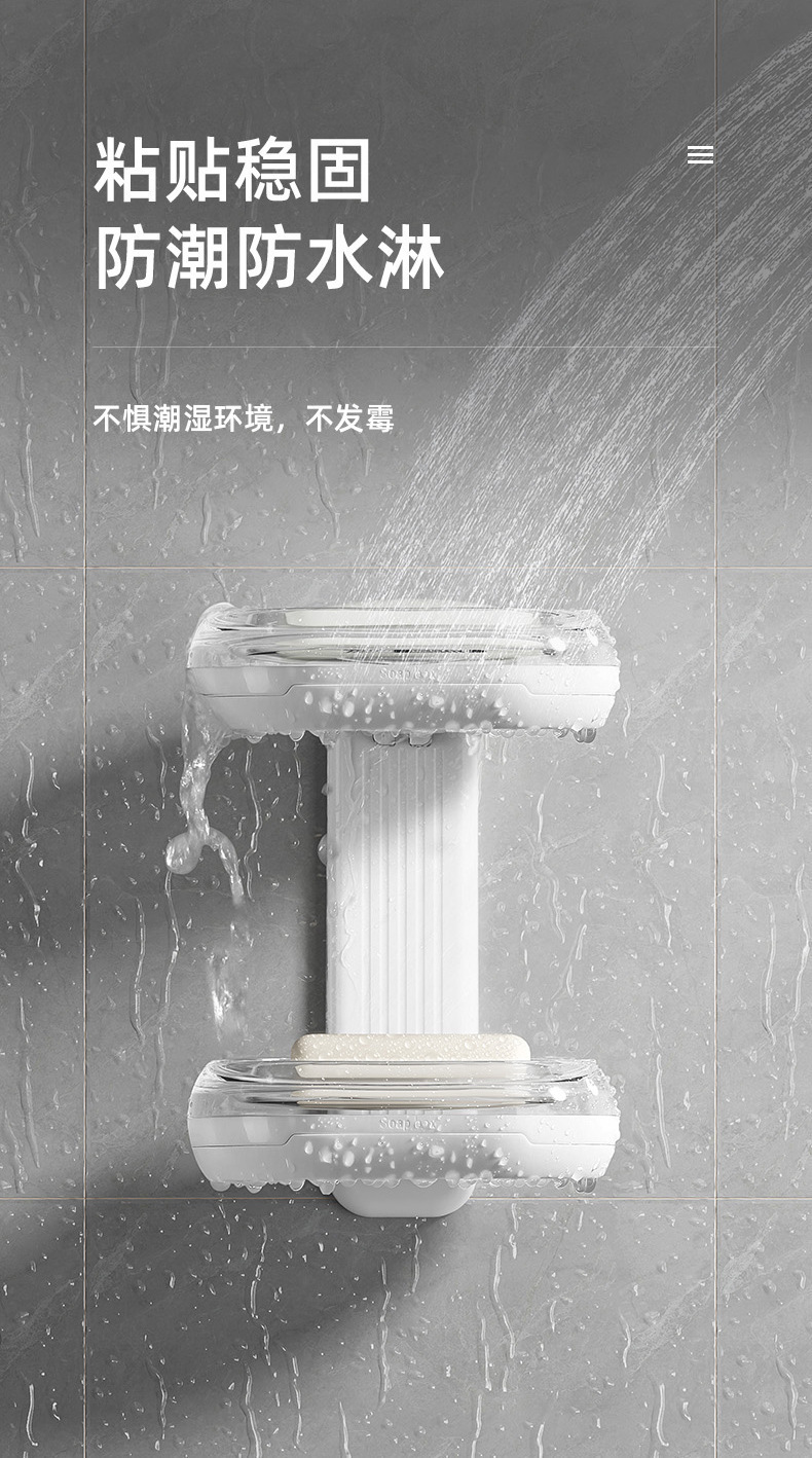 肥皂盒壁挂式沥水家用高档卫生间浴室墙上放香皂免打孔双 层置物