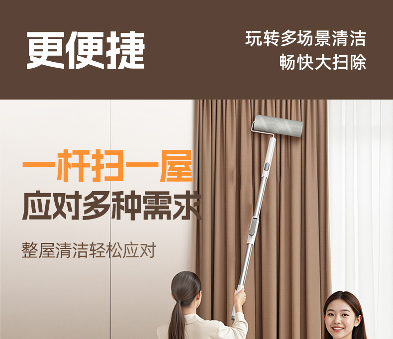 滚筒长杆滚刷替换猫毛衣服床上地板灰尘纸吸头发神器可撕纸粘毛器