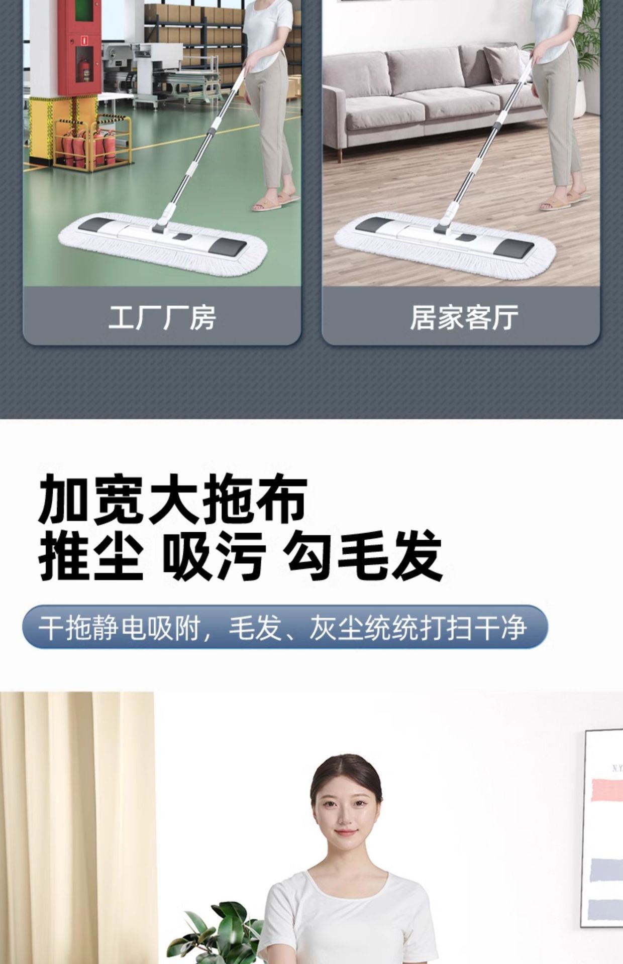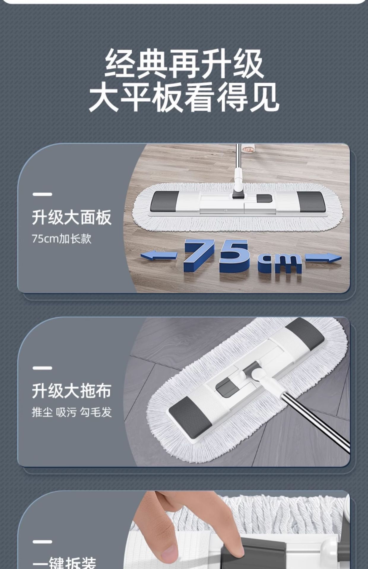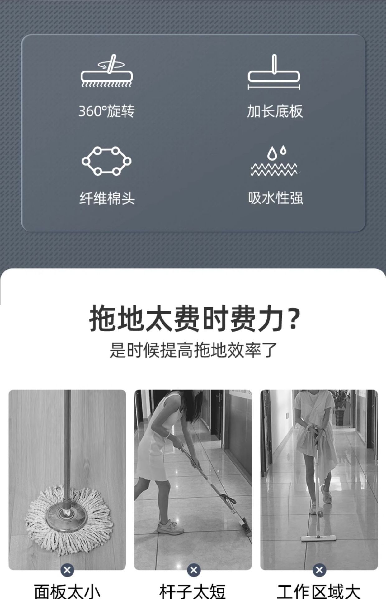 大号拖把平板家用瓷砖地木地板棉线尘推旋转免手洗干湿两用平板拖