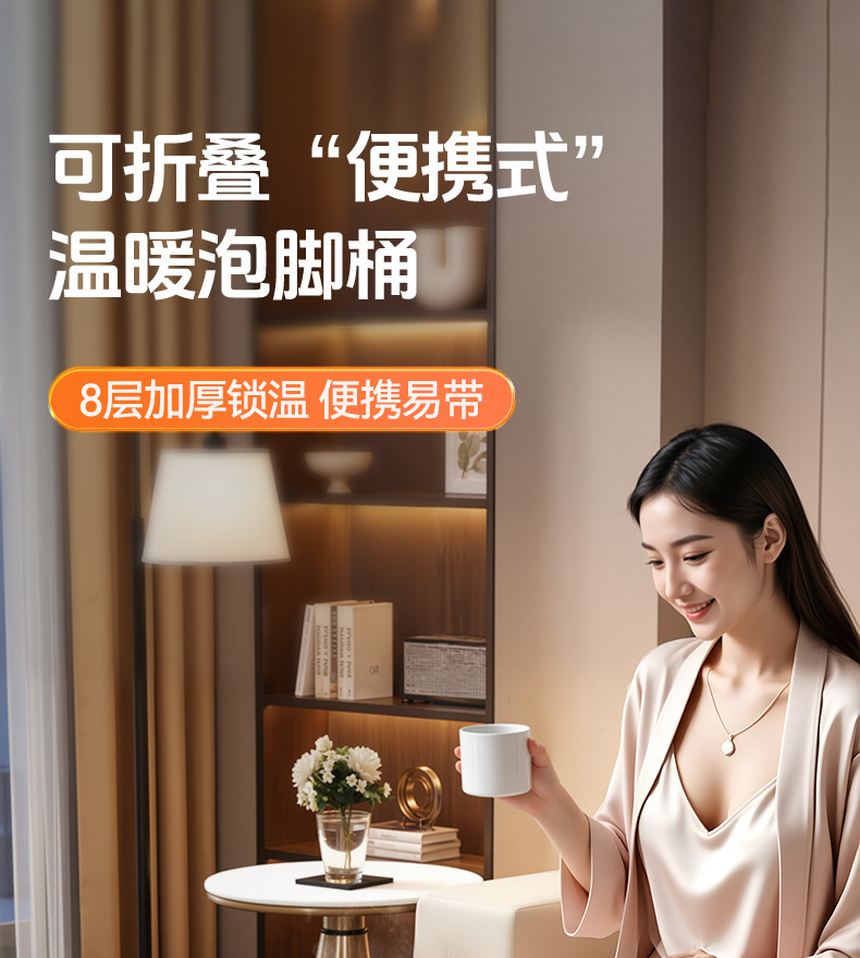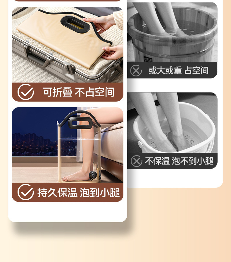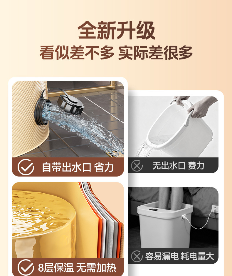 家用足浴盆便携式泡脚桶可折叠保温养生洗脚盆高深过小腿泡脚神器