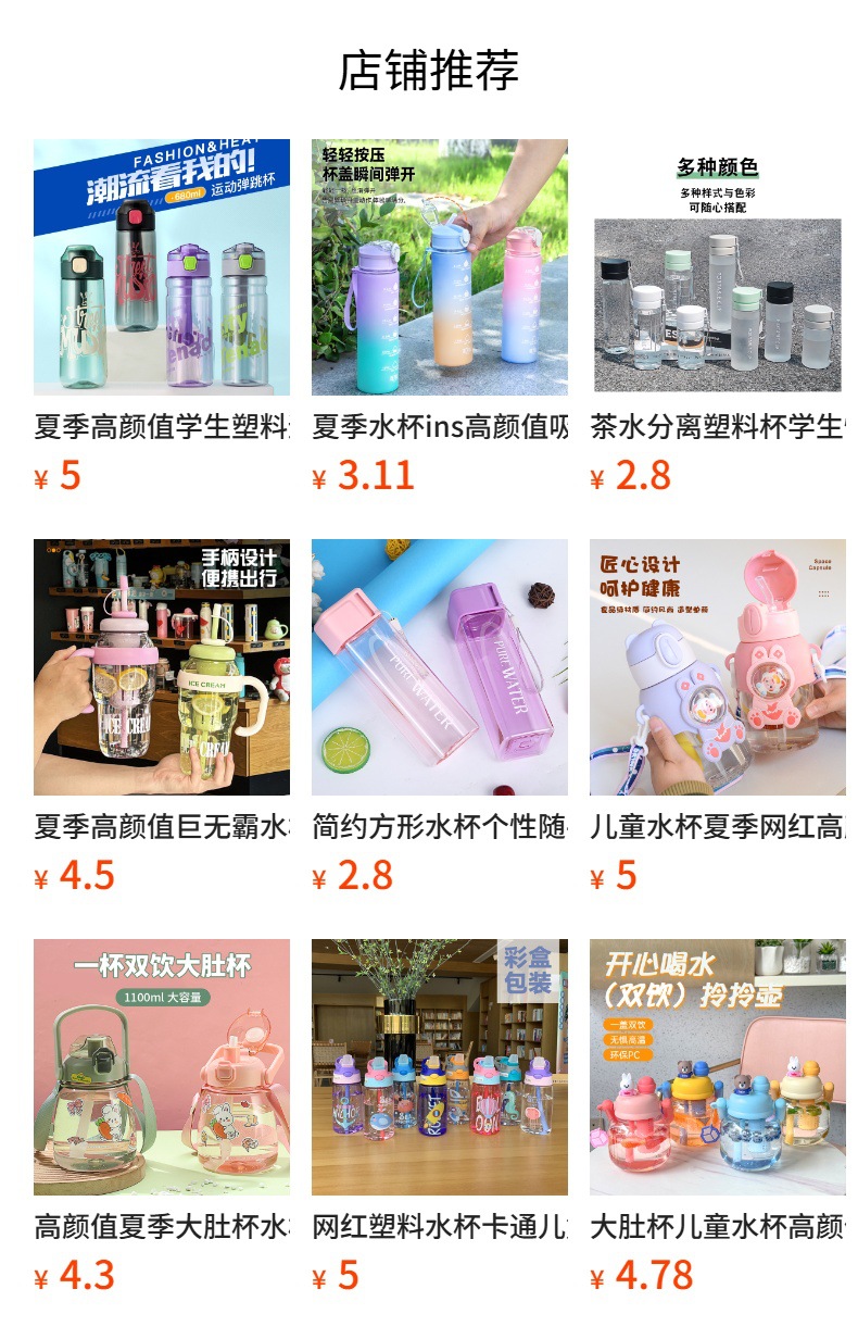 简约塑料水杯户外便携弹跳盖吸管杯卡通高颜值学生男女情侣杯定制