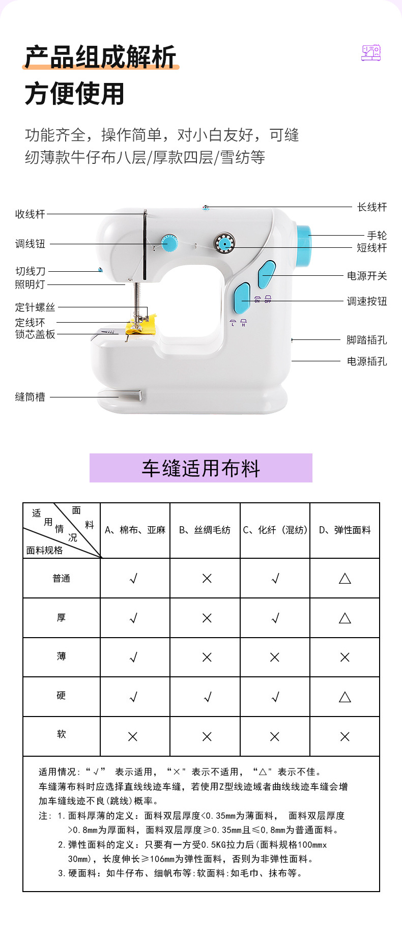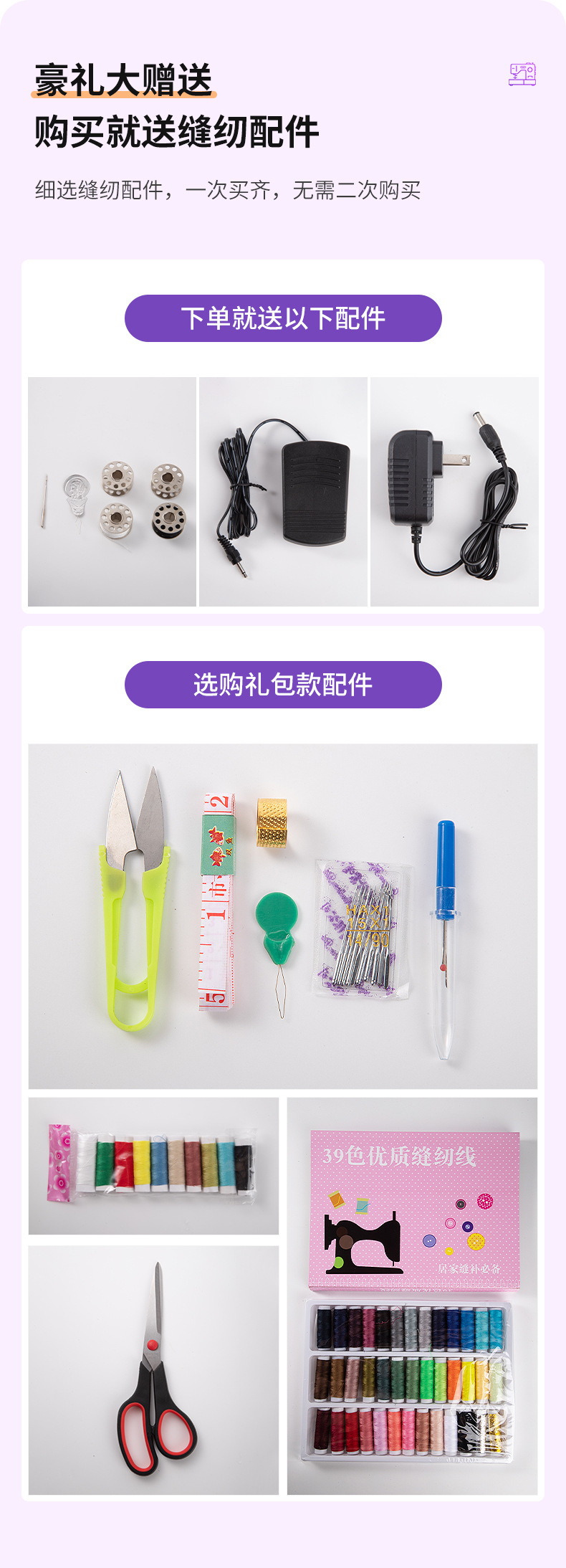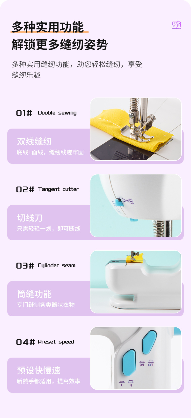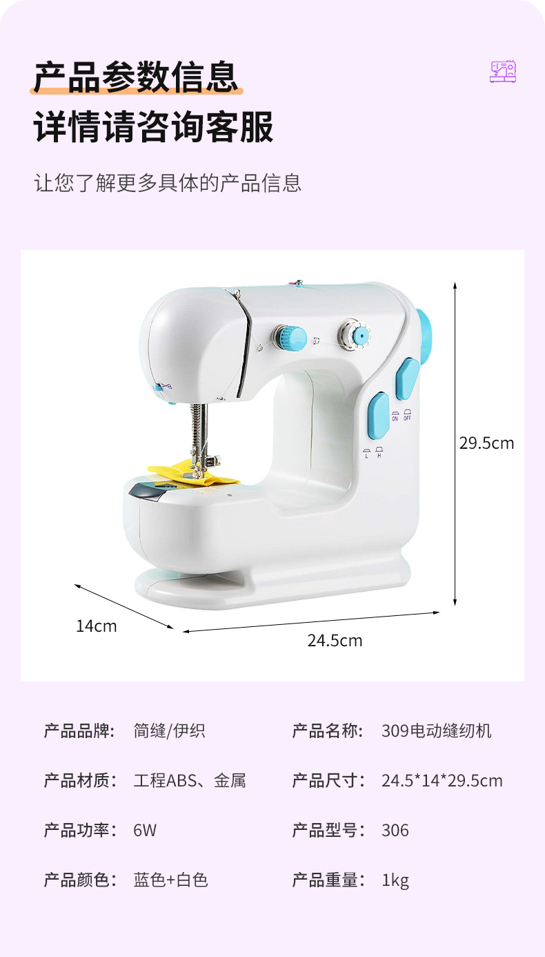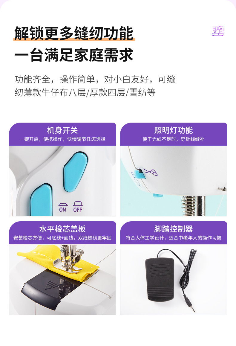 厂家批发迷你便携缝纫机多功能电动小型双线家用平缝机