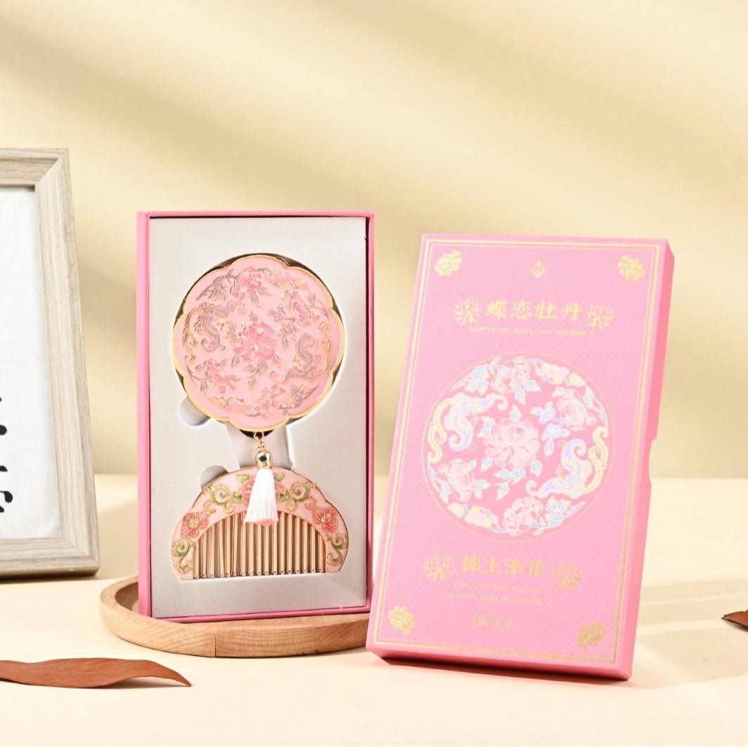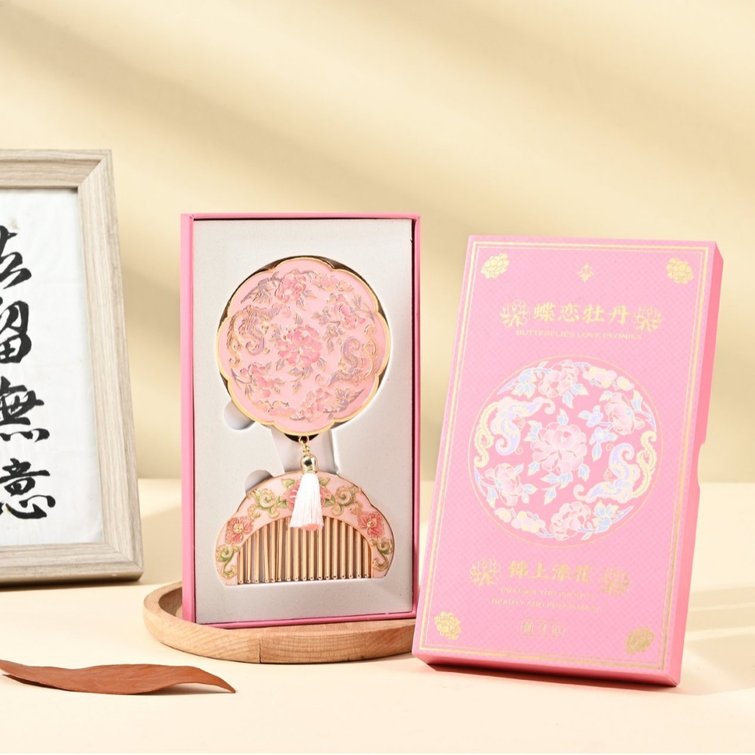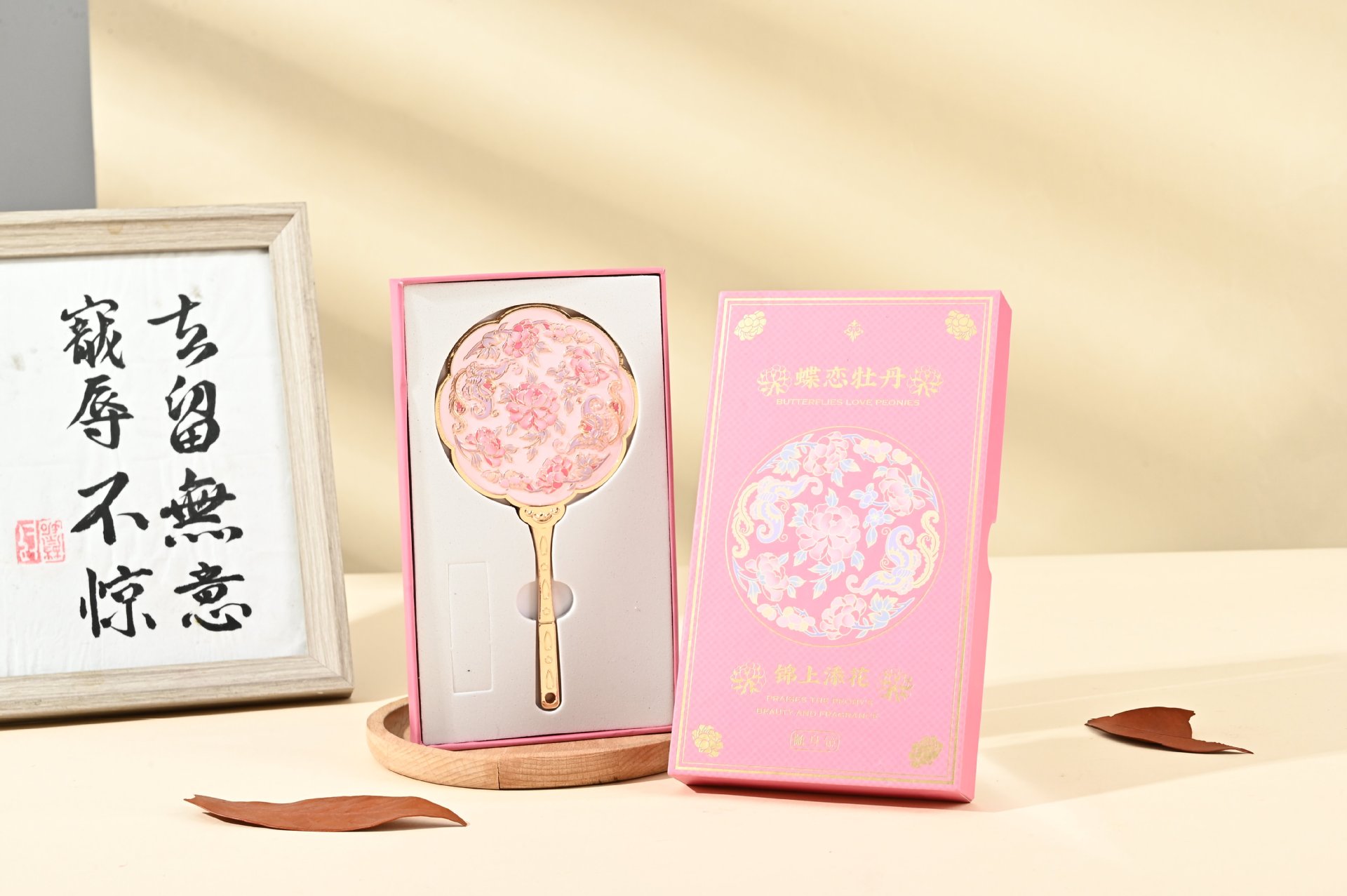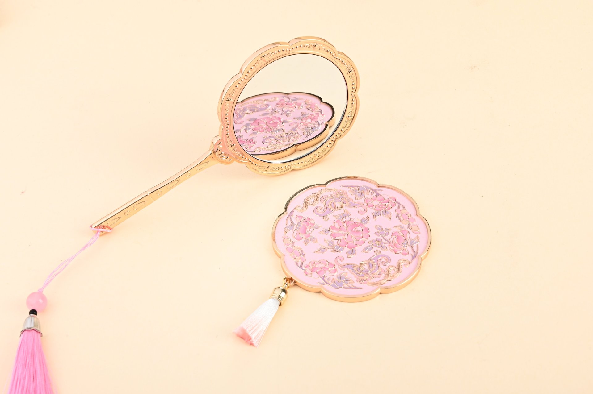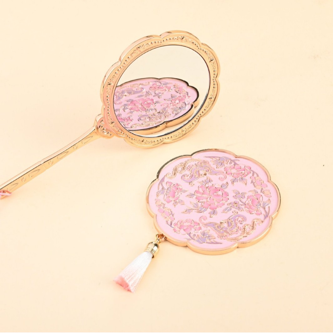 手持镜古风金属批发国风锌合金浮雕便携化妆镜镜子定制古风化妆镜