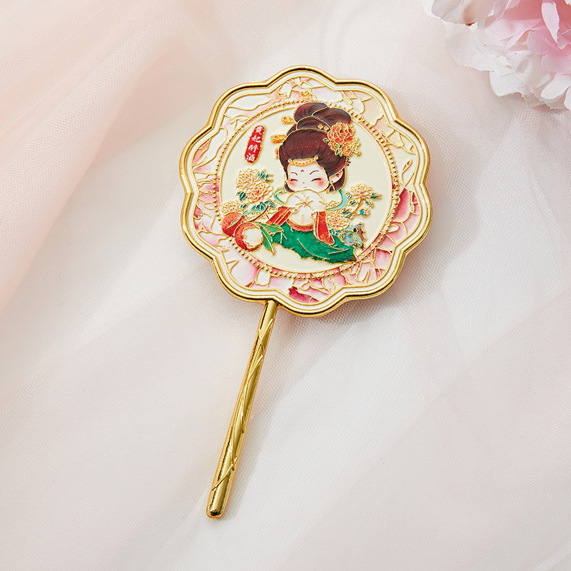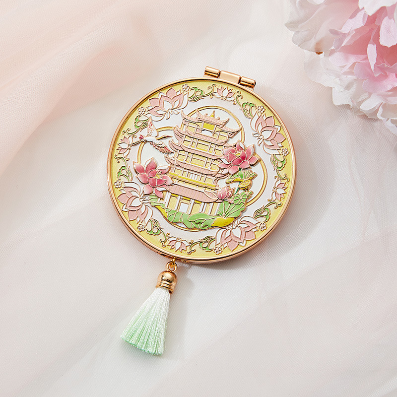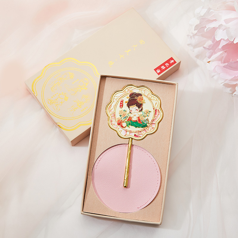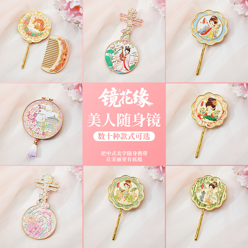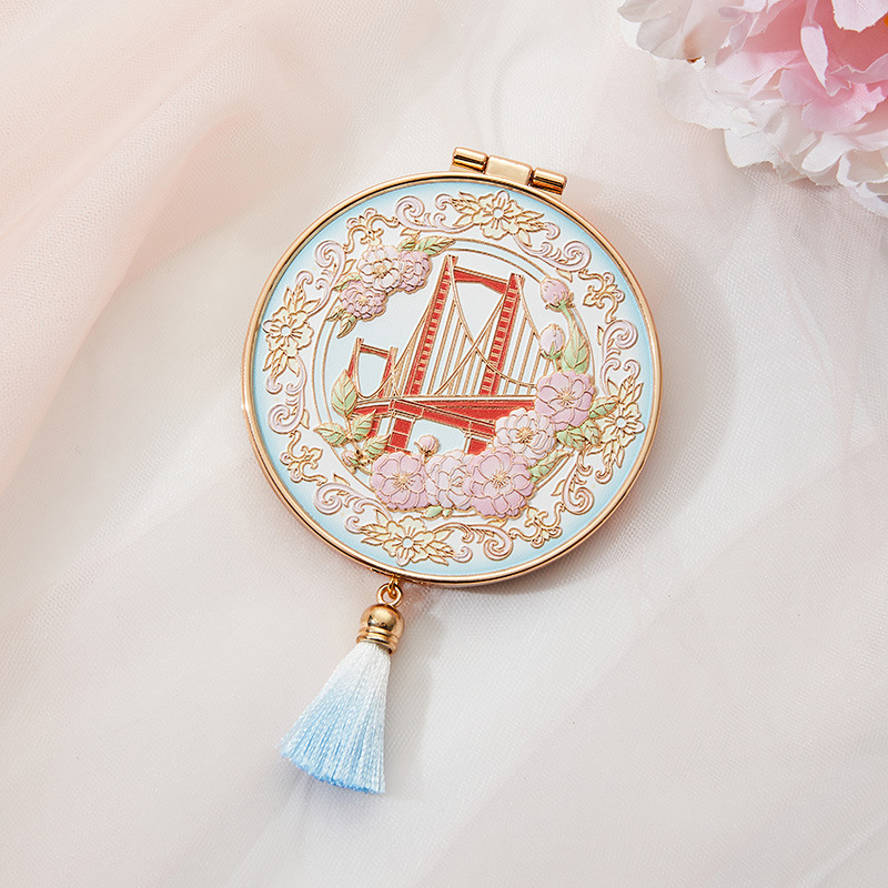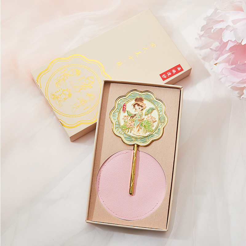 南京武汉旅游四大美女中国风金属手持镜翻盖随身镜化妆镜文创铜制