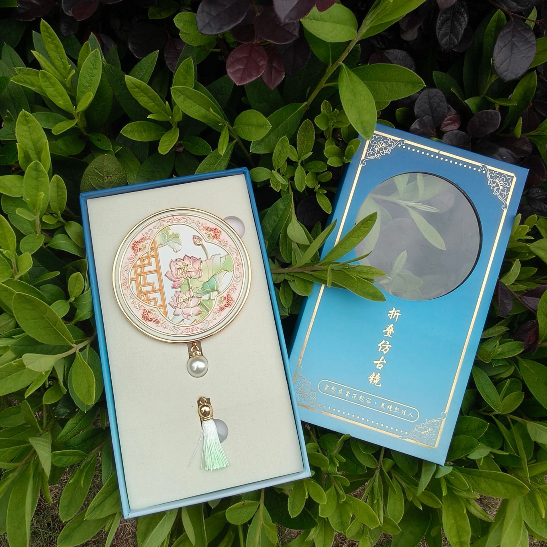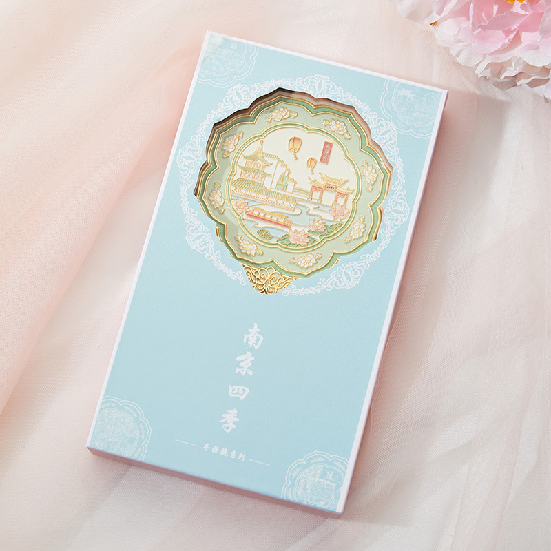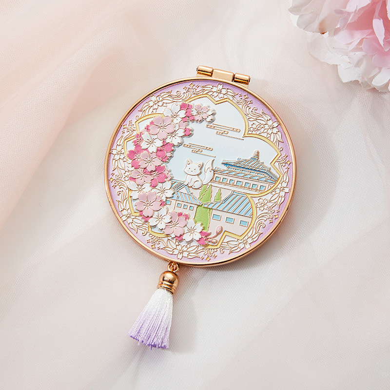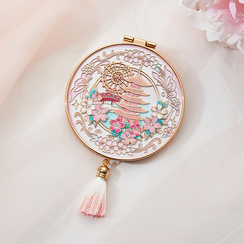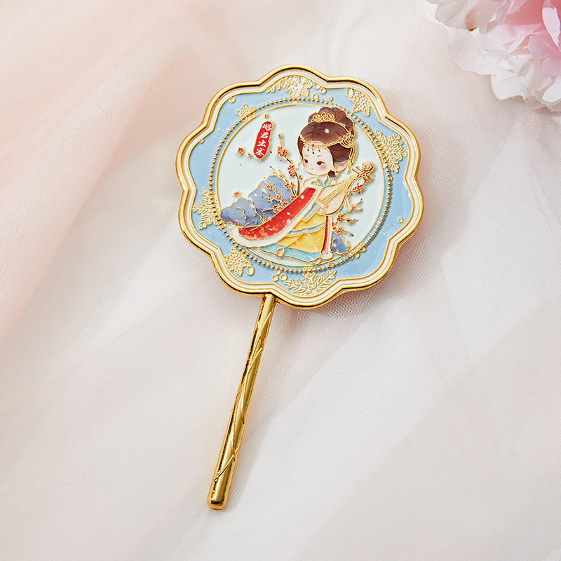 南京武汉旅游四大美女中国风金属手持镜翻盖随身镜化妆镜文创铜制
