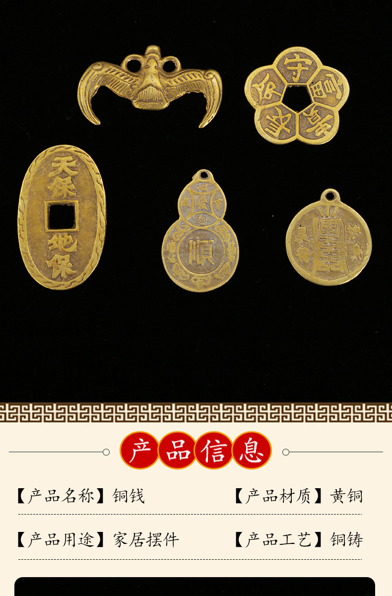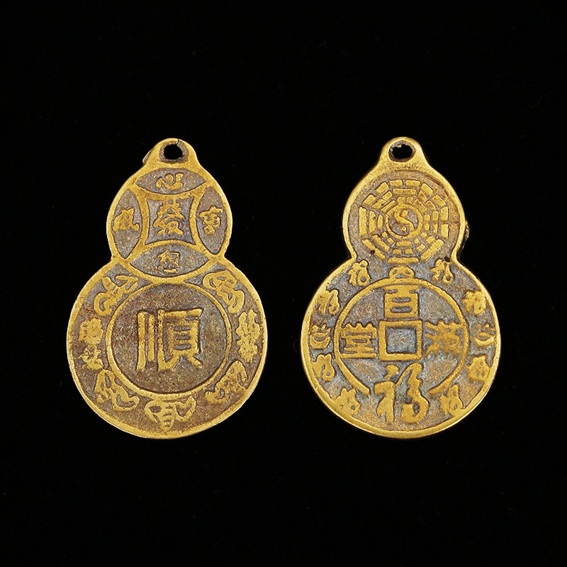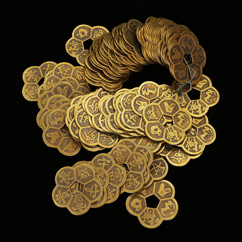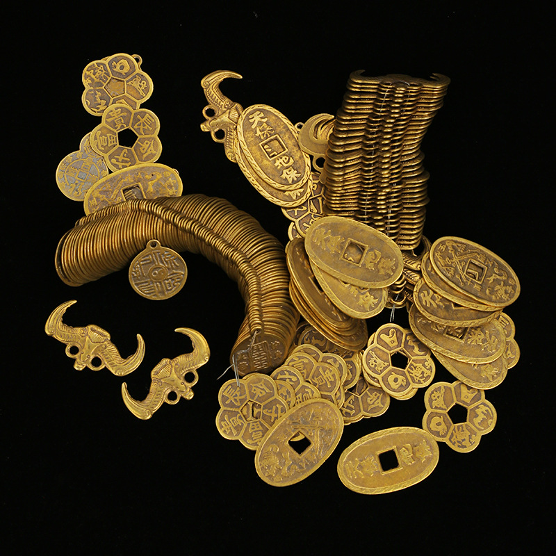 黄铜天保地保铜钱批发蝙蝠钱黄铜梅花钱葫芦顺铜钱八卦钱八卦镜