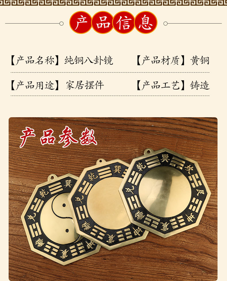 批发黄铜八卦镜大号描黑加厚八卦镜凸镜凹镜大号太极镜铜镜