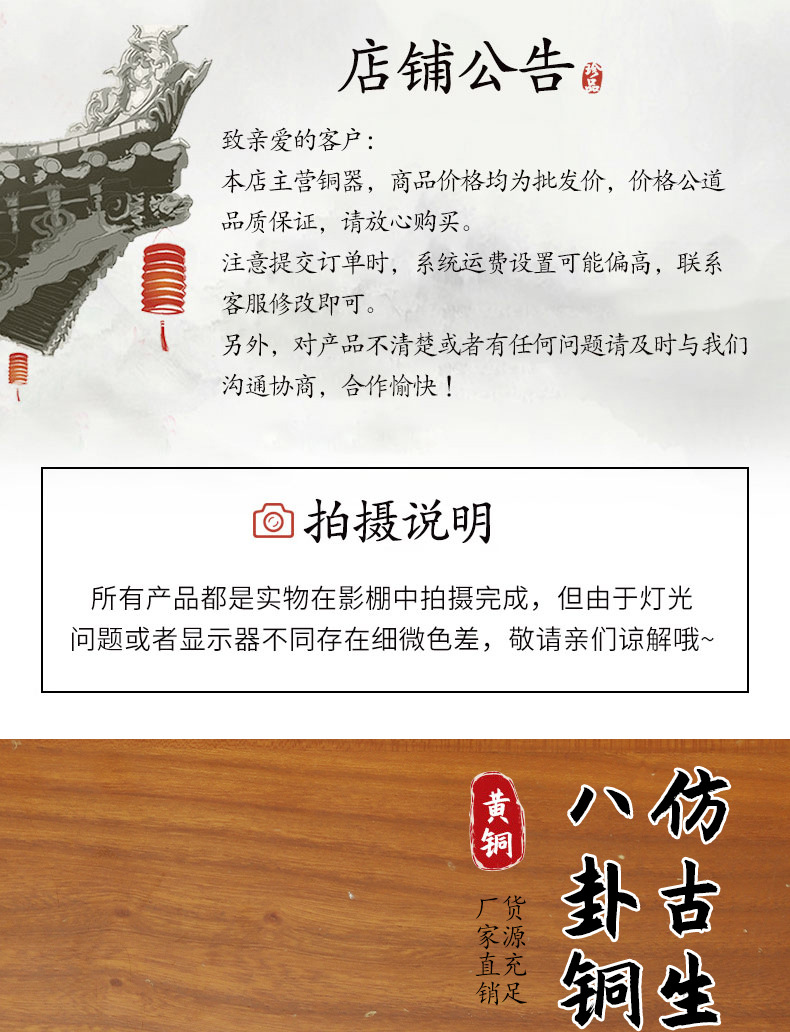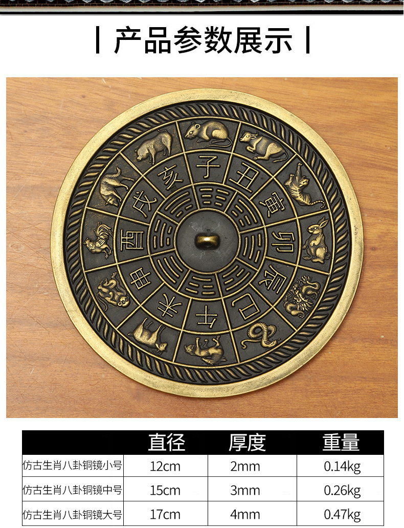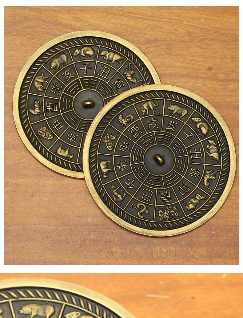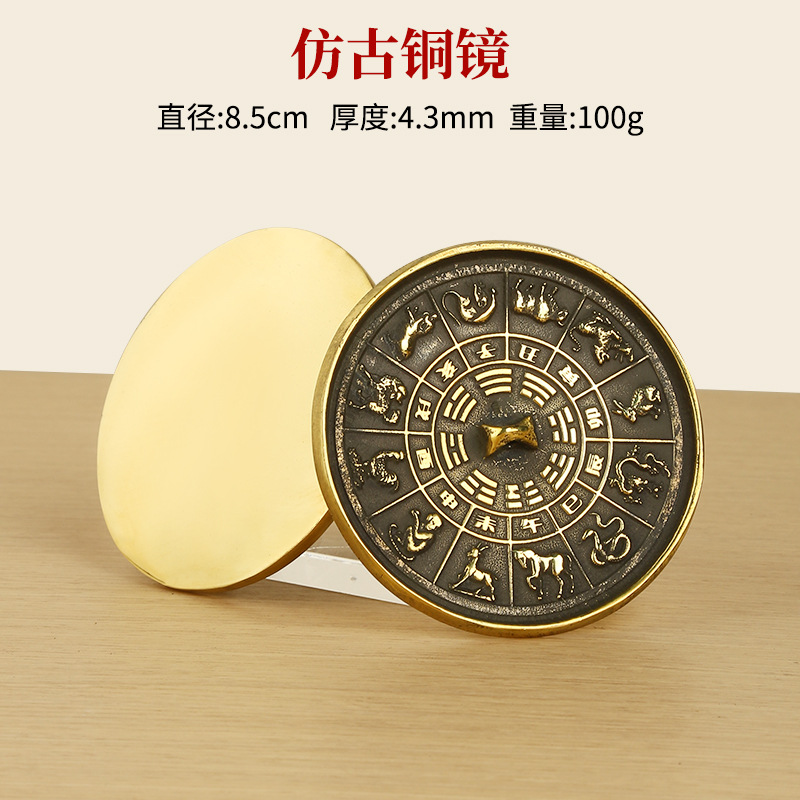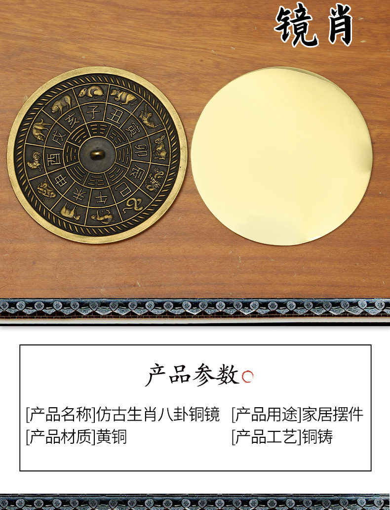 批发仿古黄铜铜镜十二生肖铜镜八卦镜家居挂饰摆件