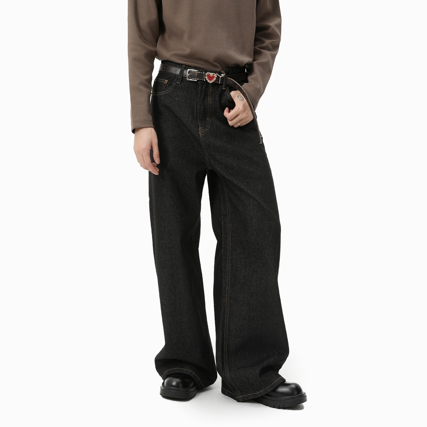 MTLCLOTHES男装|复古vibe休闲H版型直筒拖地阔腿宽松牛仔长裤潮流