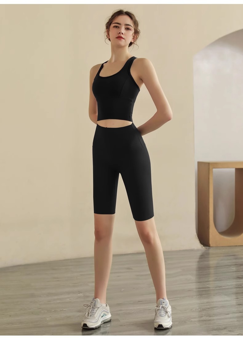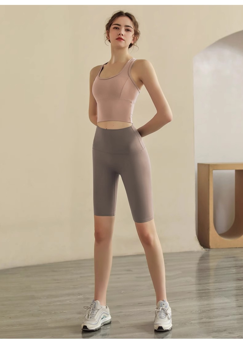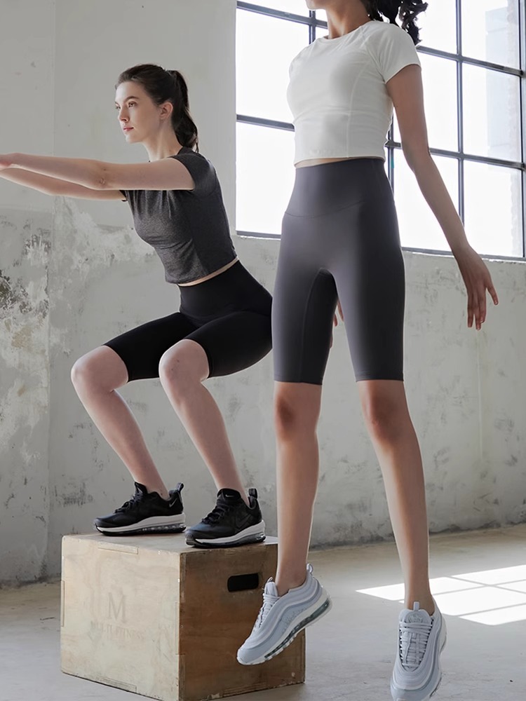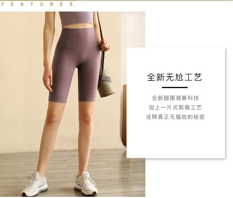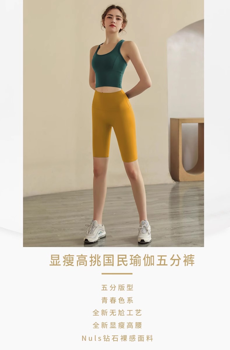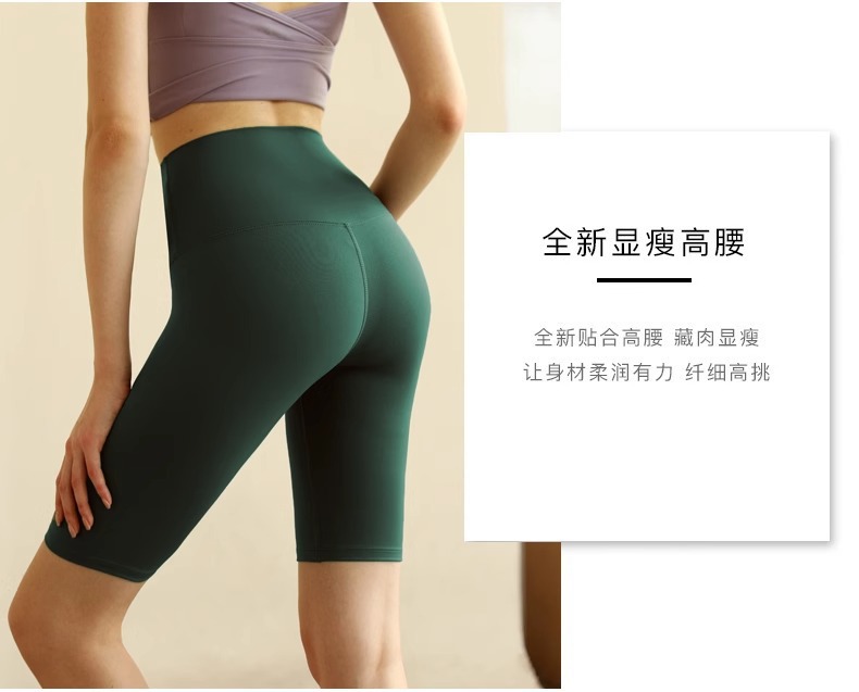 速干无T线高腰瑜伽短裤裸感紧身提臀蜜桃健身跑步运动五分瑜伽裤