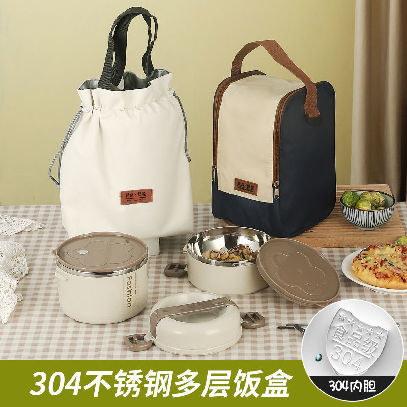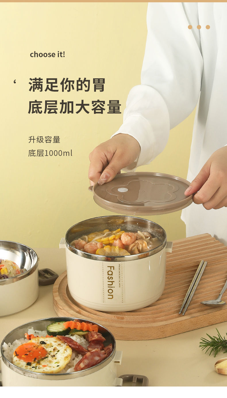 不锈钢饭盒保温便携分隔型上班族可爱便当盒学生餐盒带盖碗保温桶