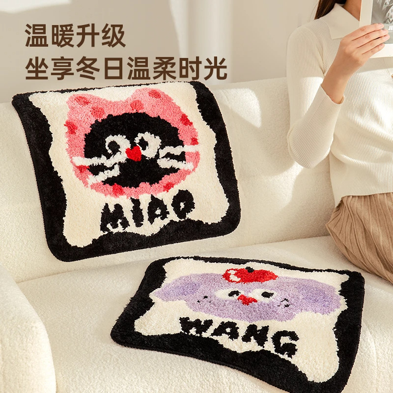 冬季簇绒坐垫家用办公室久坐屁股垫卡通毛绒椅垫防滑隔凉学生座垫