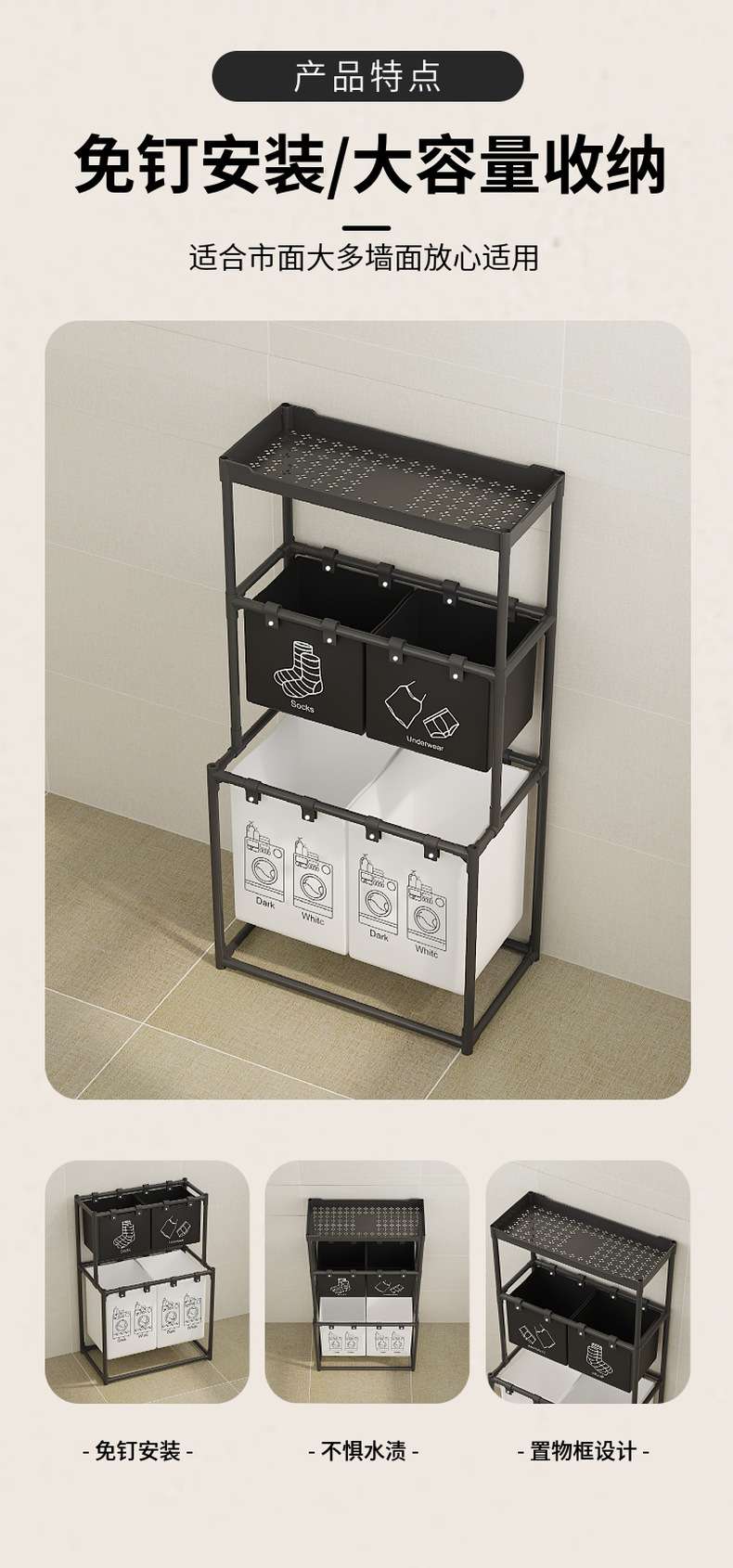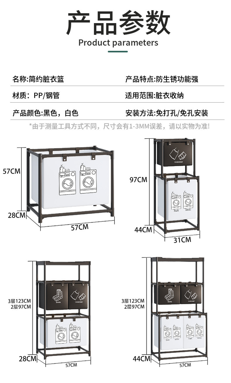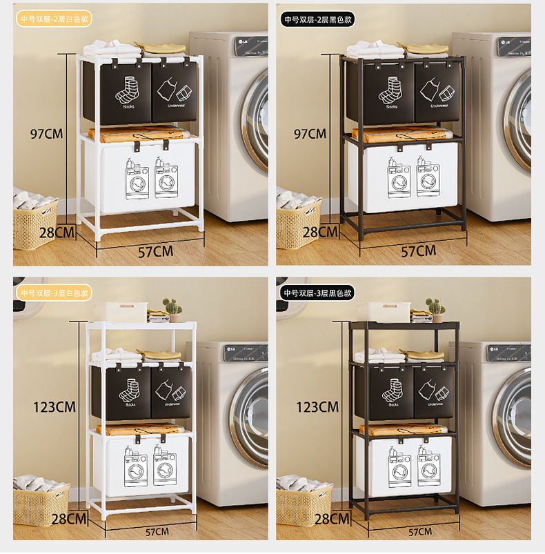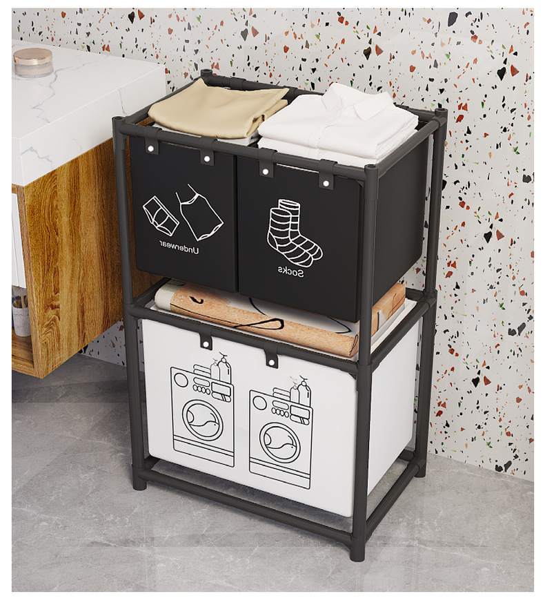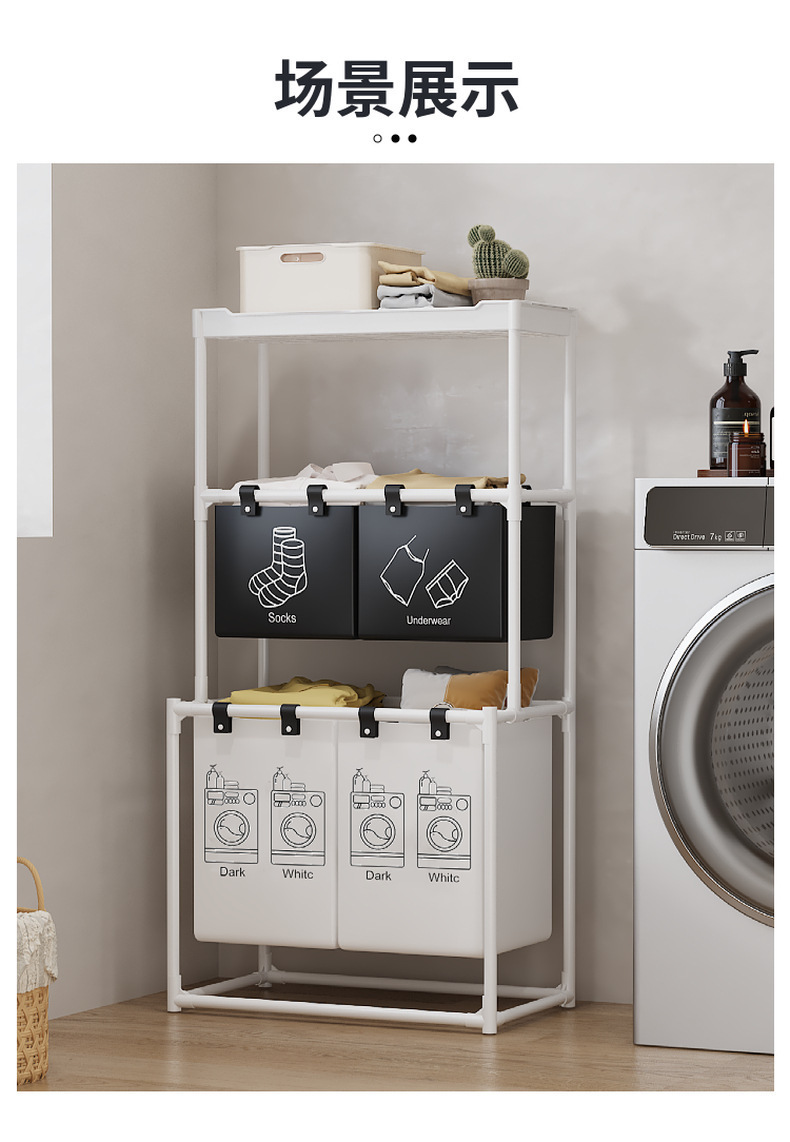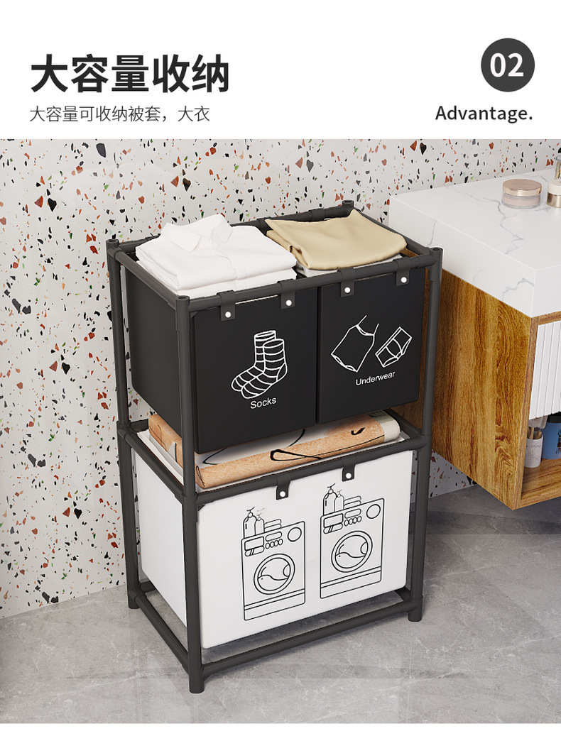 跨境热销新款双层收纳脏衣篮置物架置物收纳篮衣服分类收纳神器