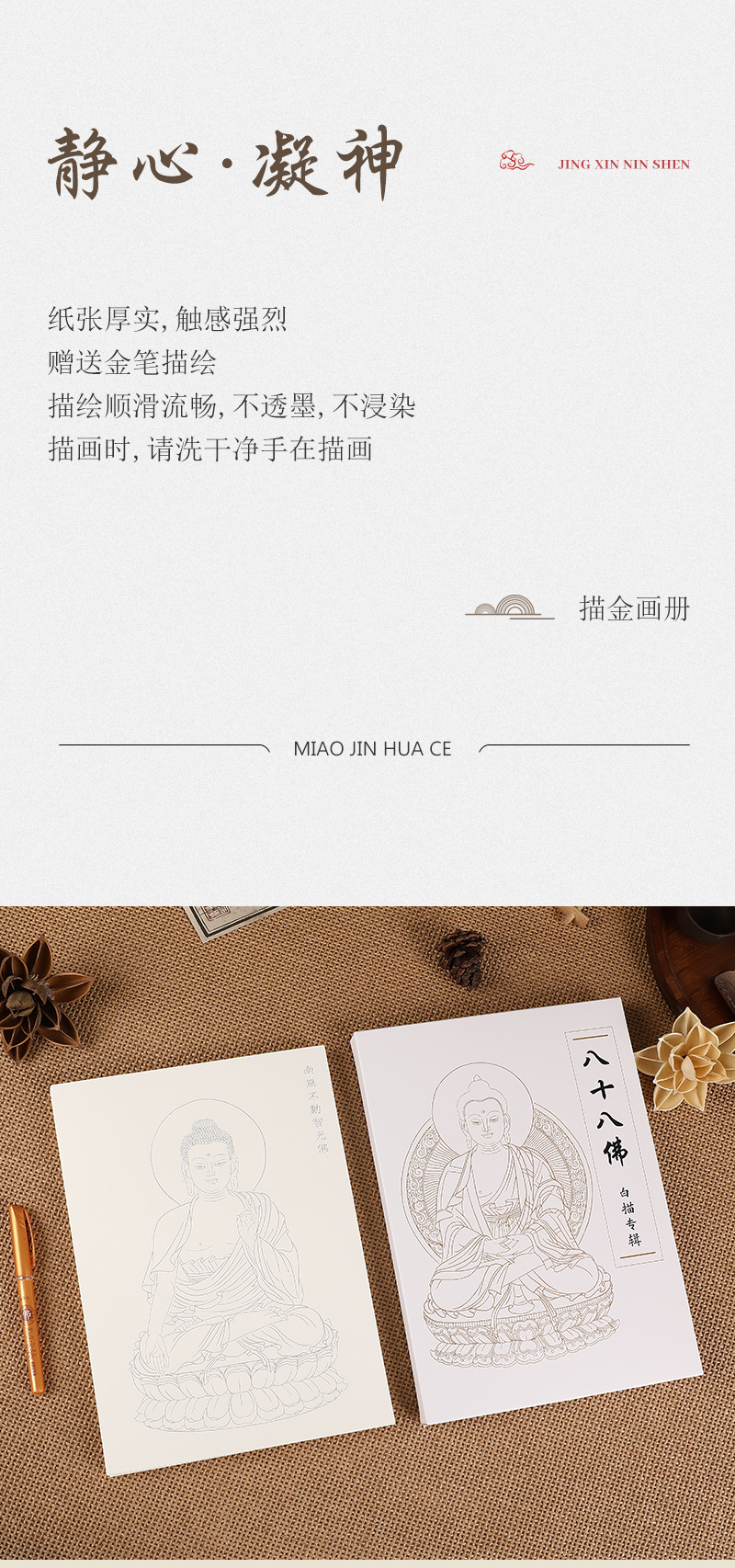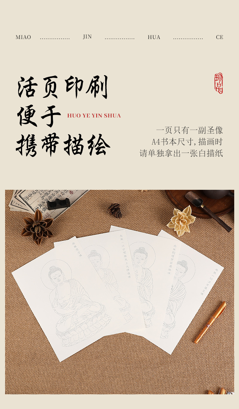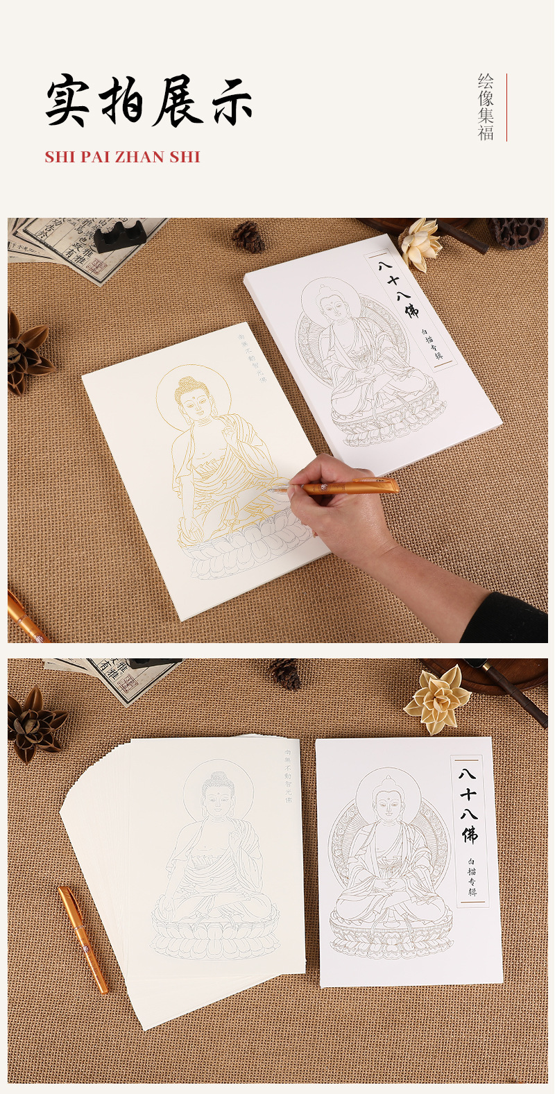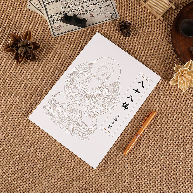 八十八佛描金画册佛像临摹本白底线稿线条手绘本佛家佛学修身养性