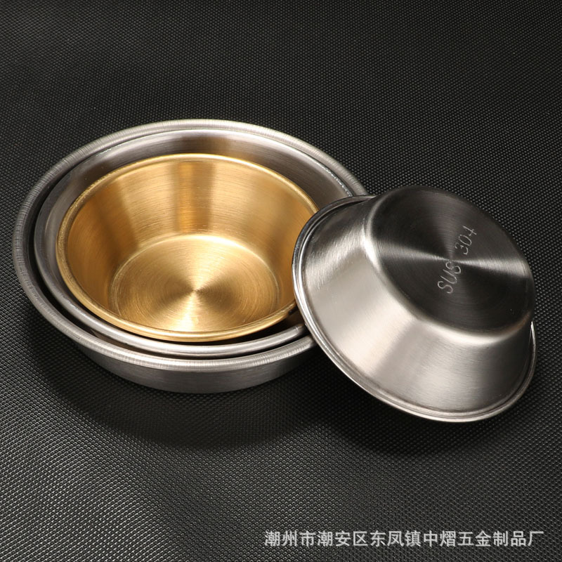 304不锈钢圆形蘸料碟韩式炸鸡小吃碗单层泡菜碟凉菜碟西餐厅餐具
