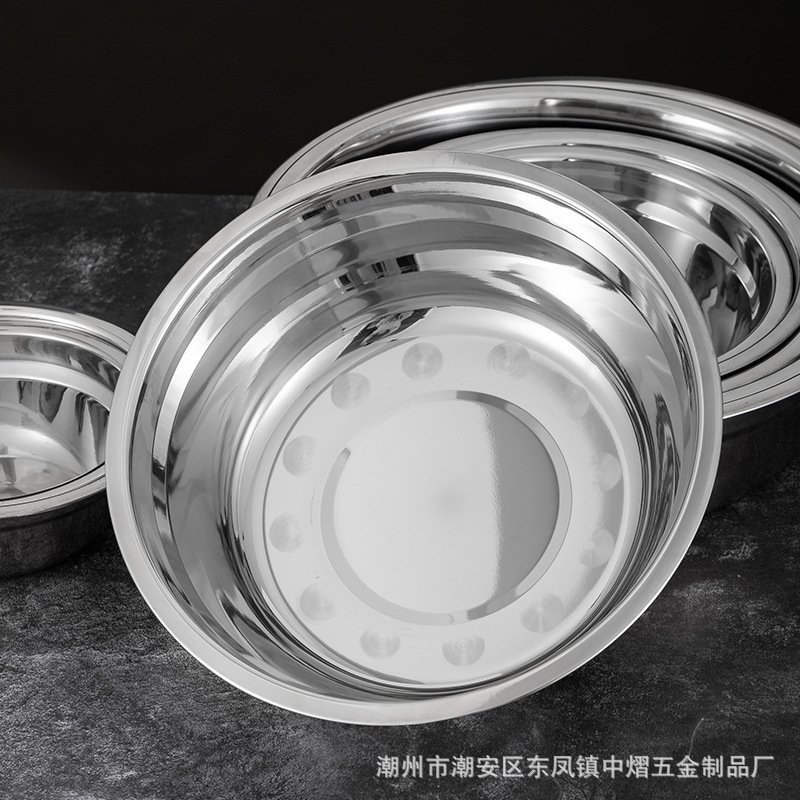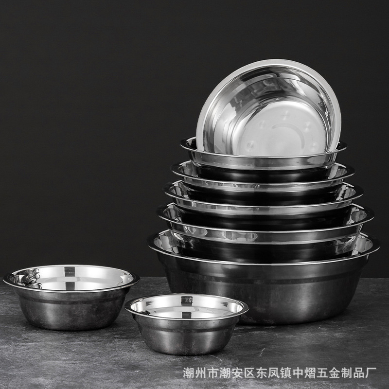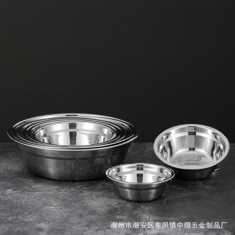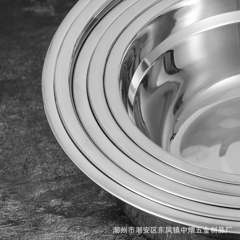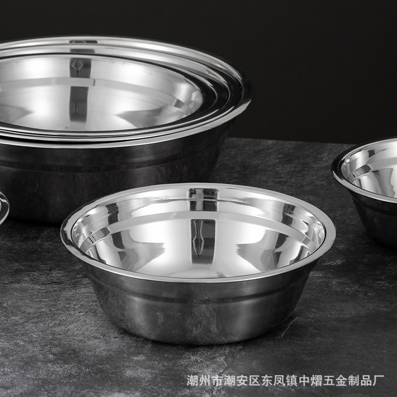 厂家批发不锈钢汤碗圆形汤盆加厚单层盆学校食堂菜盆调料盆无磁