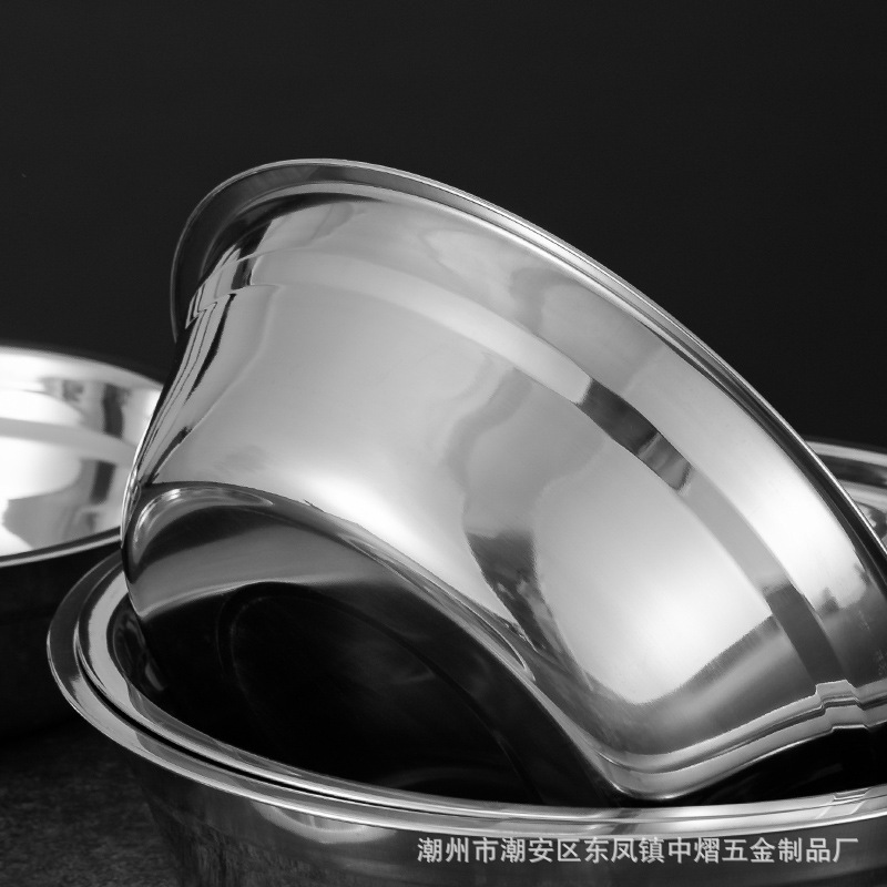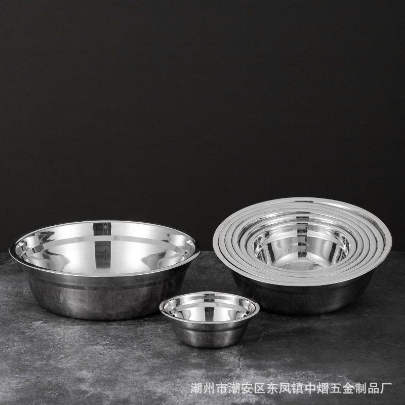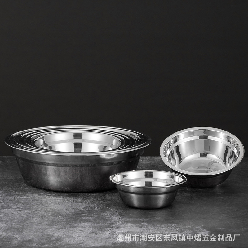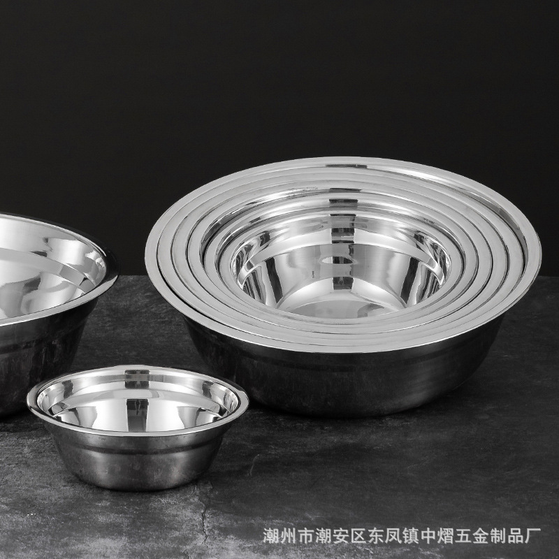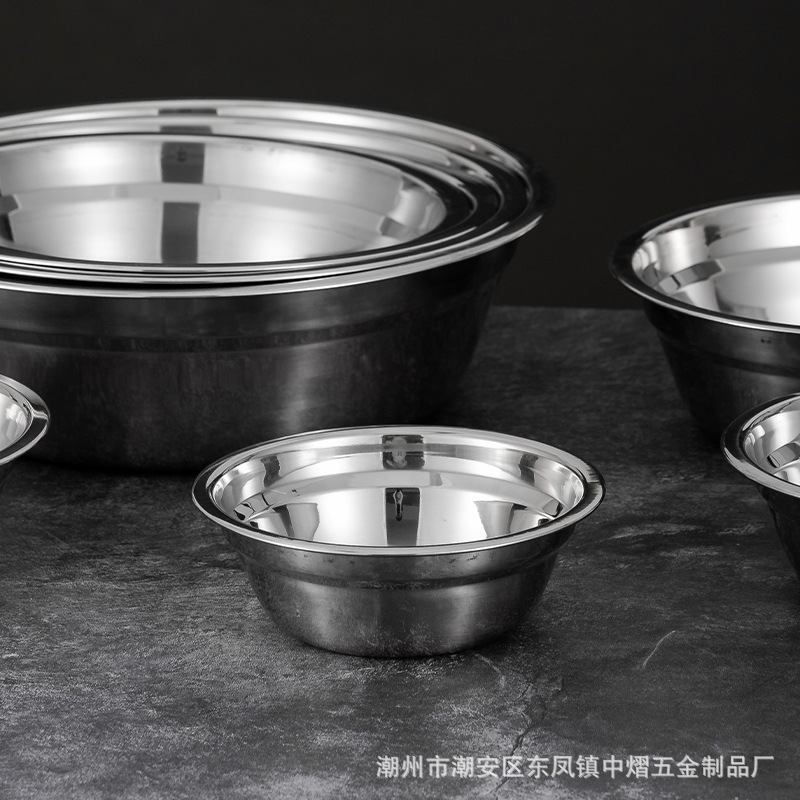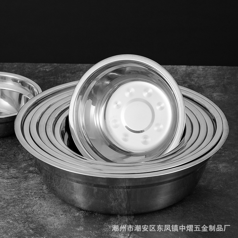 厂家批发不锈钢汤碗圆形汤盆加厚单层盆学校食堂菜盆调料盆无磁