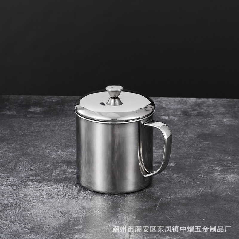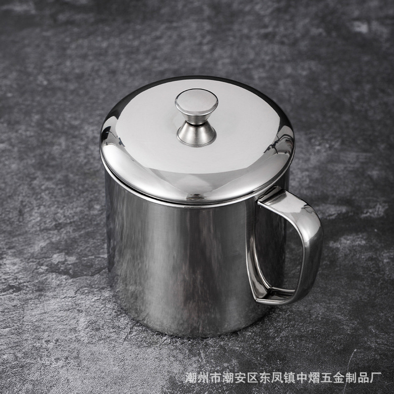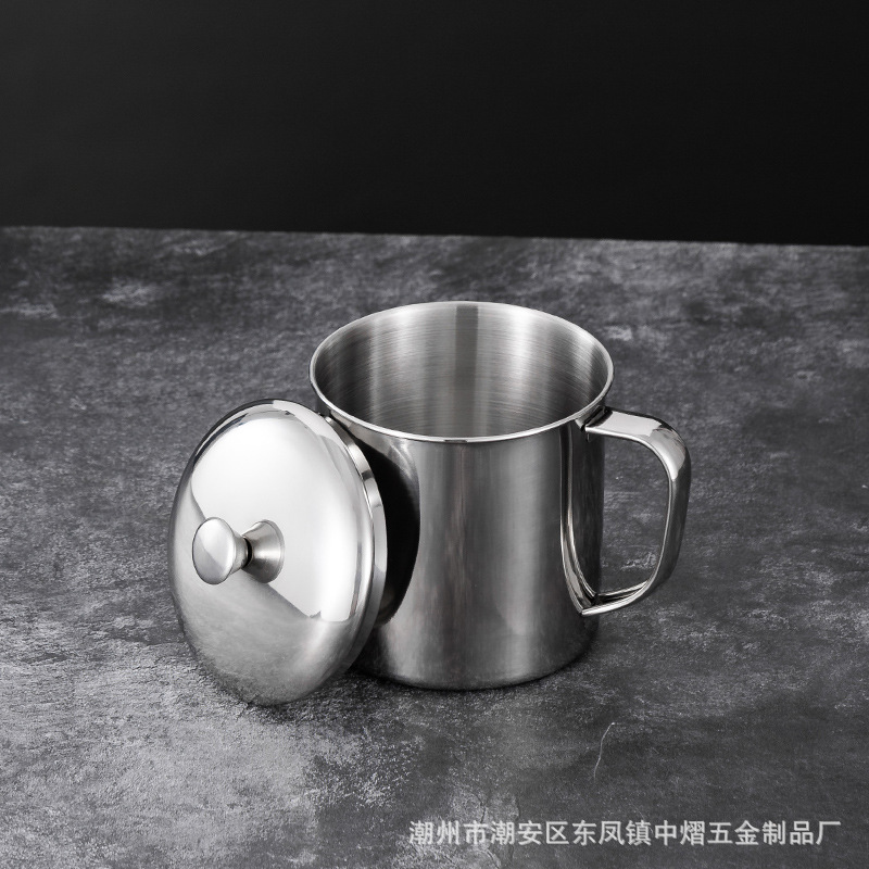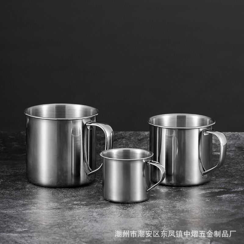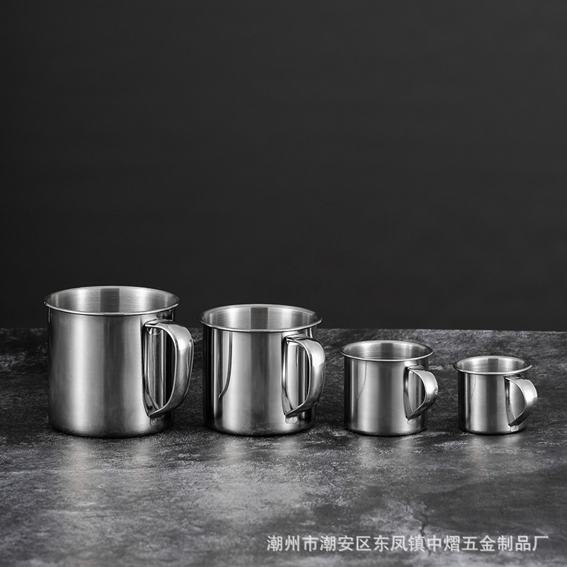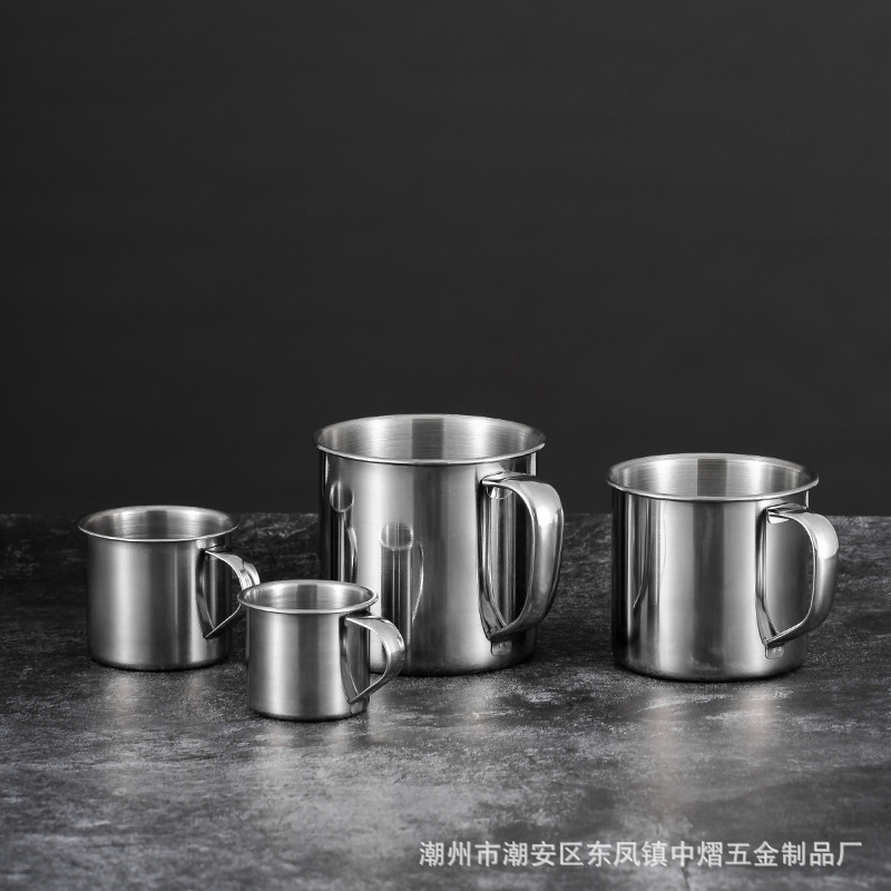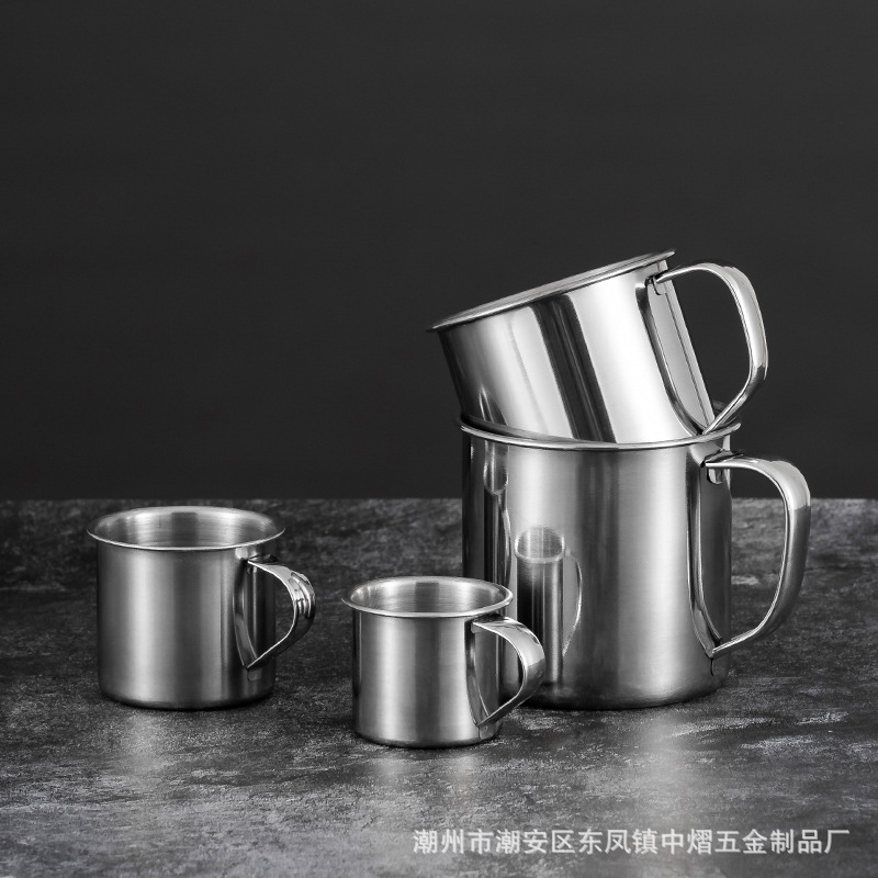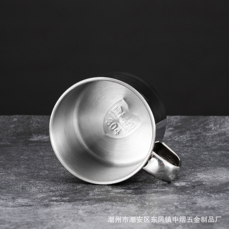 304不锈钢口杯250ml带盖水杯带把手量杯儿童幼儿园批发单层刻字