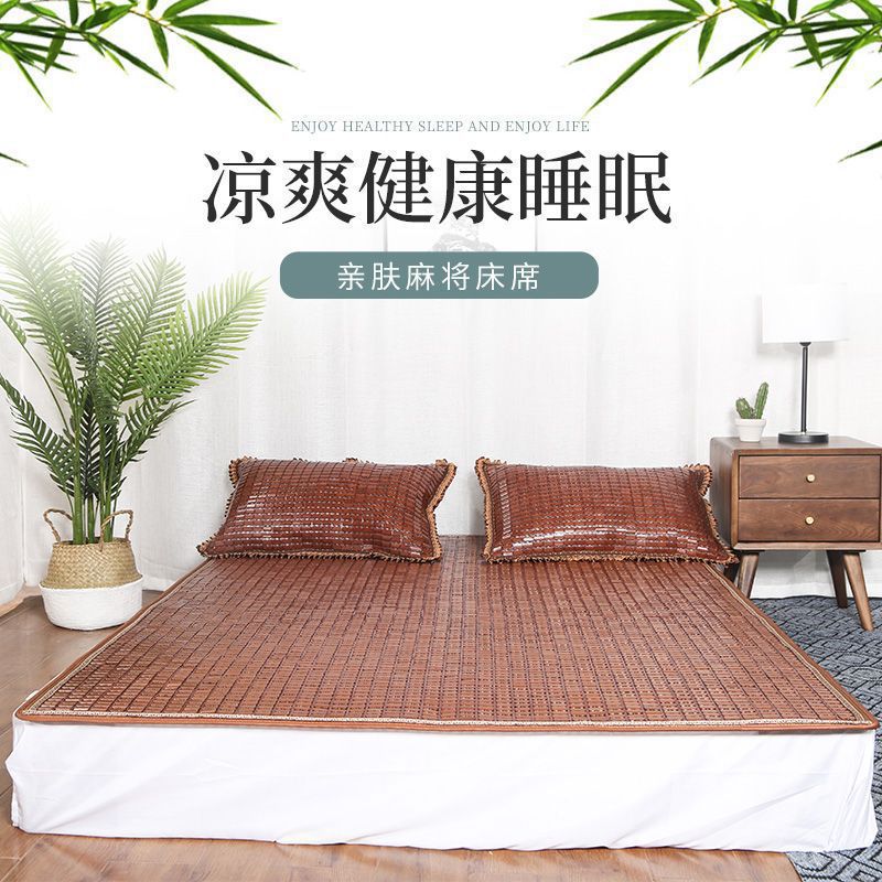新款麻将凉席竹席夏季家用折叠席子竹块麻将席床垫高端双布筋