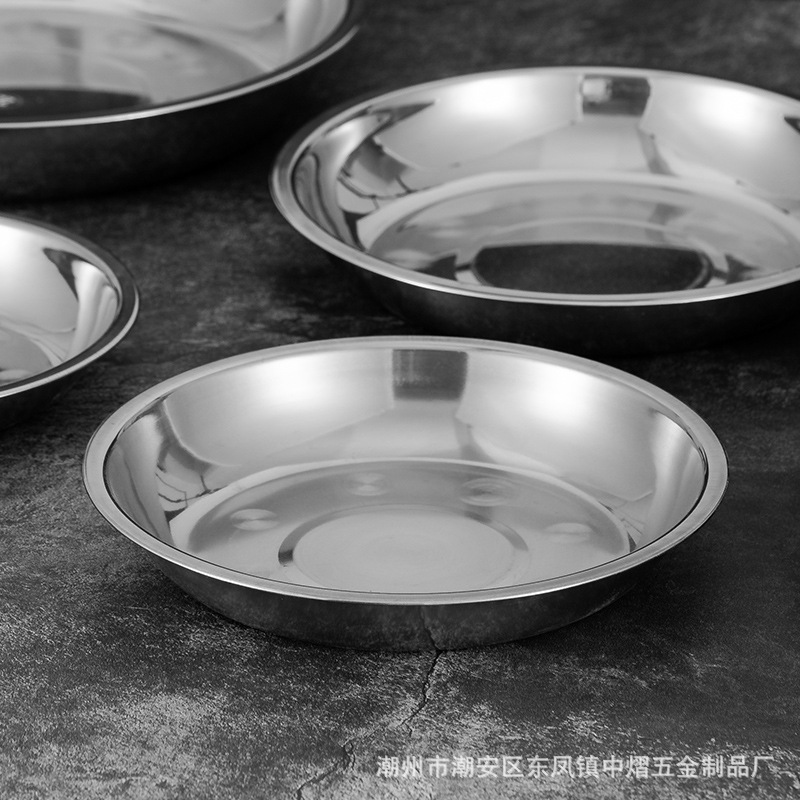 8cm不锈钢圆盘调料盘带磁圆形小碟子加厚汤盘浅盘礼品两元店促销