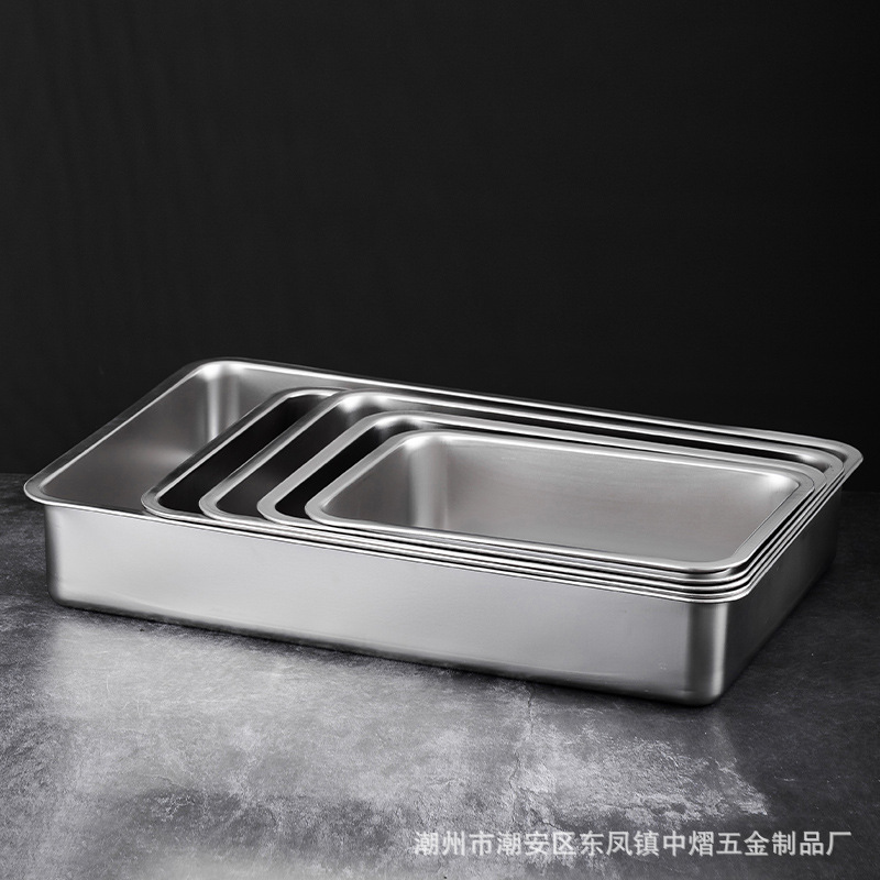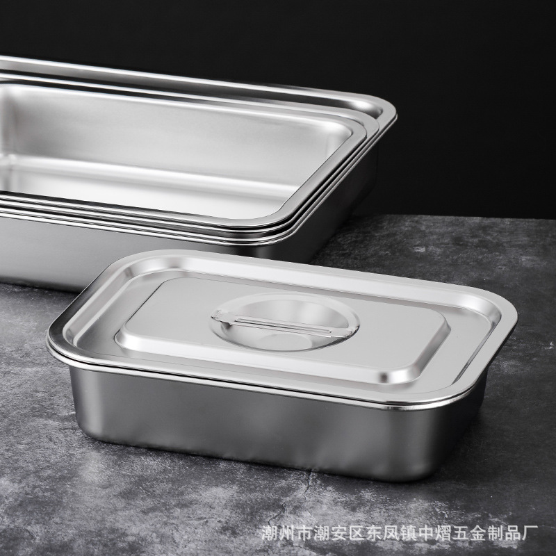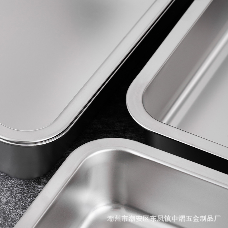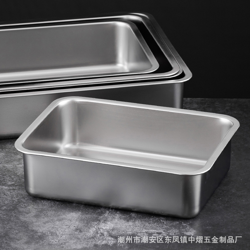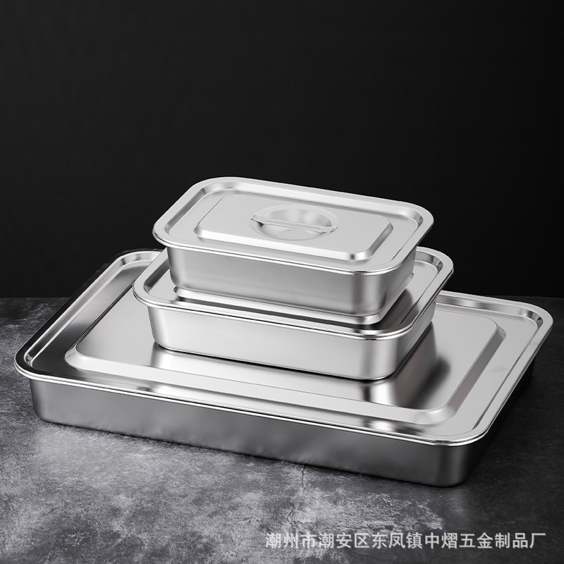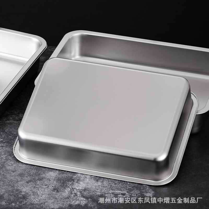 加厚不锈钢方盆带盖长方形平底深盆商用烤鱼方盘腌肉收纳盆加深托