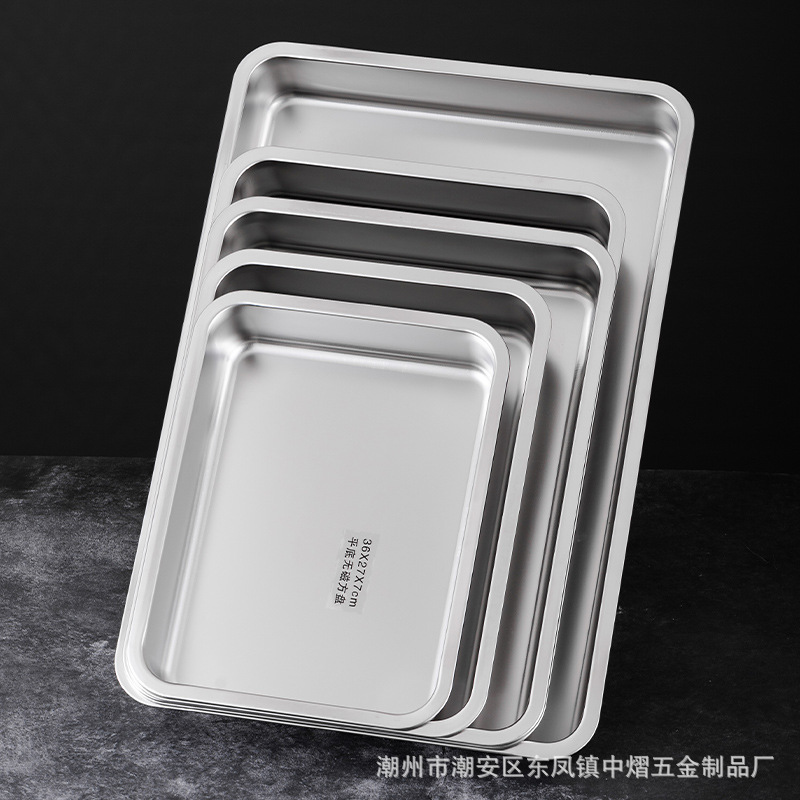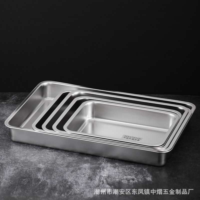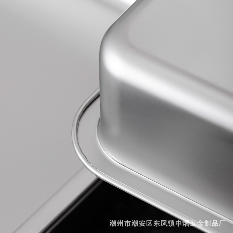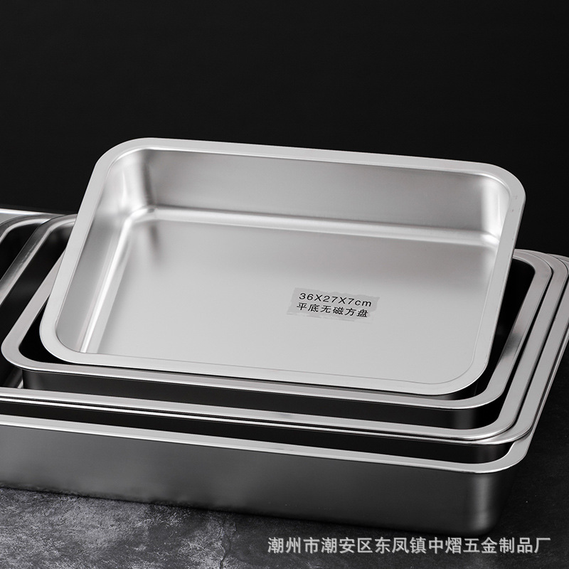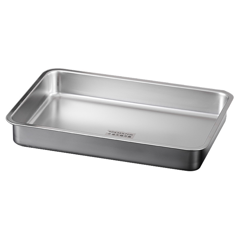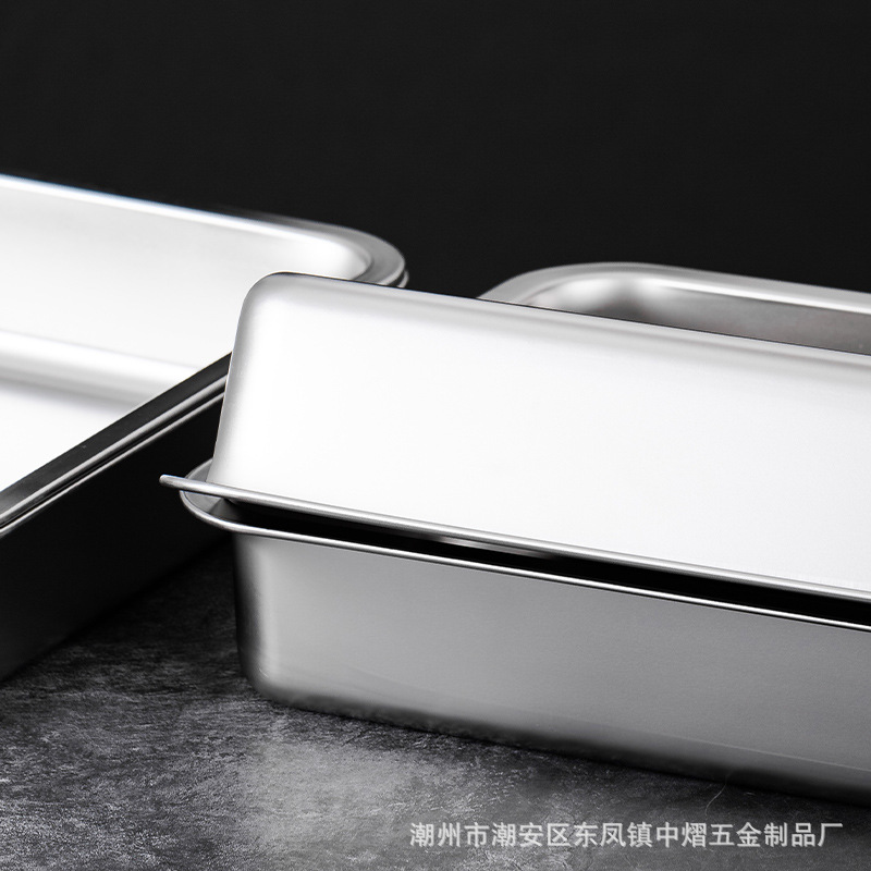 加厚不锈钢方盆带盖长方形平底深盆商用烤鱼方盘腌肉收纳盆加深托