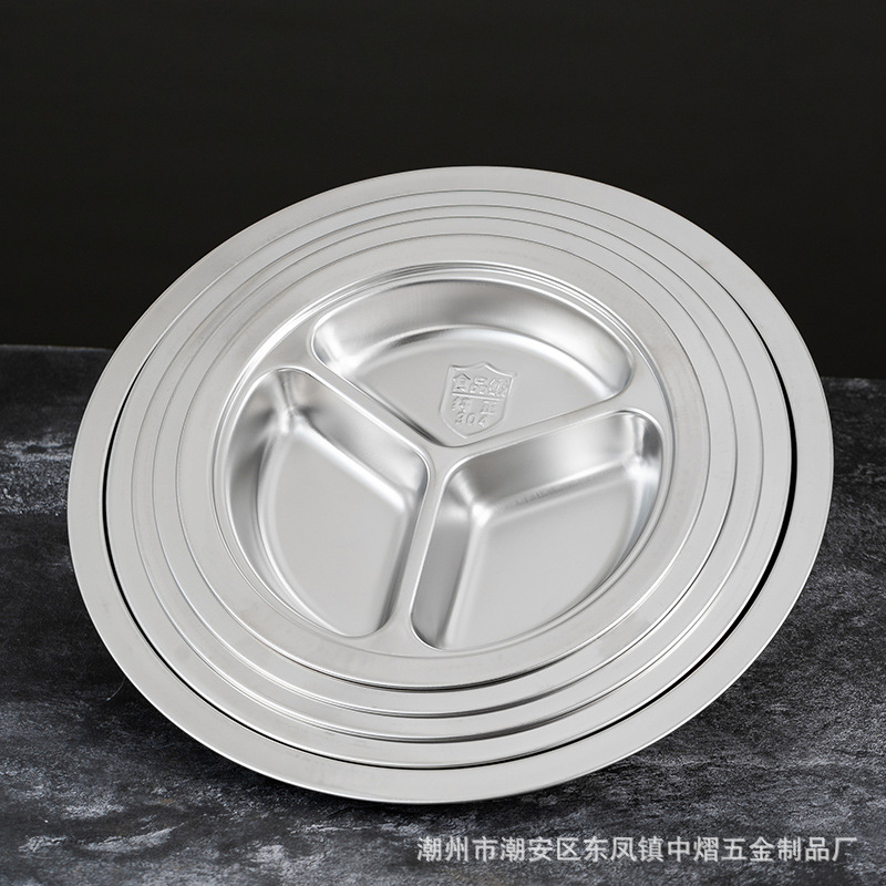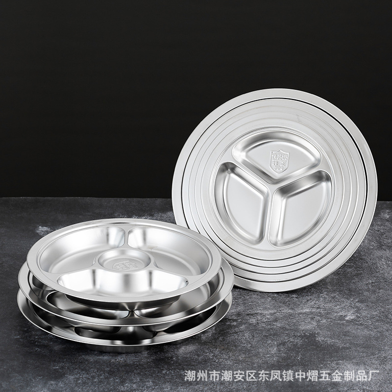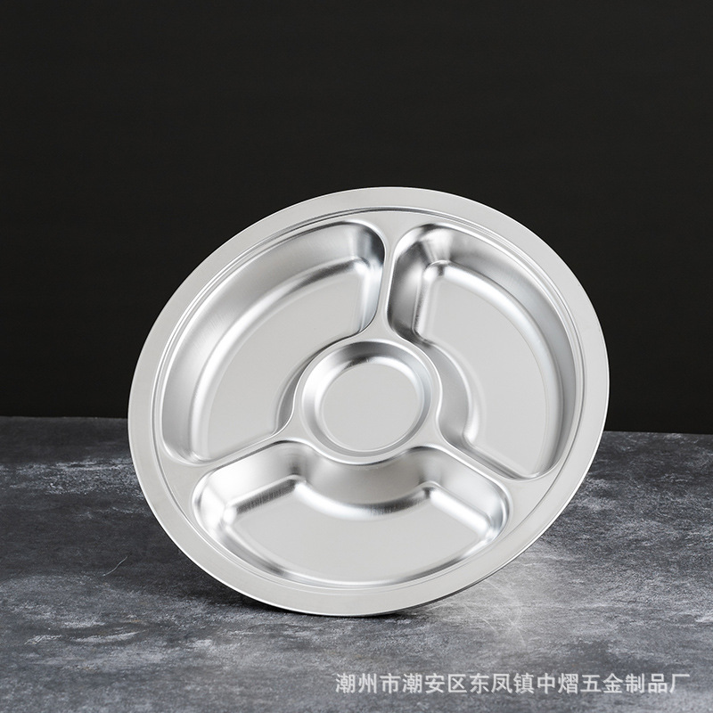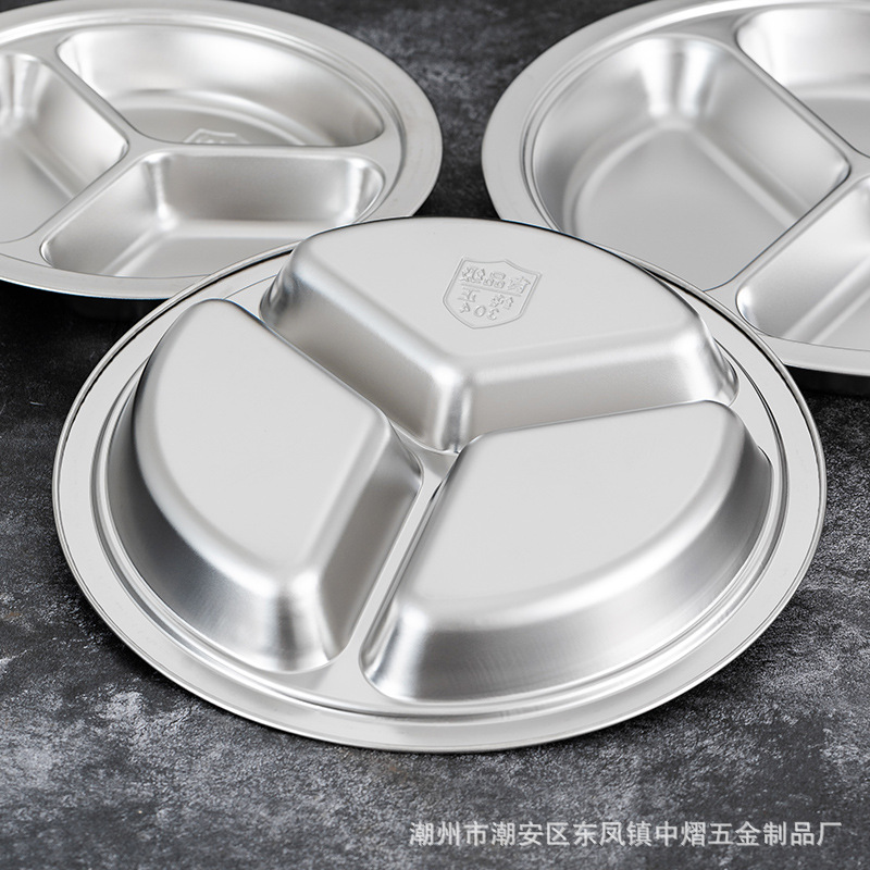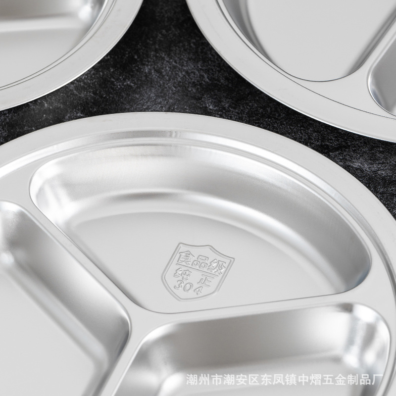 304不锈钢儿童餐盘餐具幼儿园圆形分格餐盘学生食堂饭店快餐盘