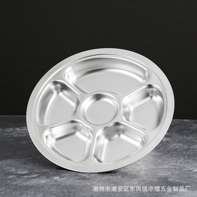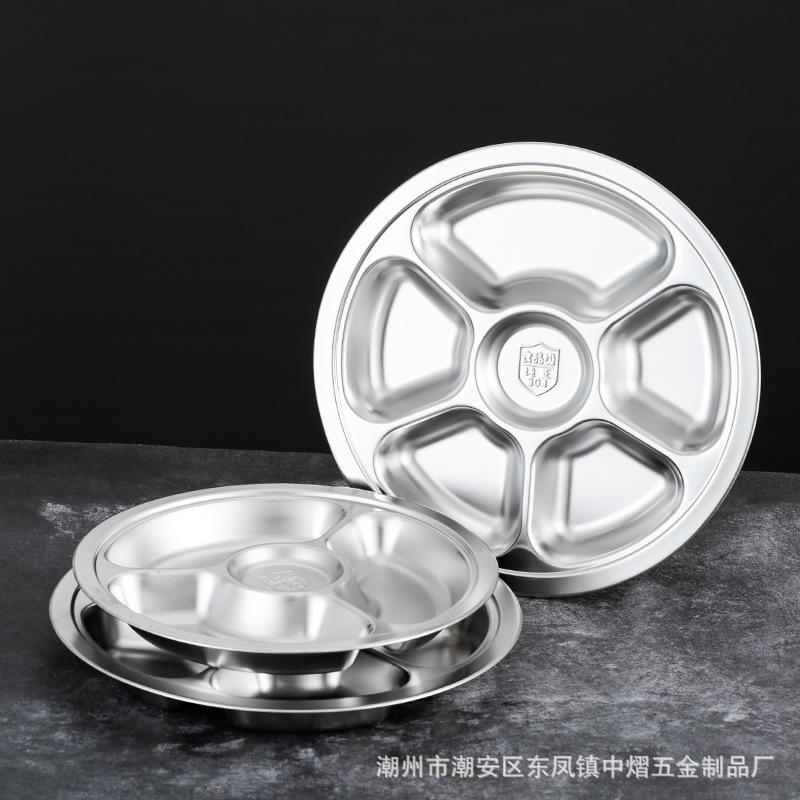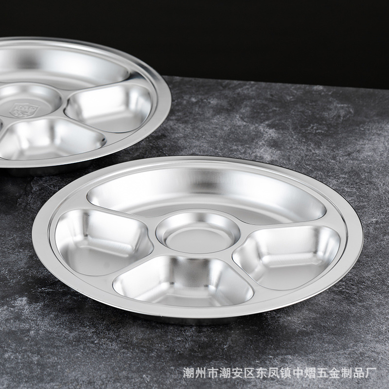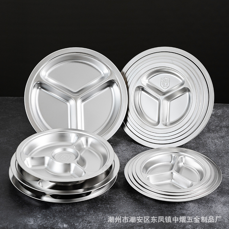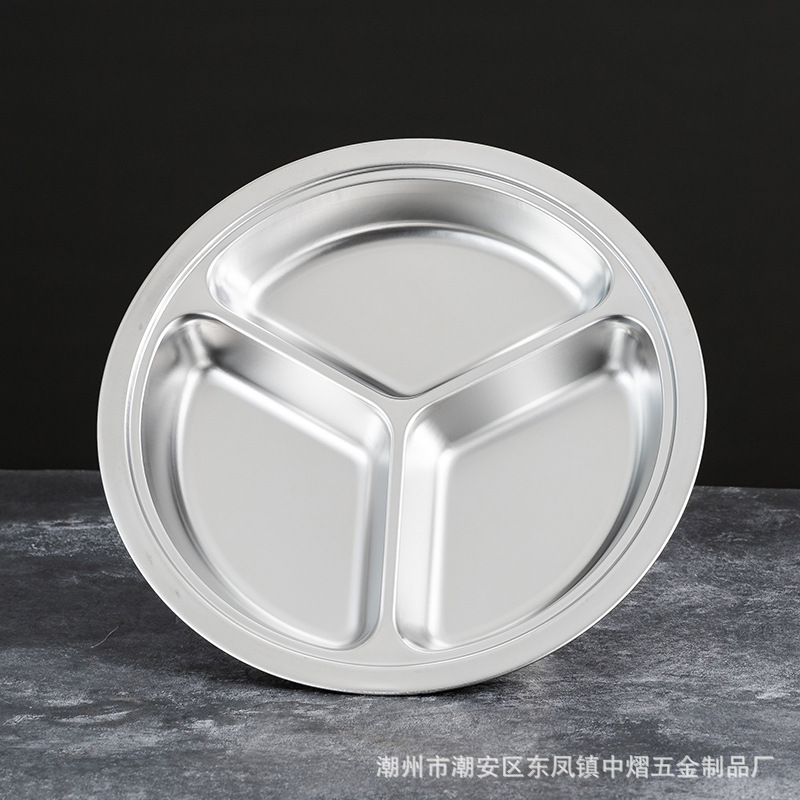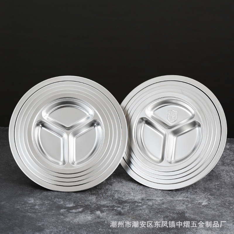 304不锈钢儿童餐盘餐具幼儿园圆形分格餐盘学生食堂饭店快餐盘