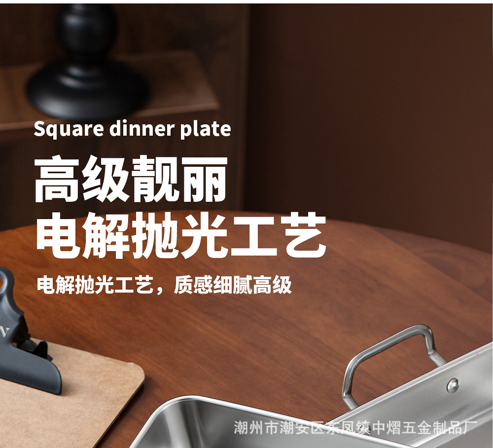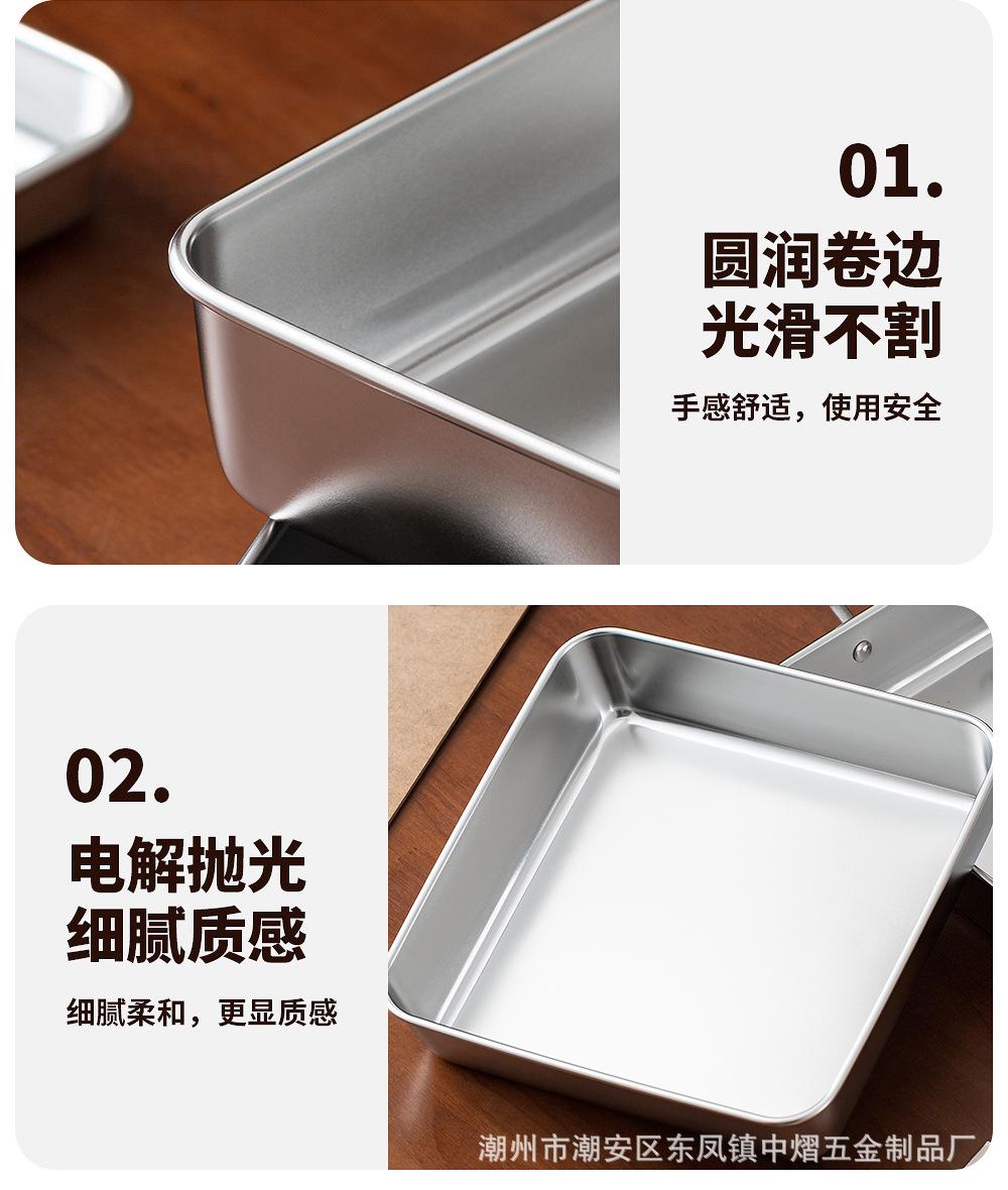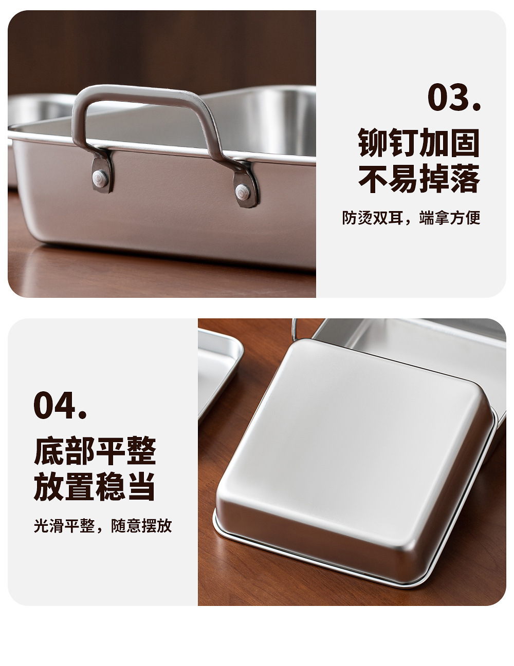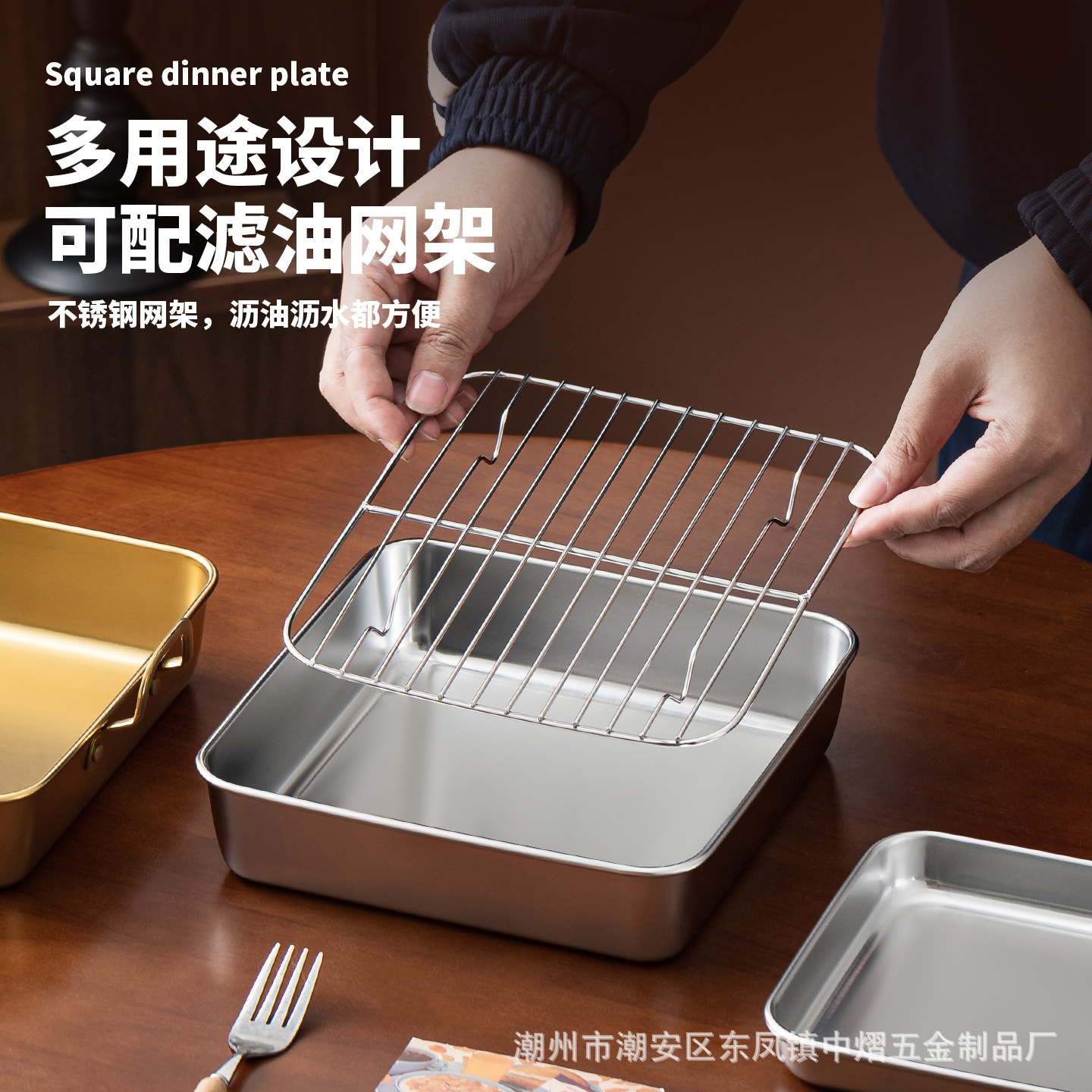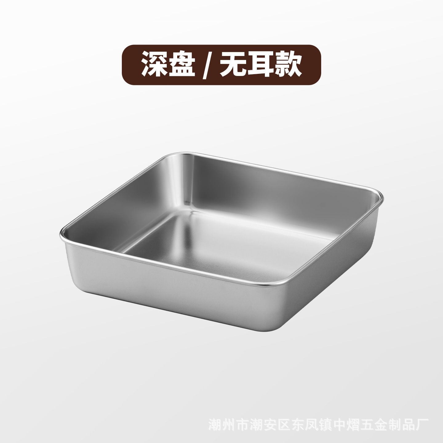 韩式金色带耳不锈钢正方形托盘提拉米苏盘户外烤肉盘小吃平底盘